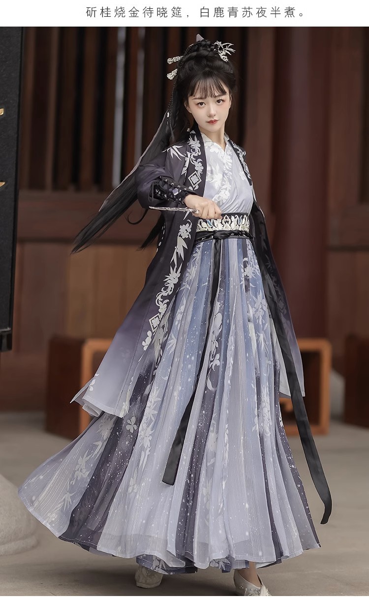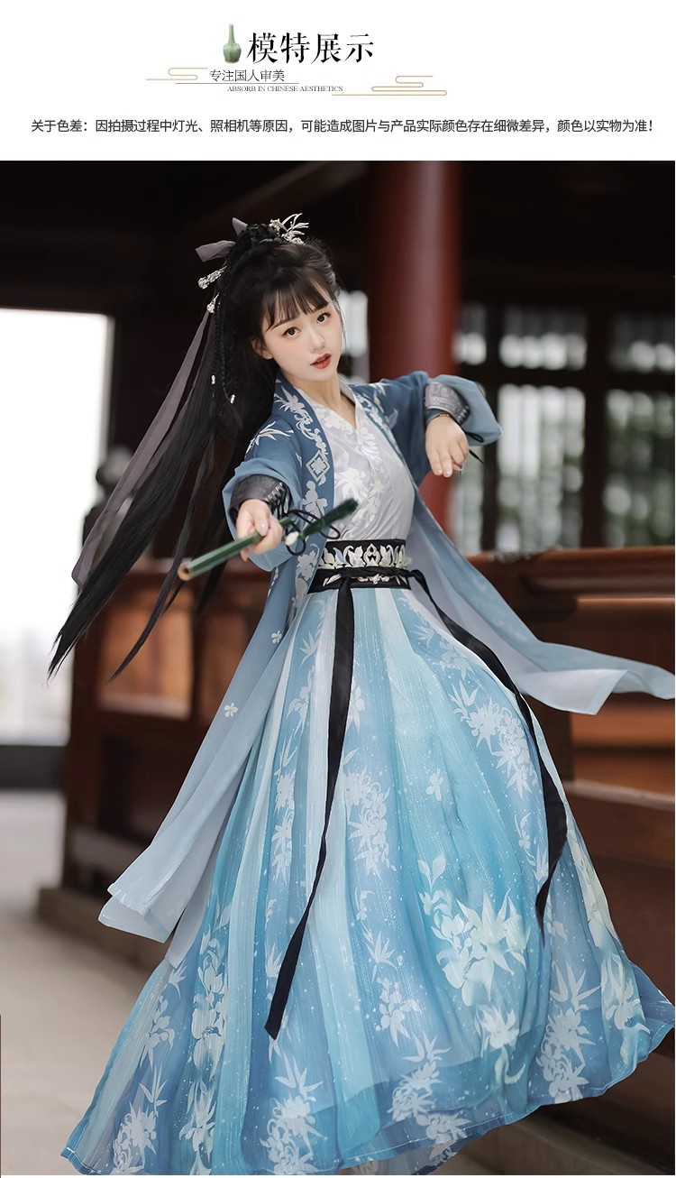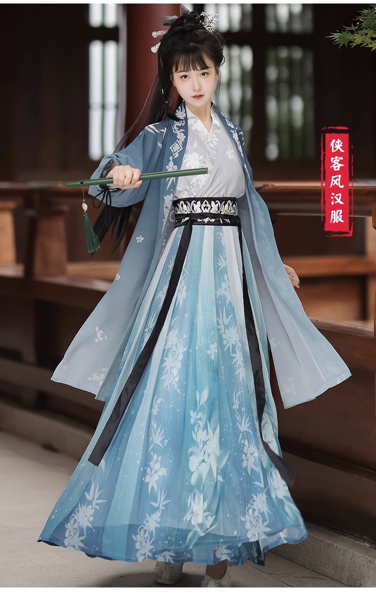 汉服女款成人套装古风复古武侠中国风夏秋季新款女装襦裙古装印花