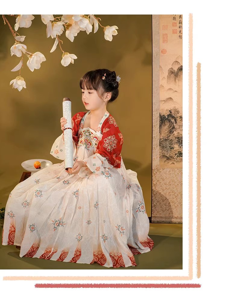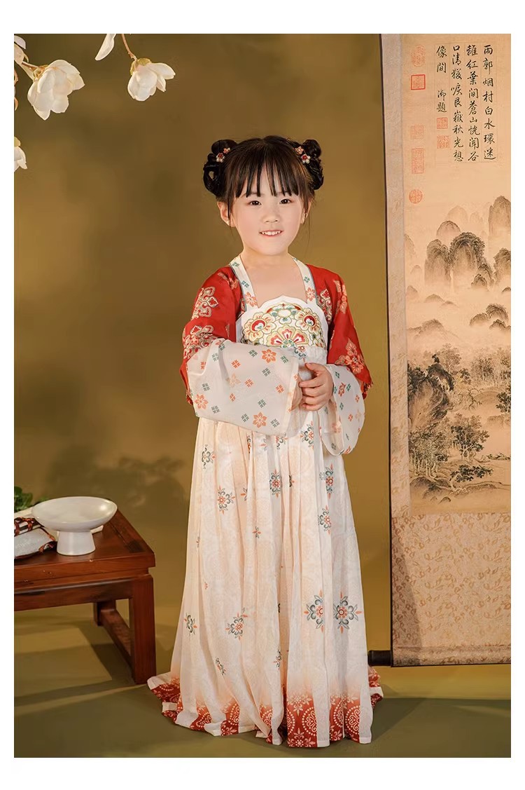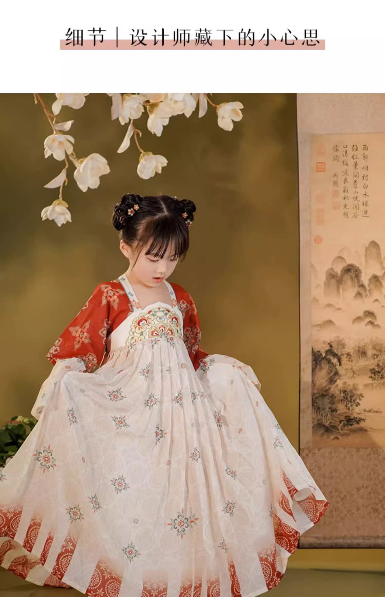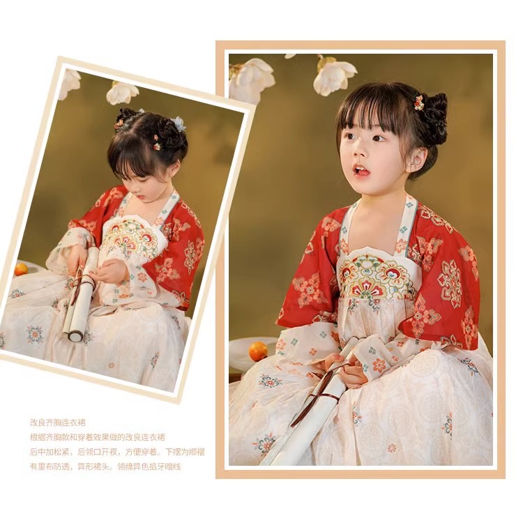 儿童汉服女童夏秋新款古风连衣裙小女孩唐装刺绣印花古装连衣襦裙
