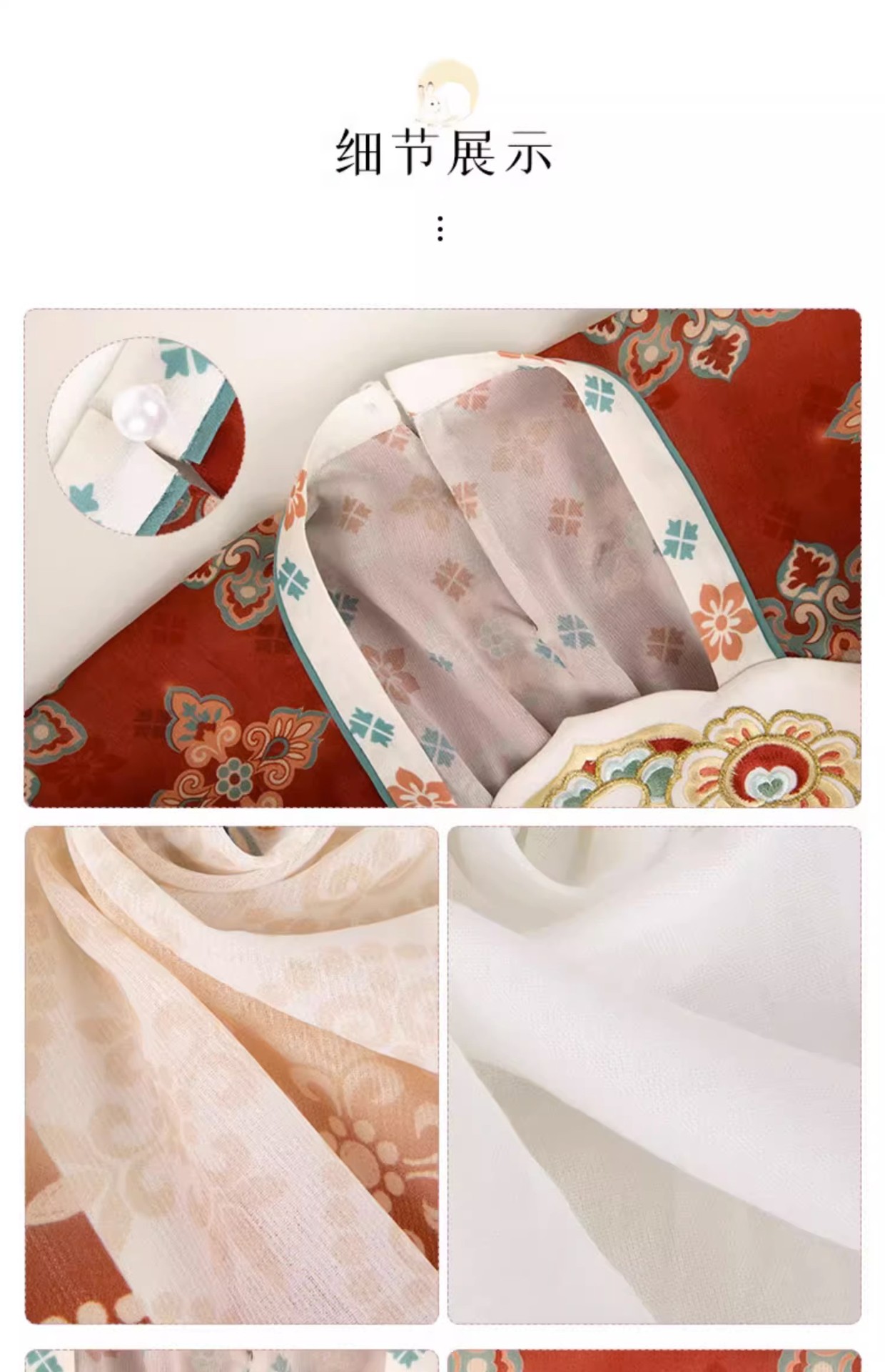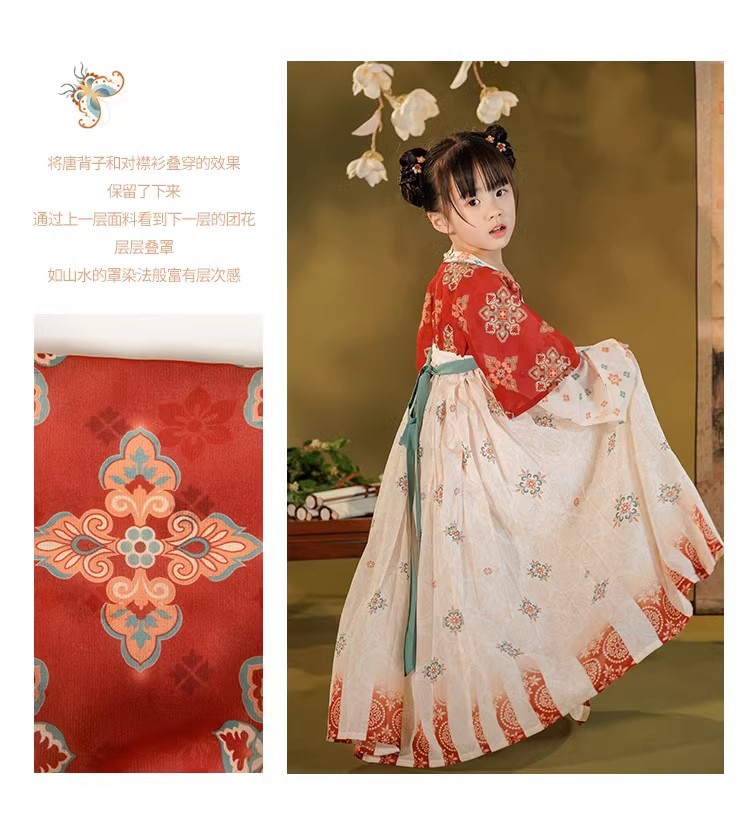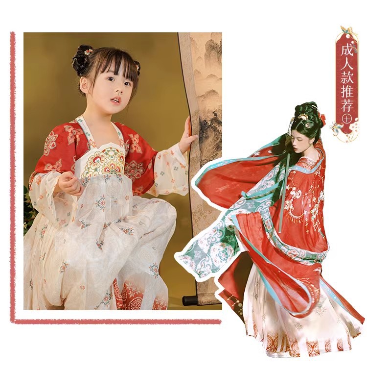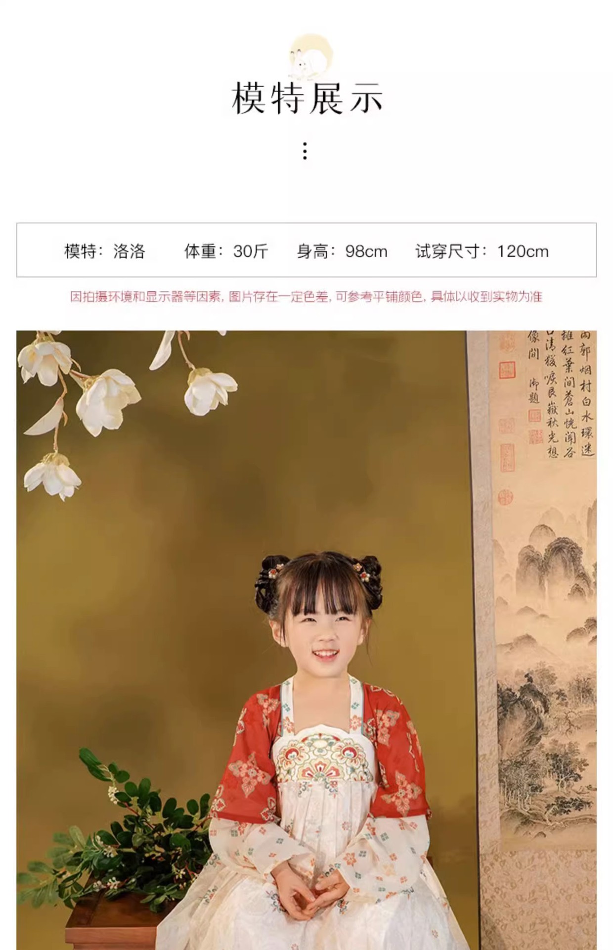 儿童汉服女童夏秋新款古风连衣裙小女孩唐装刺绣印花古装连衣襦裙