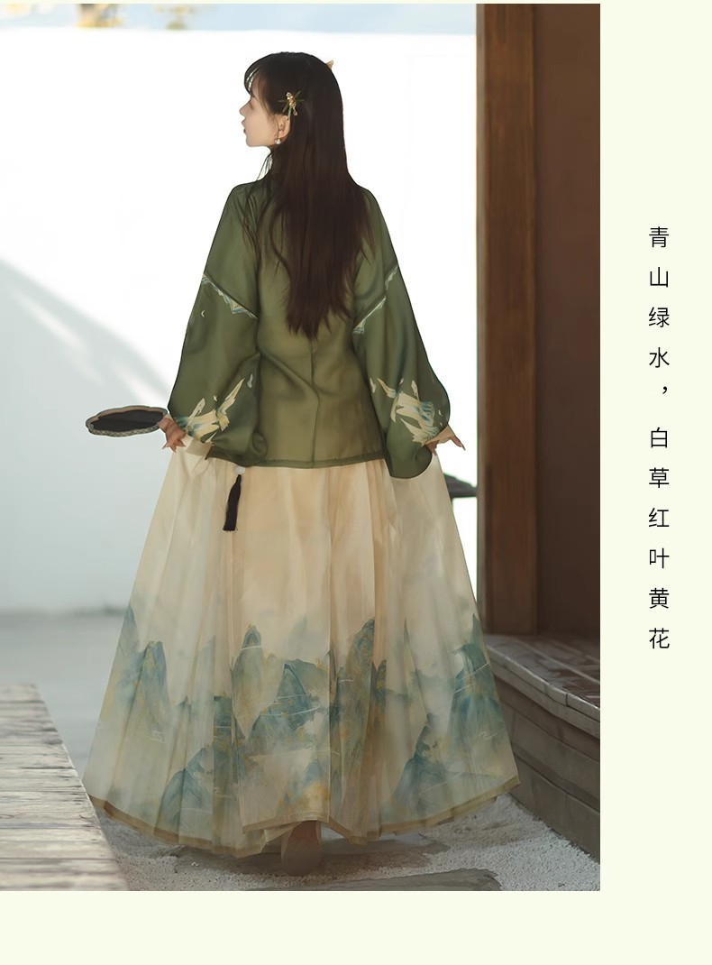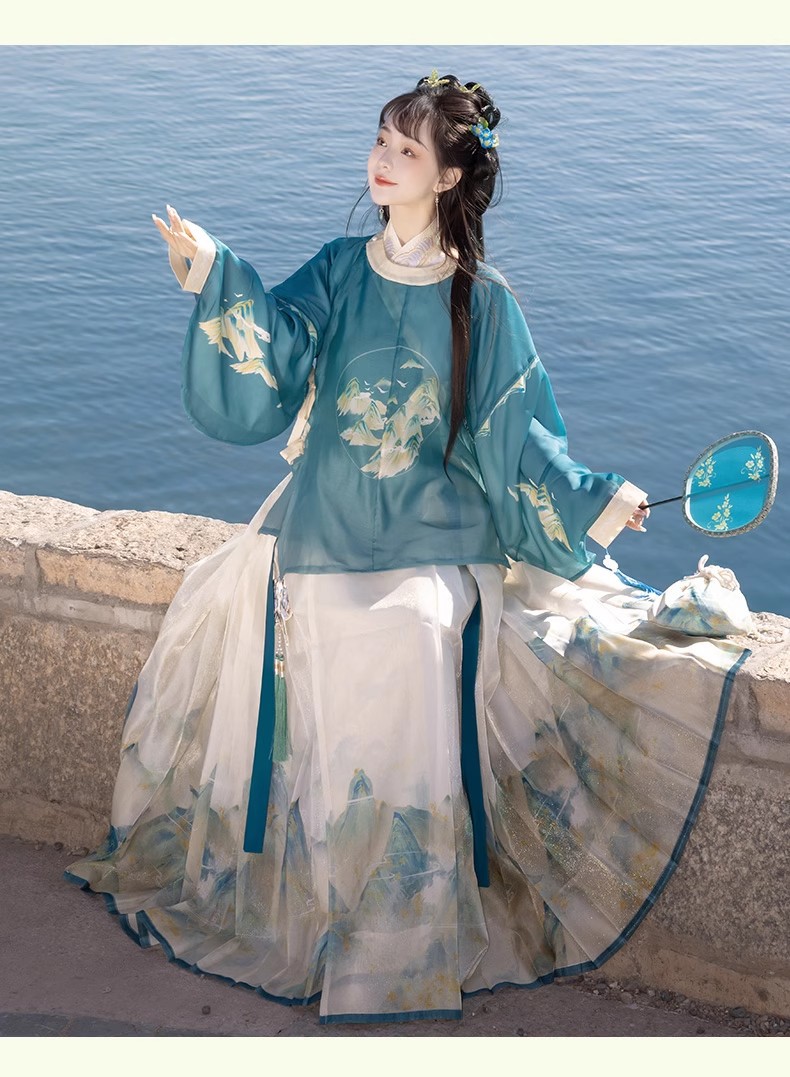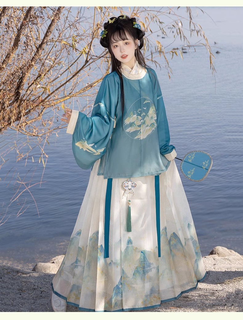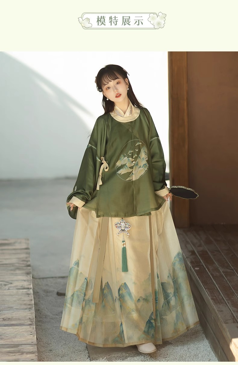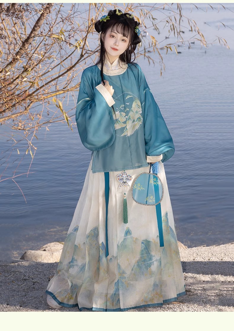 原创成人汉服女新款千里江山明制圆领袍马面裙印花清新日常春夏款