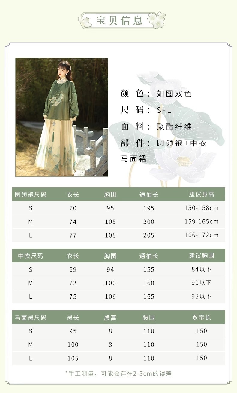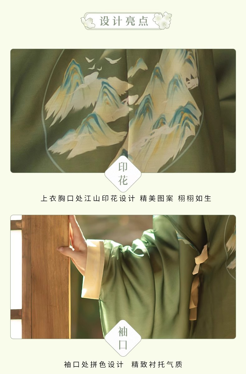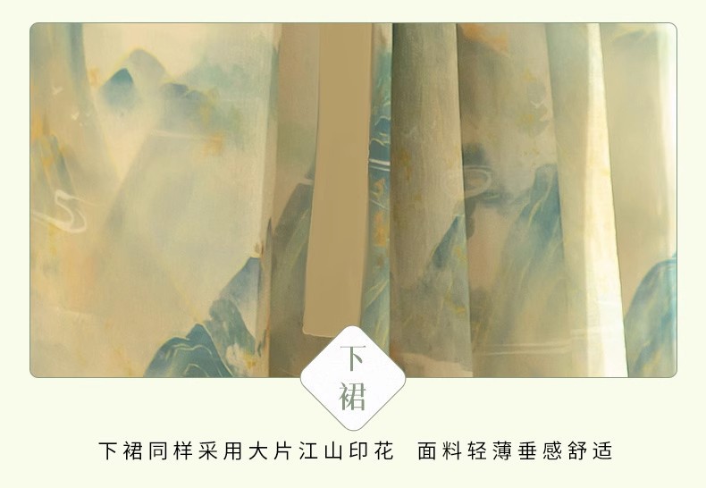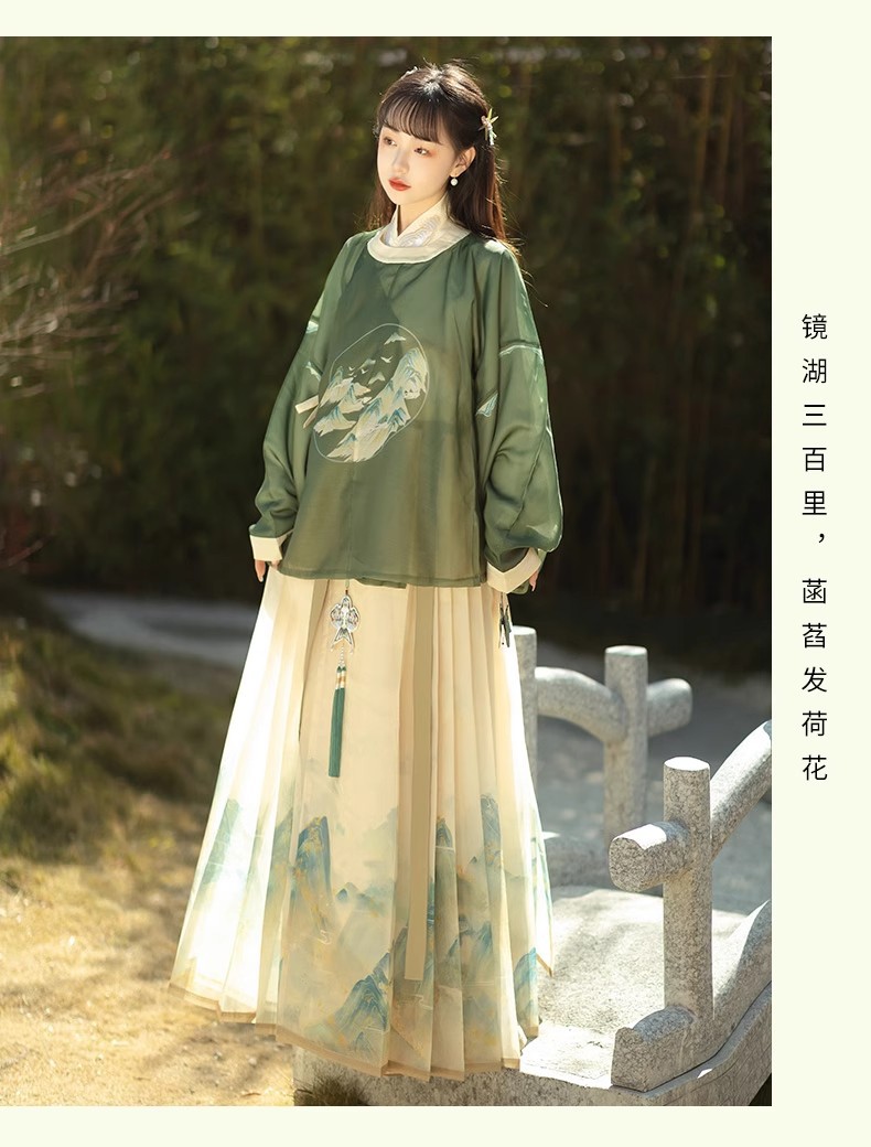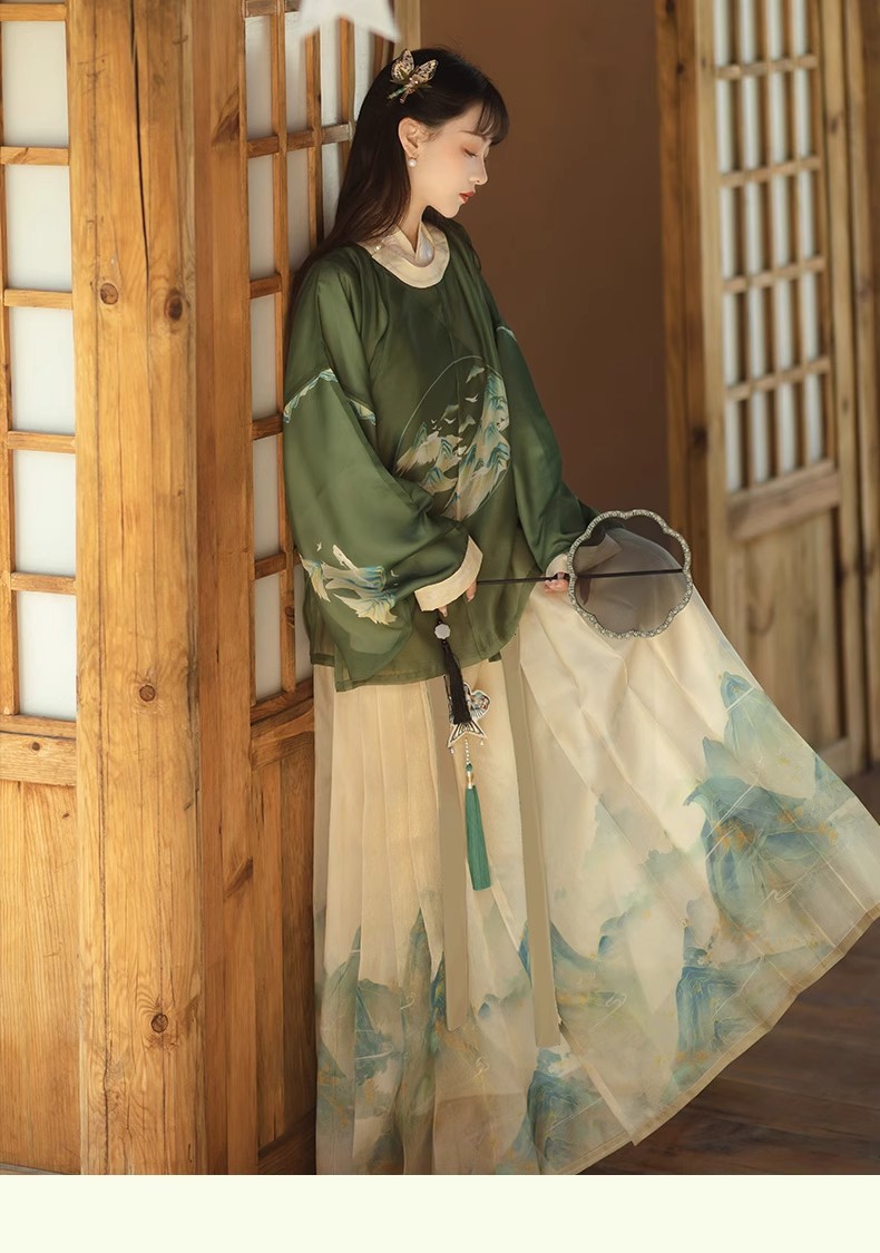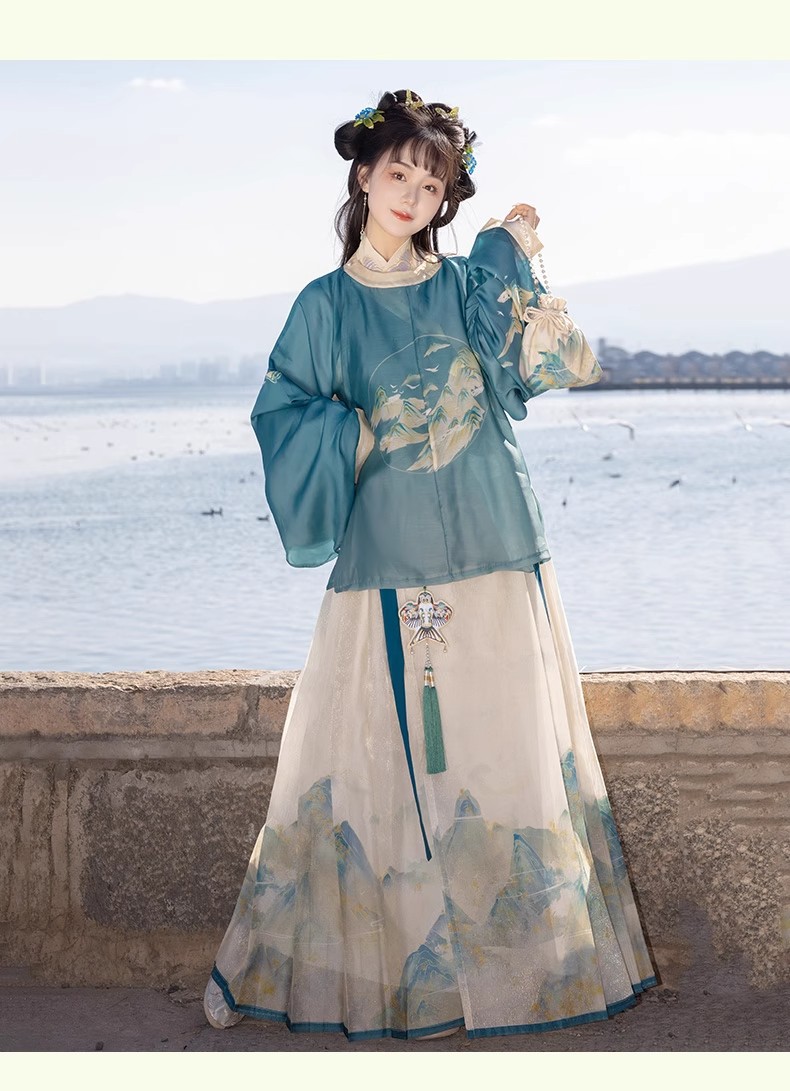 原创成人汉服女新款千里江山明制圆领袍马面裙印花清新日常春夏款