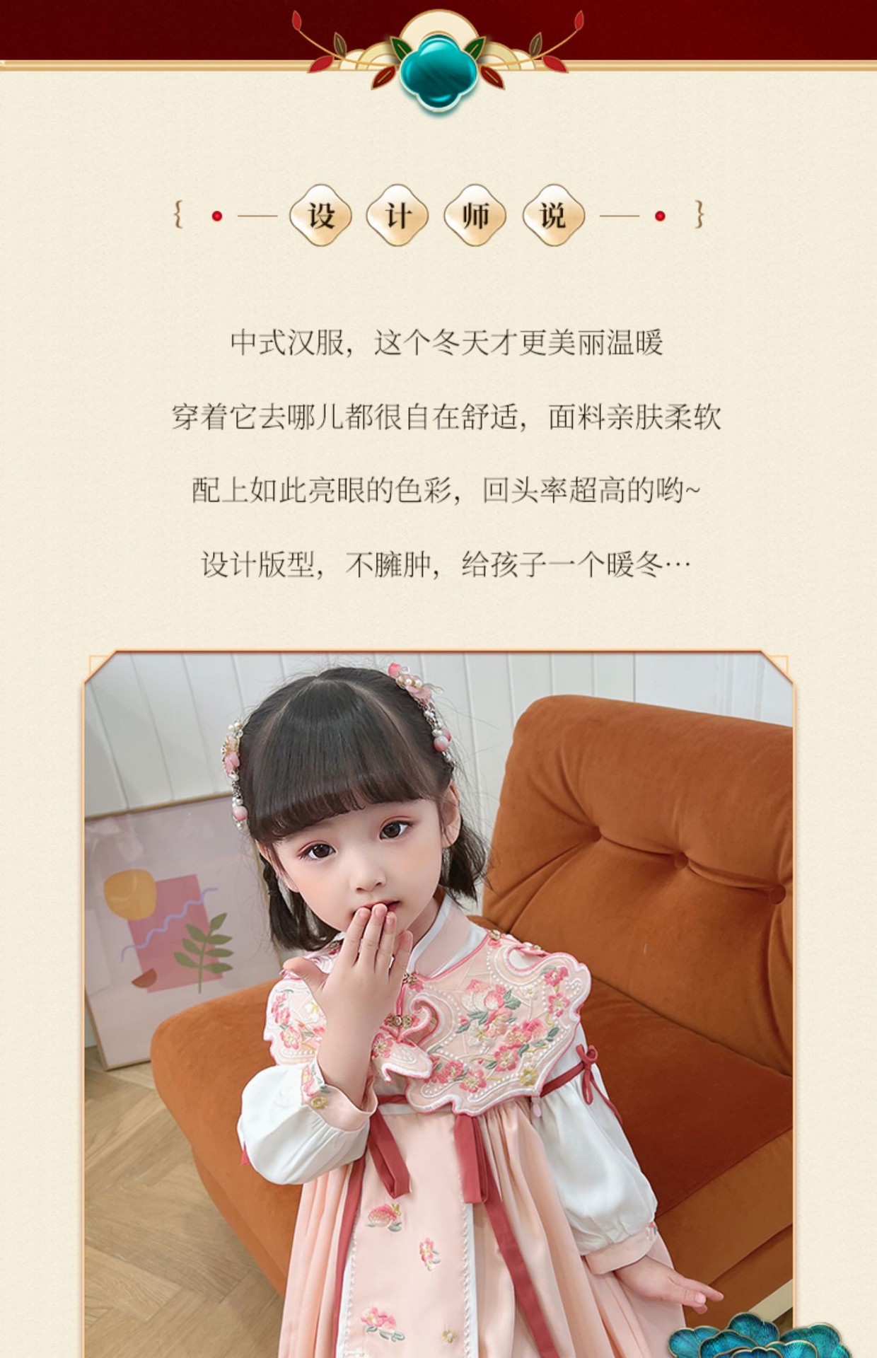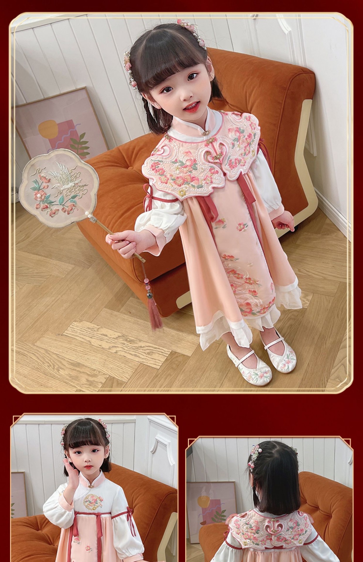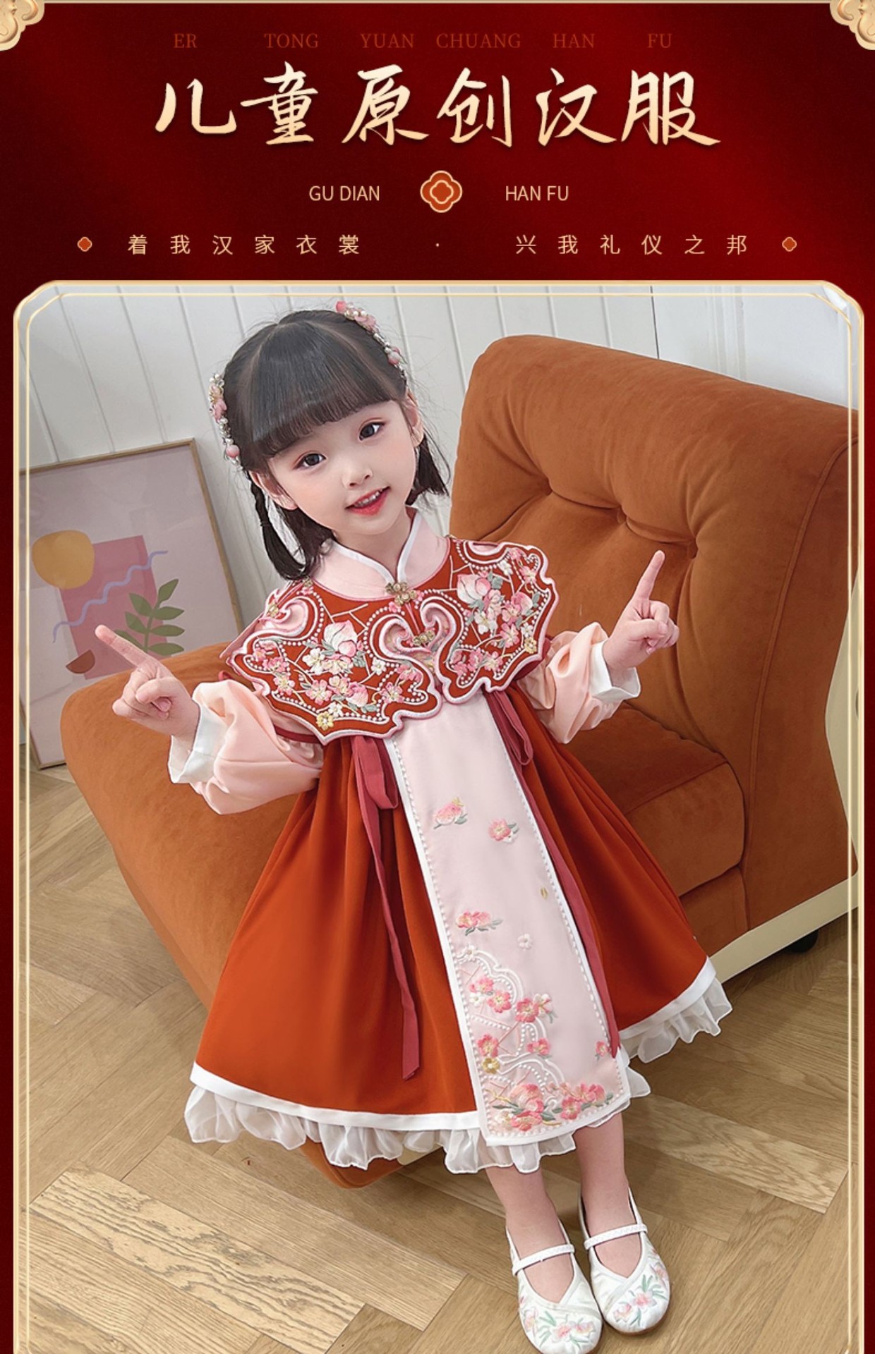 女童汉服连衣裙春秋新款冬加绒云肩立领斜门襟荷叶泡泡袖洋气裙子