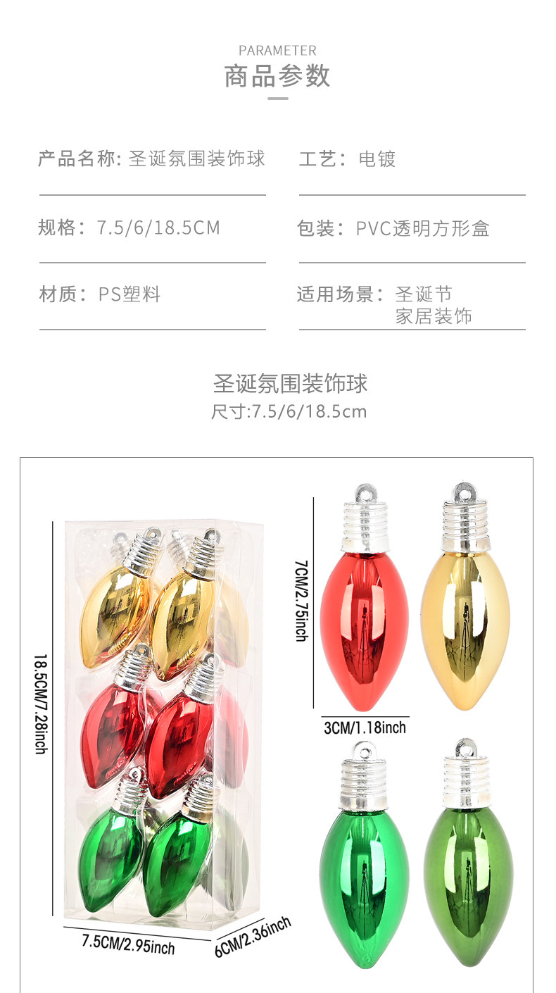 跨境圣诞节装饰品 电镀彩色灯泡圣诞球圣诞树挂件装饰橱窗装饰品