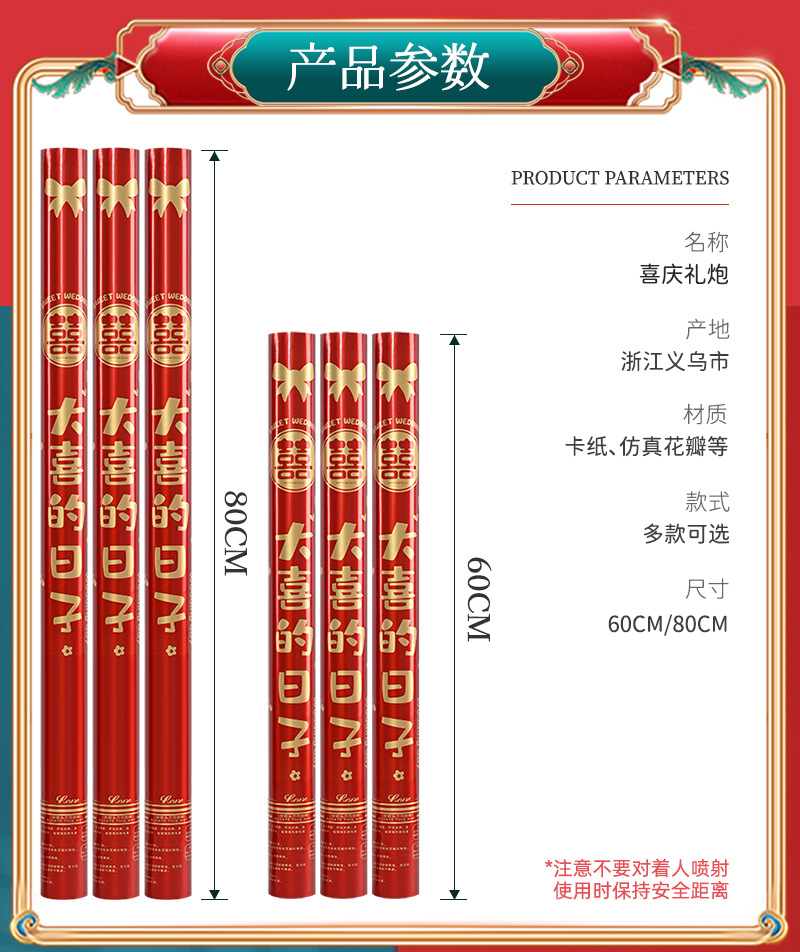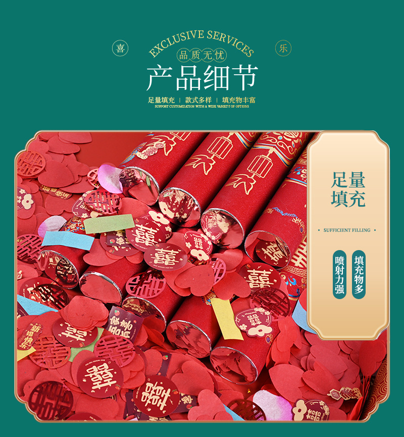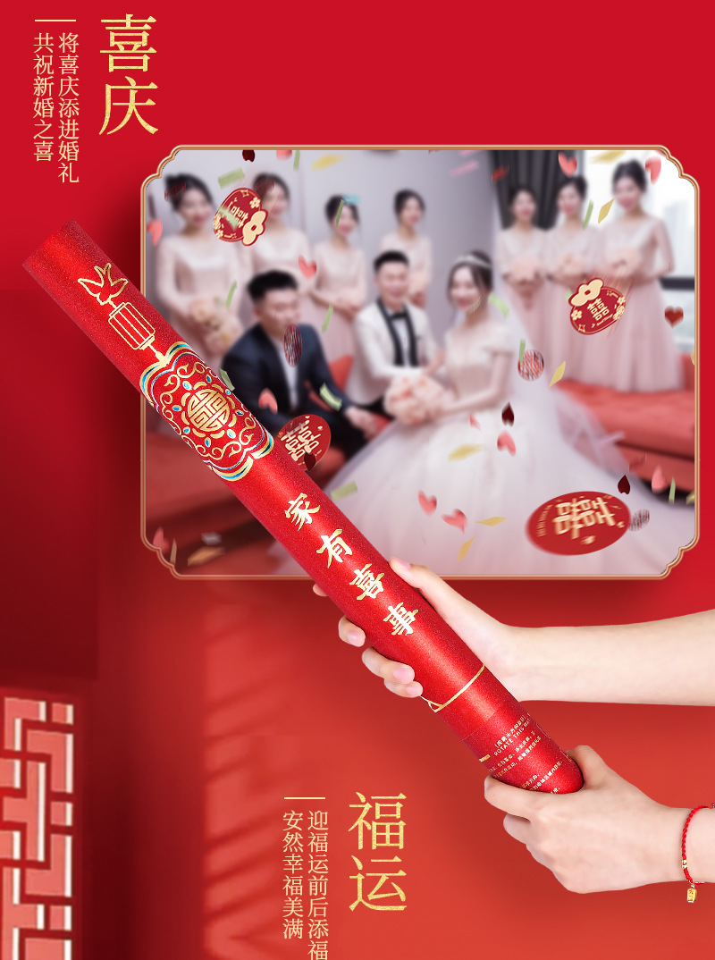 礼炮婚礼典礼婚庆喷花筒浪漫花瓣雨国潮手拧手持礼花结婚用品大全