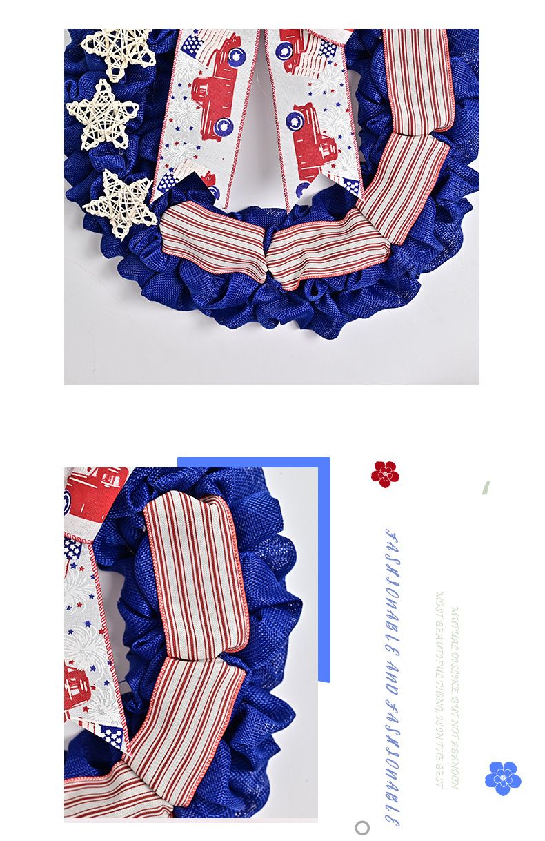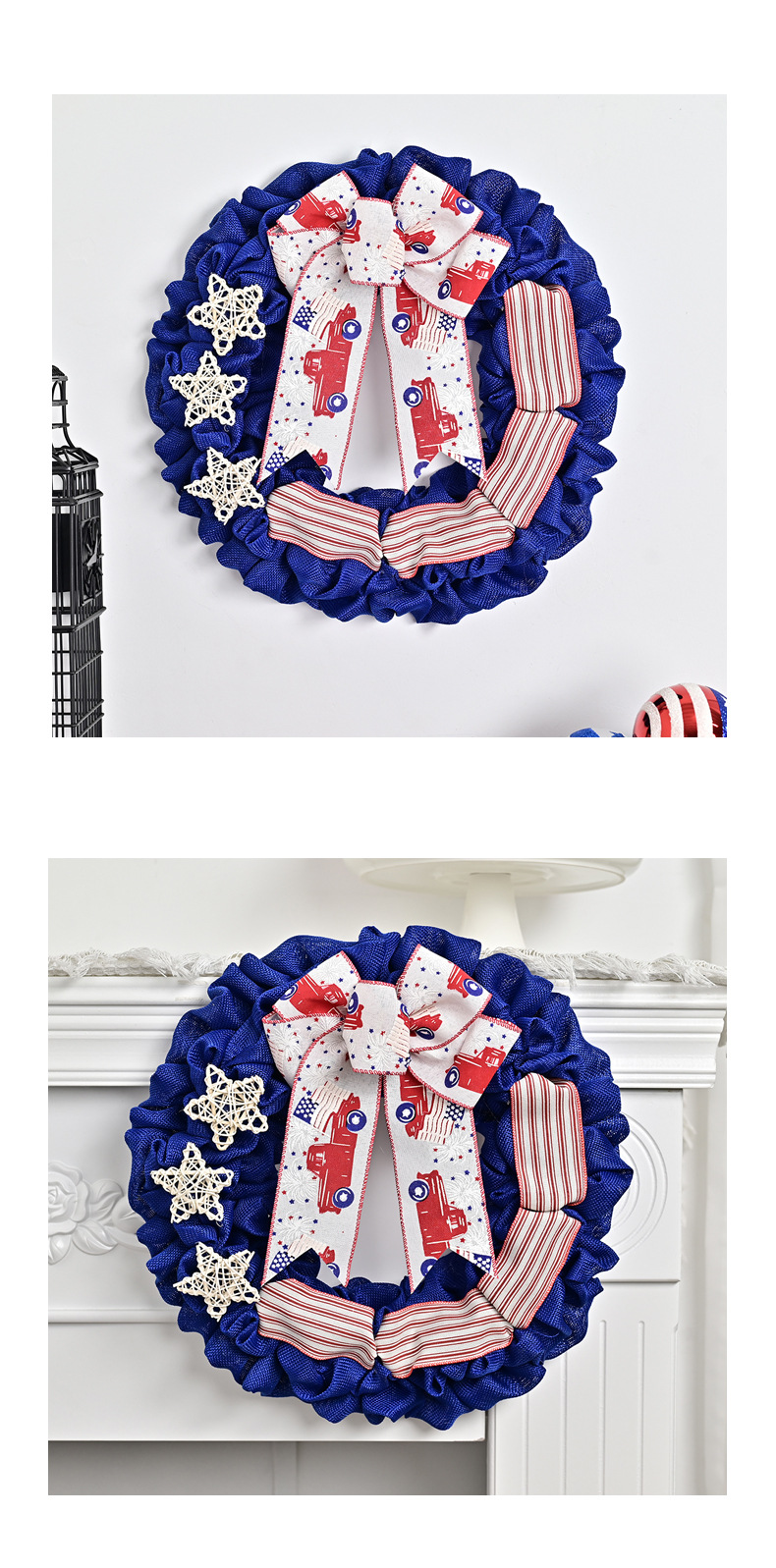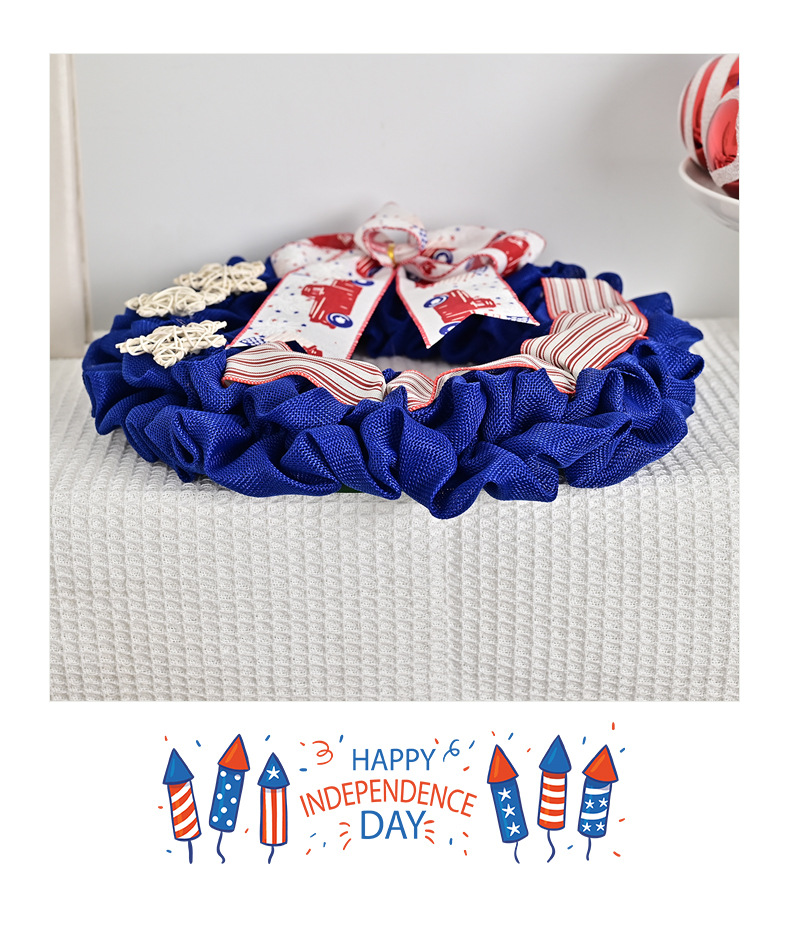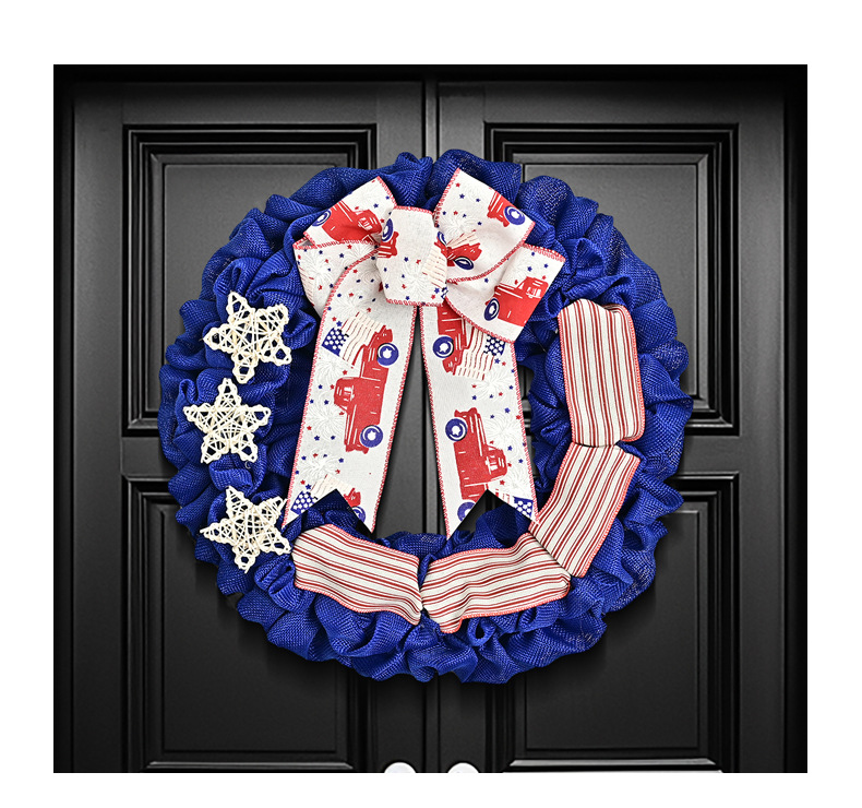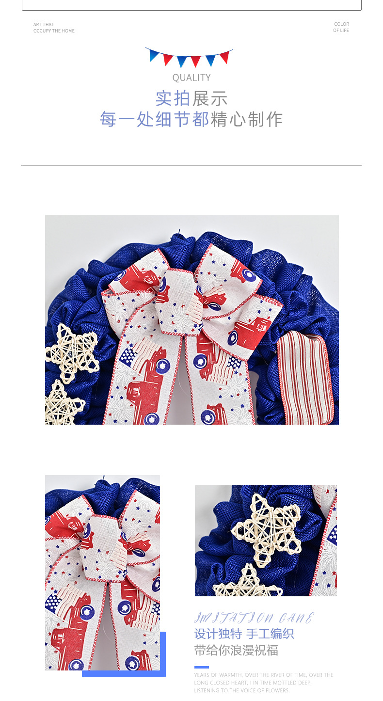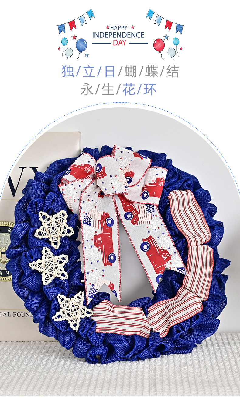 跨境新款美国独立日布艺红白蓝布艺五角星圆圈国庆节气氛布置花环
