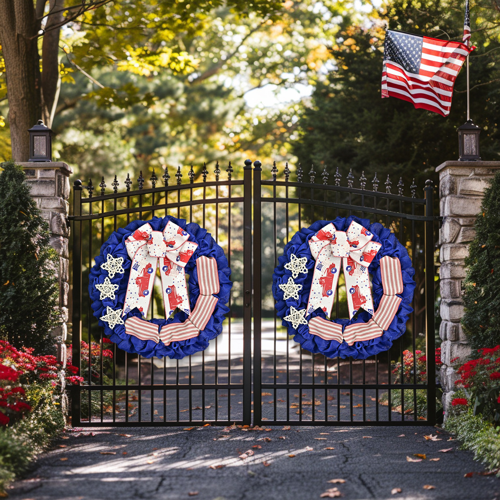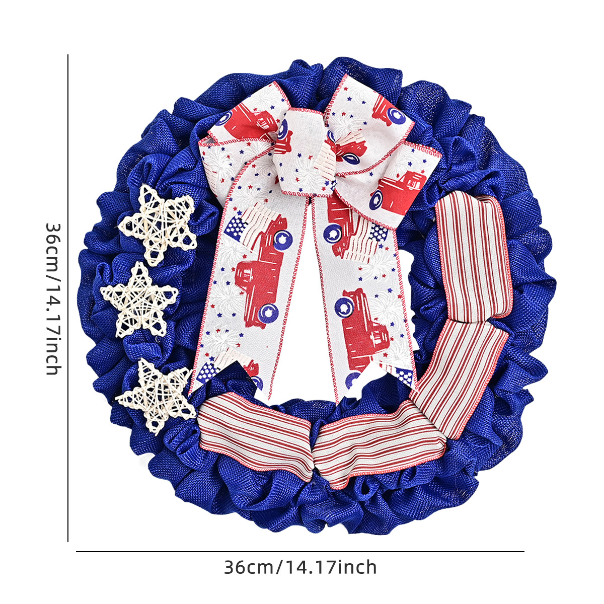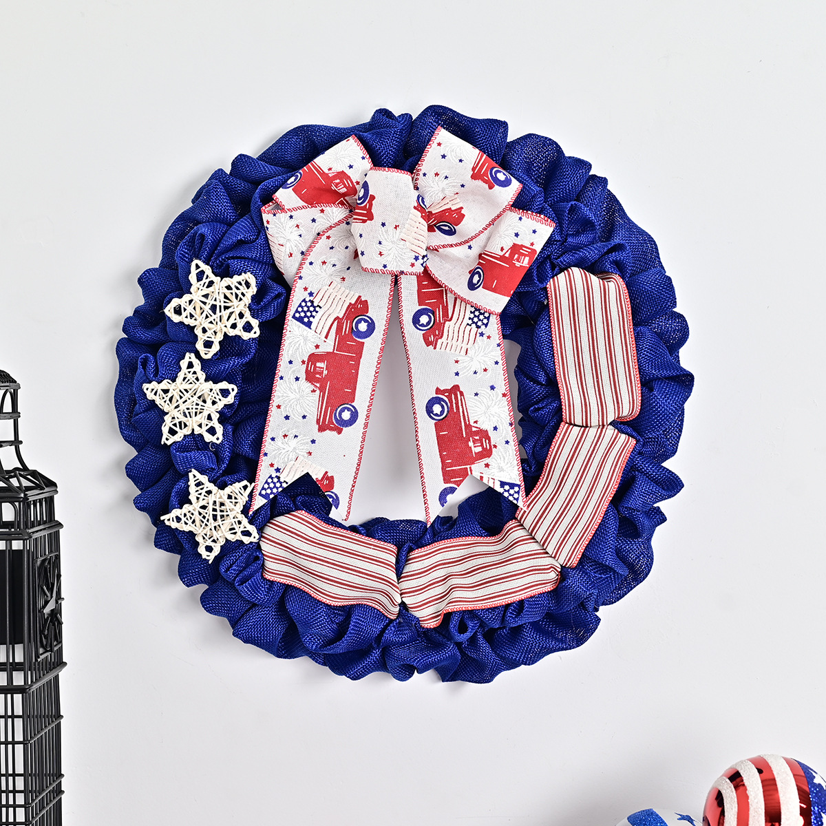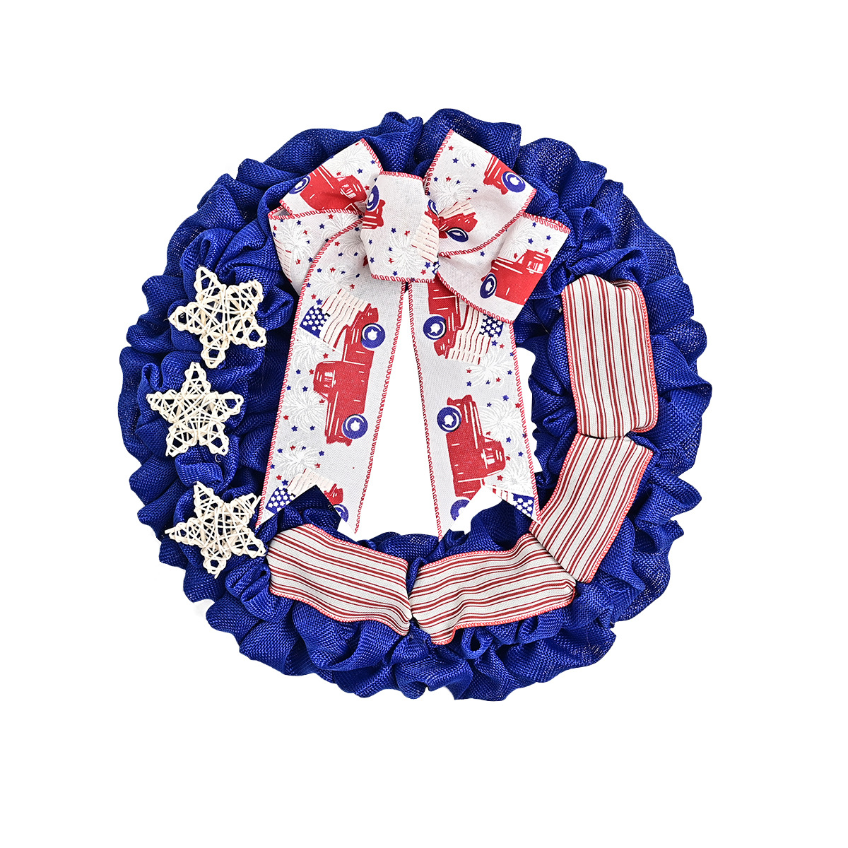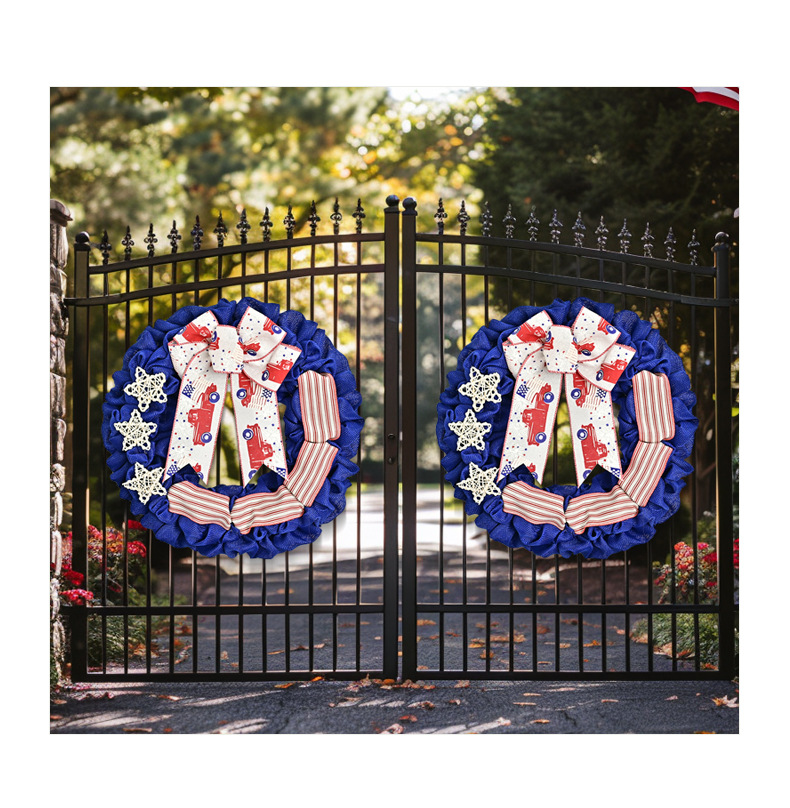 跨境新款美国独立日布艺红白蓝布艺五角星圆圈国庆节气氛布置花环