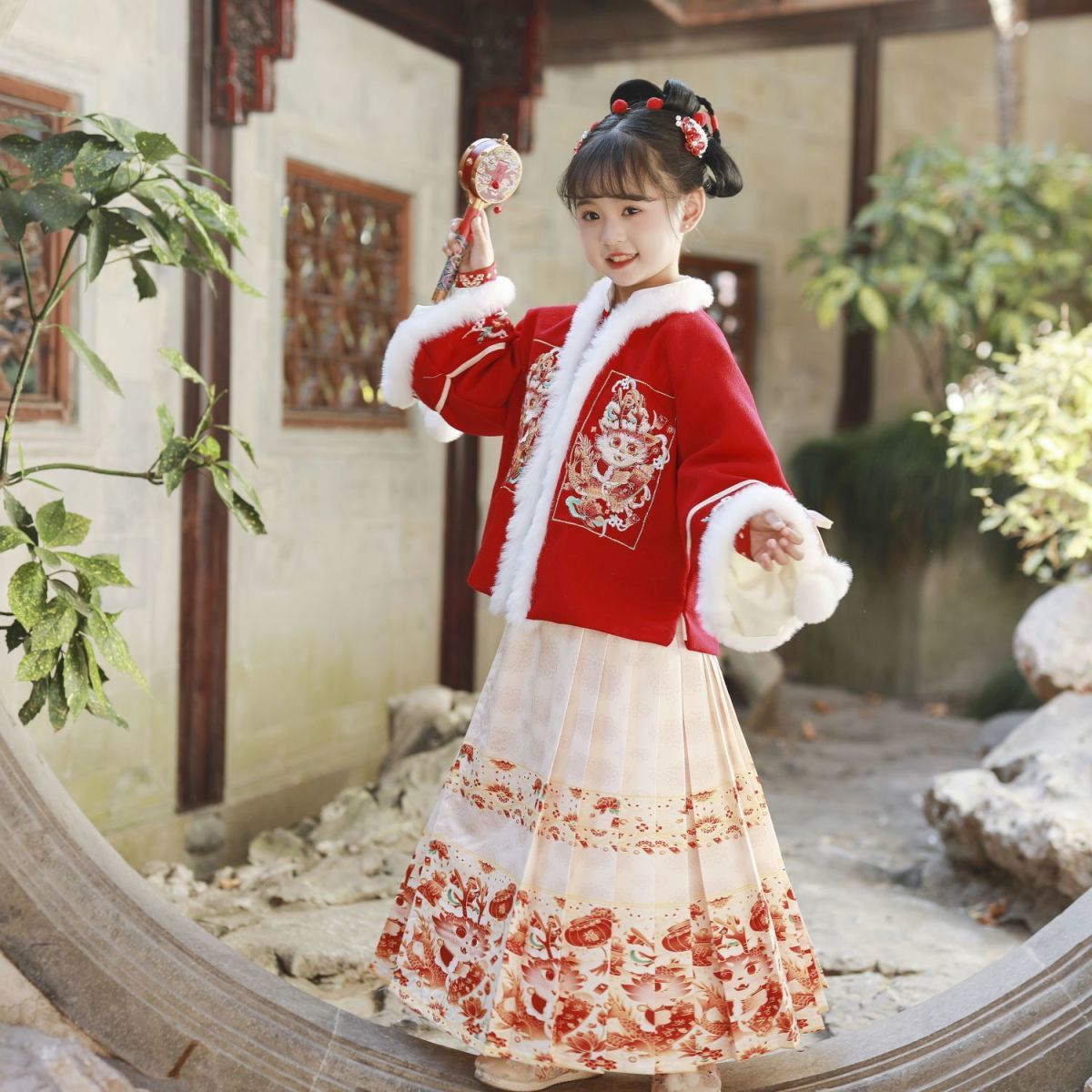 小萌龙 原创汉服女童冬款儿童拜年服古风超仙古装过年服国风女宝