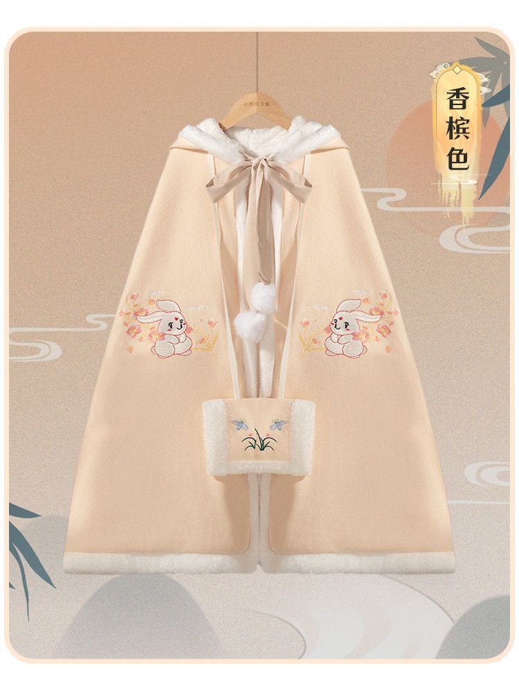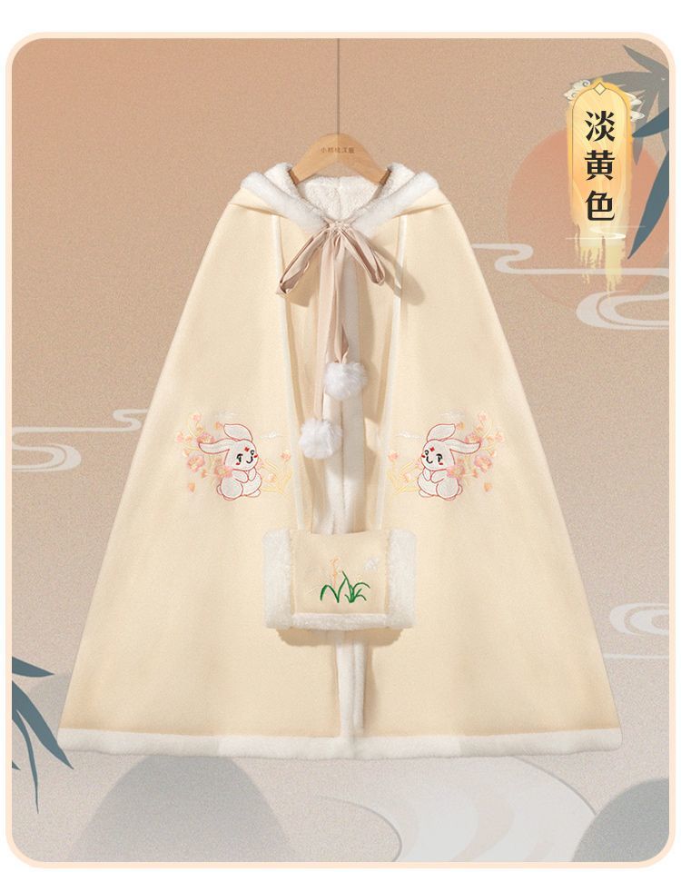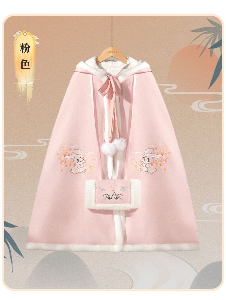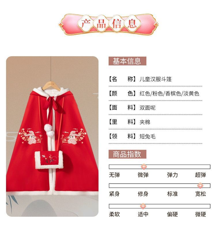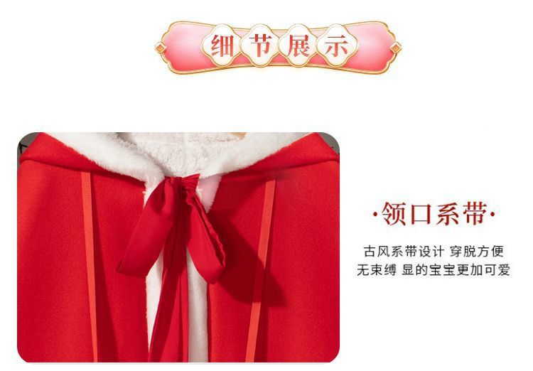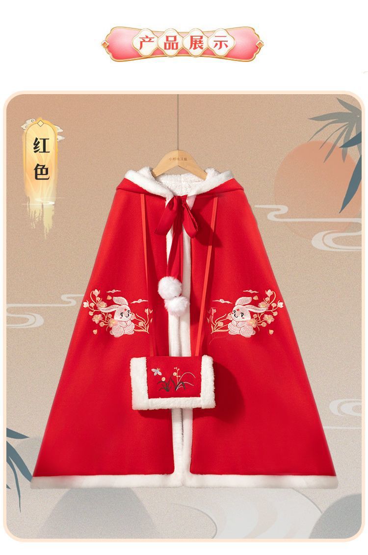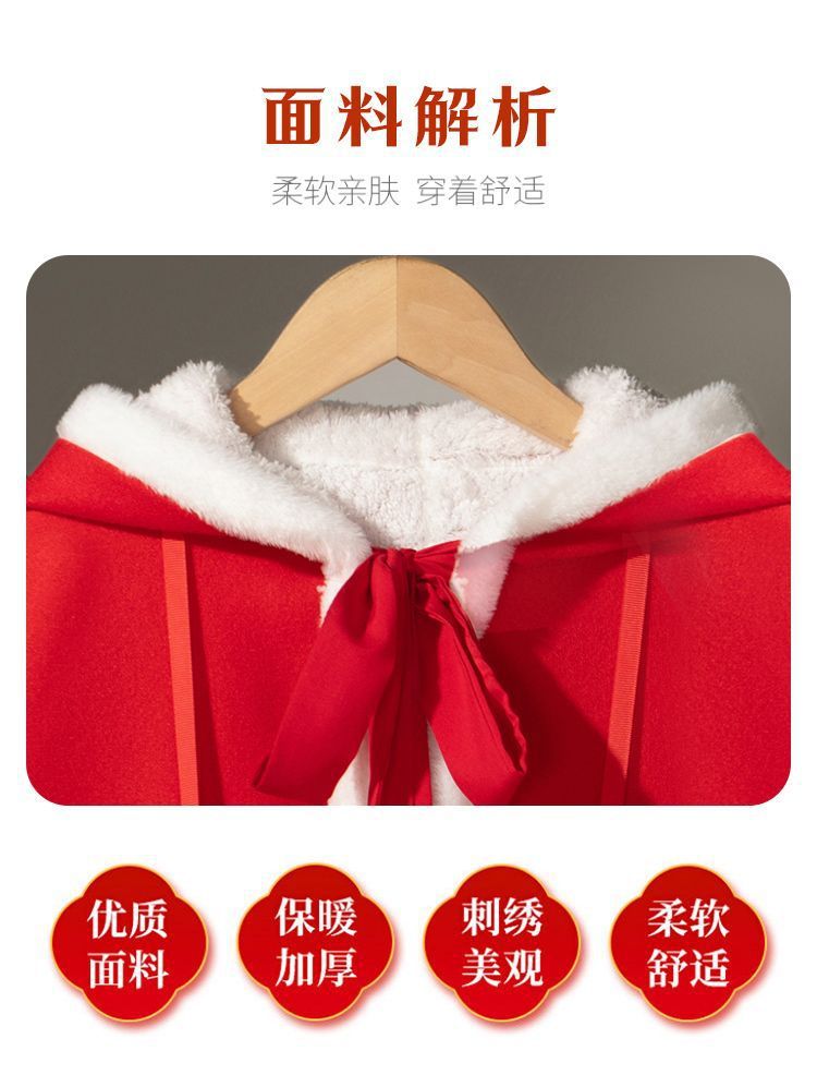 女童汉服斗篷披风儿童古装刺绣斗篷女童拜年服加绒加厚披肩外套