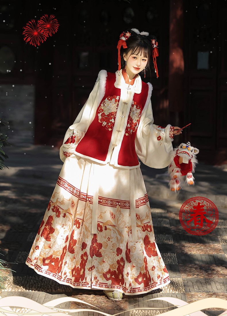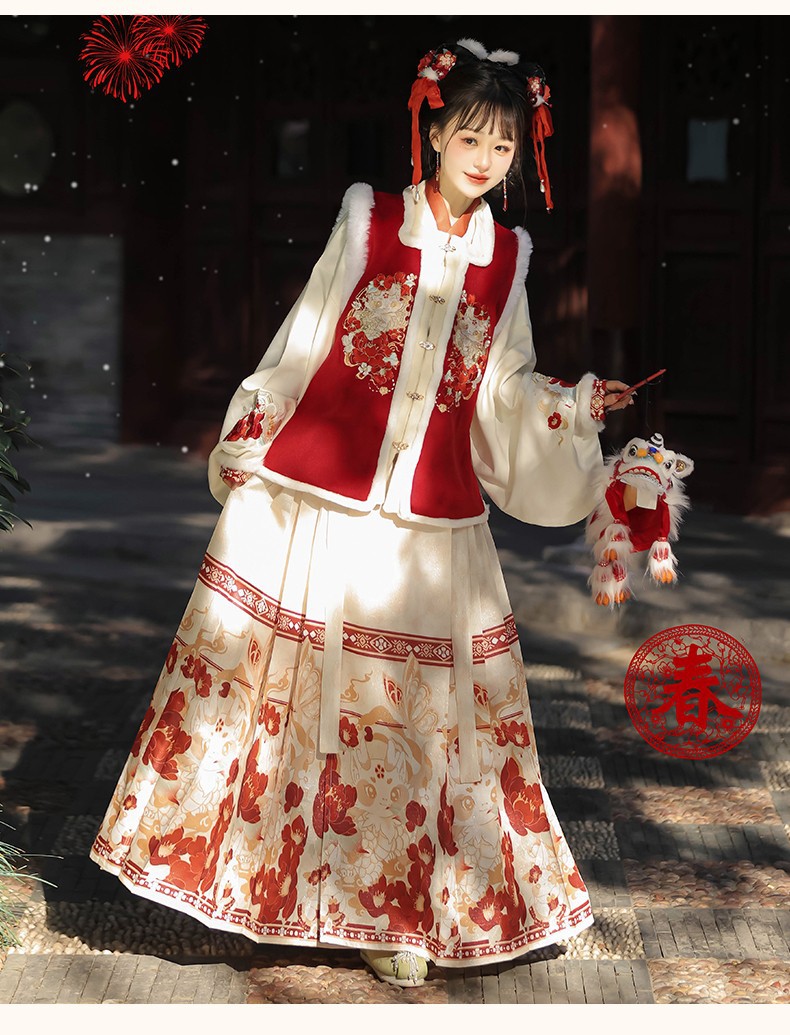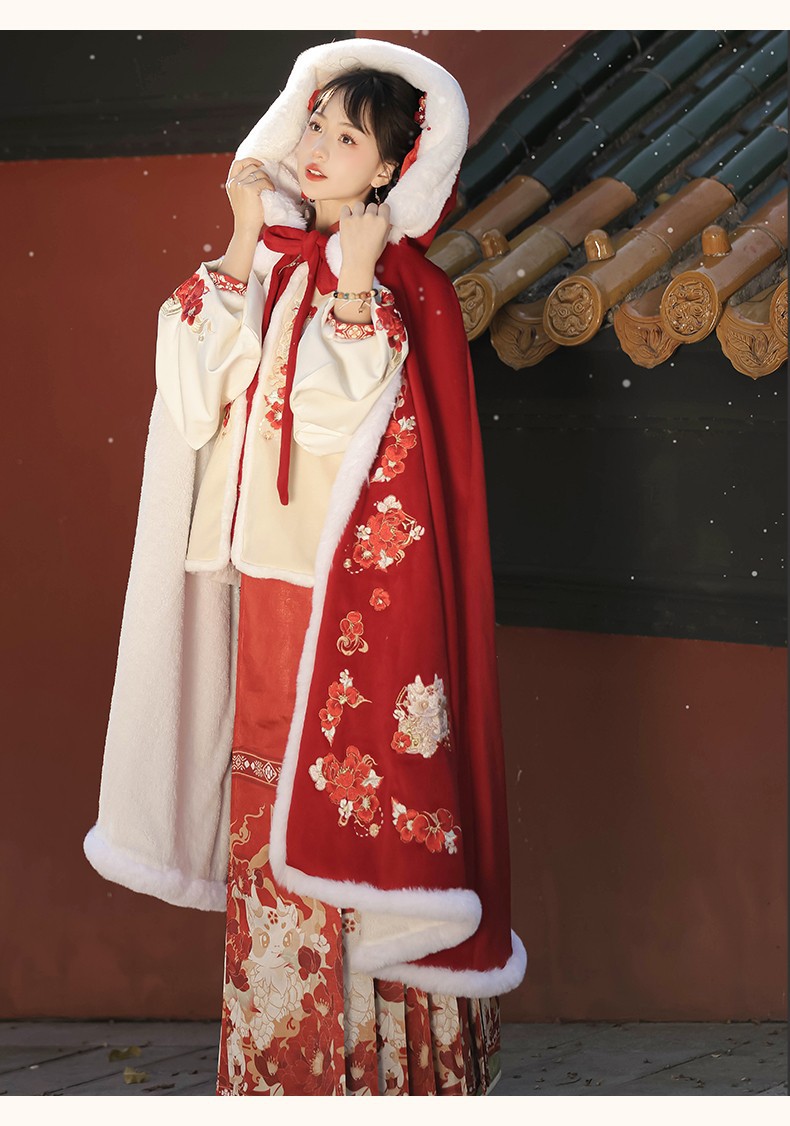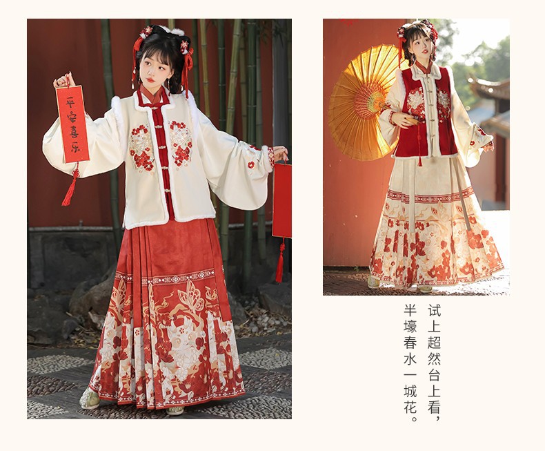 原创汉服女【玉龙歌】明制马面裙加绒刺绣方领比甲拜年服冬套装