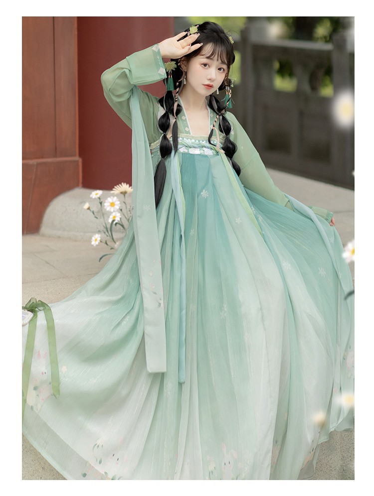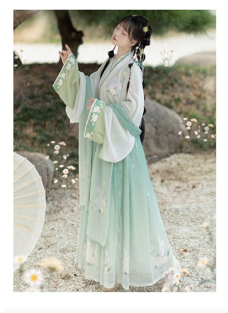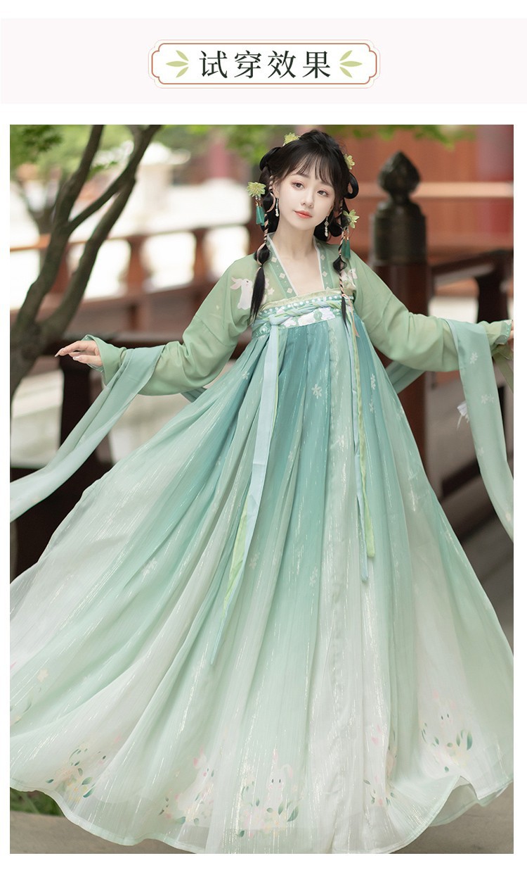 成人汉服女款织梦兔原创刺绣齐腰交领襦裙女学生齐胸印花夏秋新款