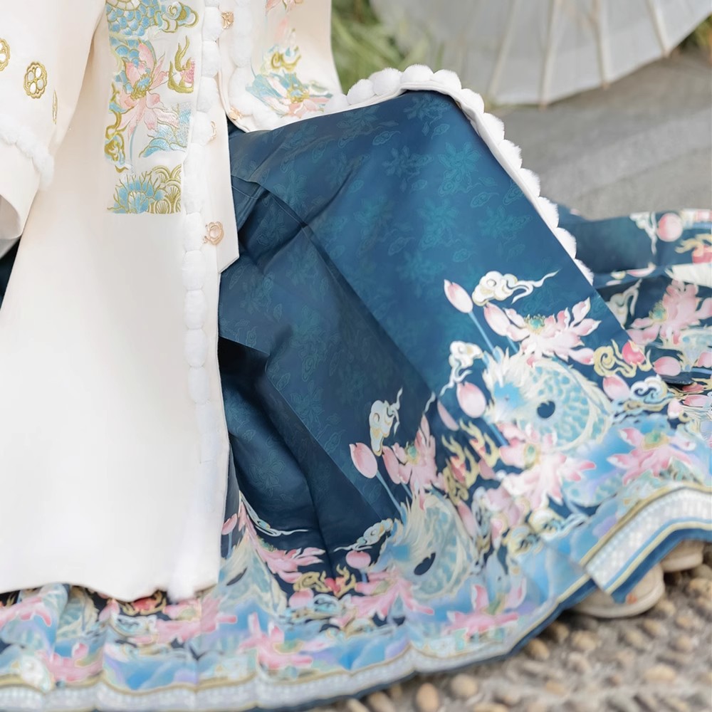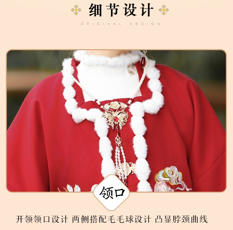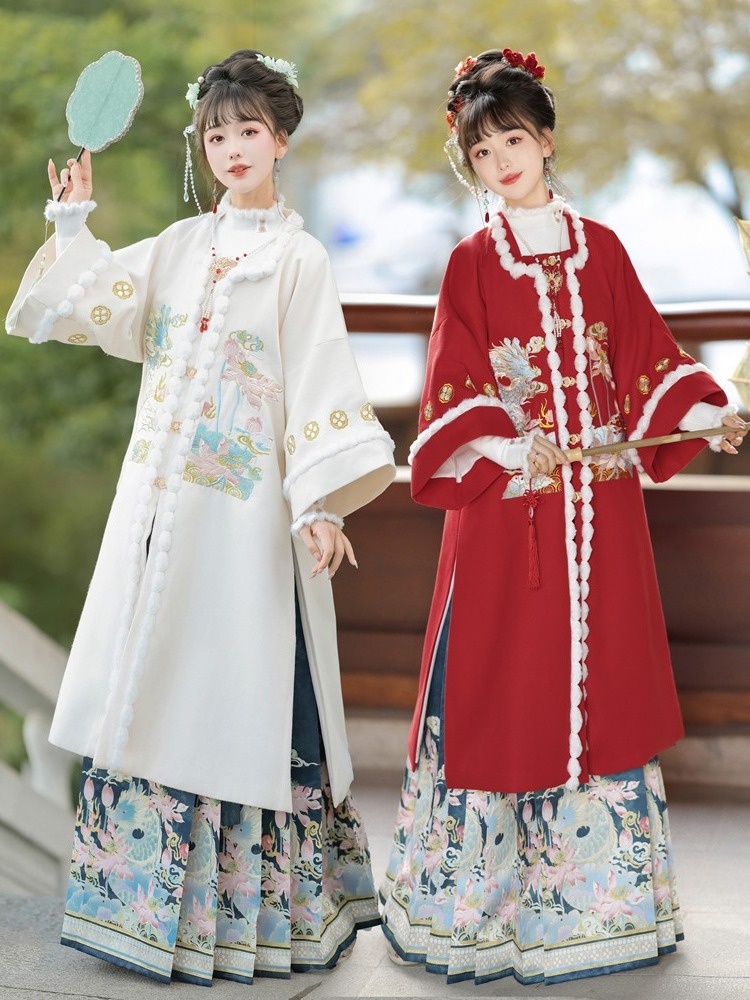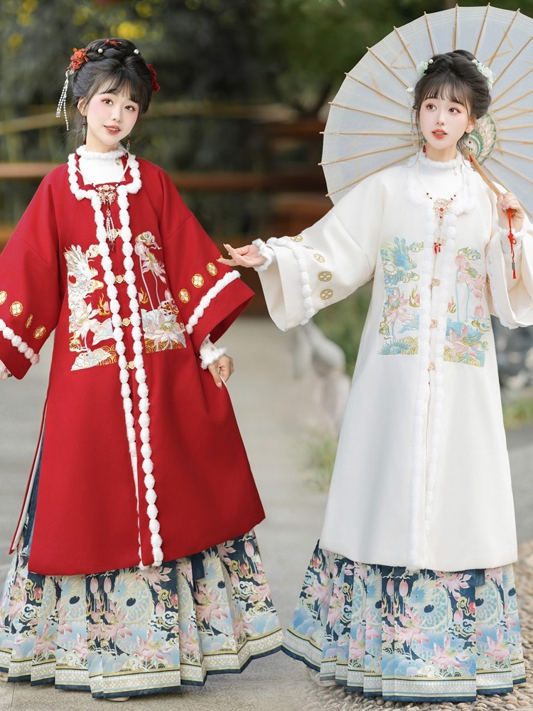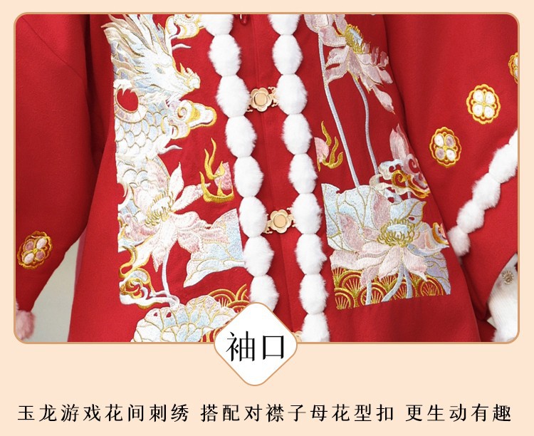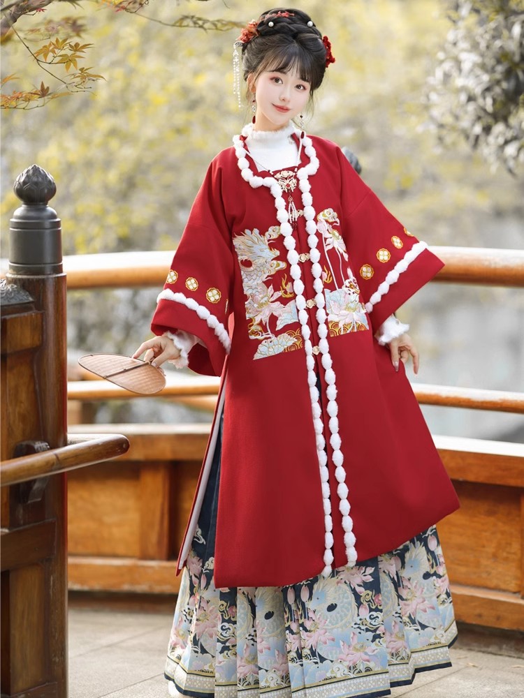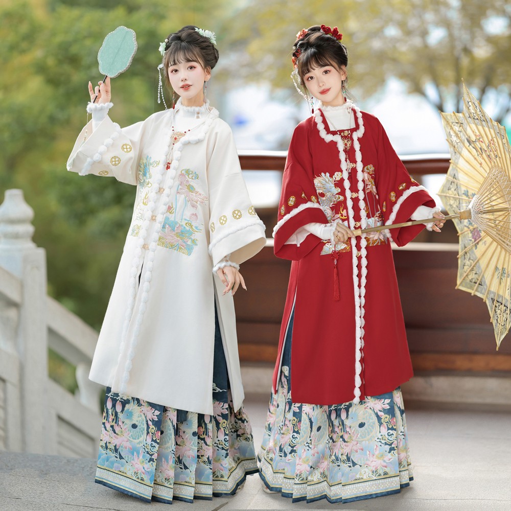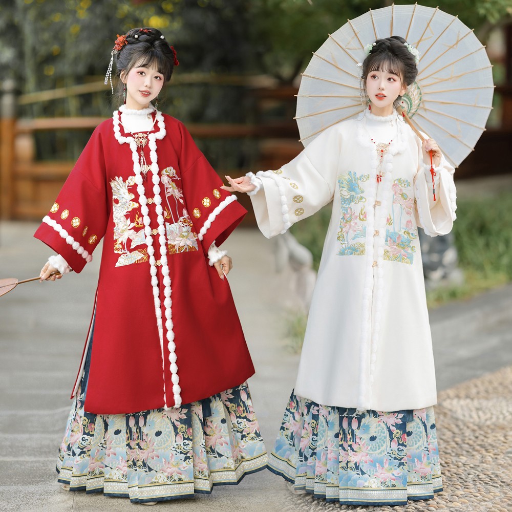 钰水瑶新款汉服女明制方领对襟长衫马面裙加绒加厚刺绣冬款拜年服