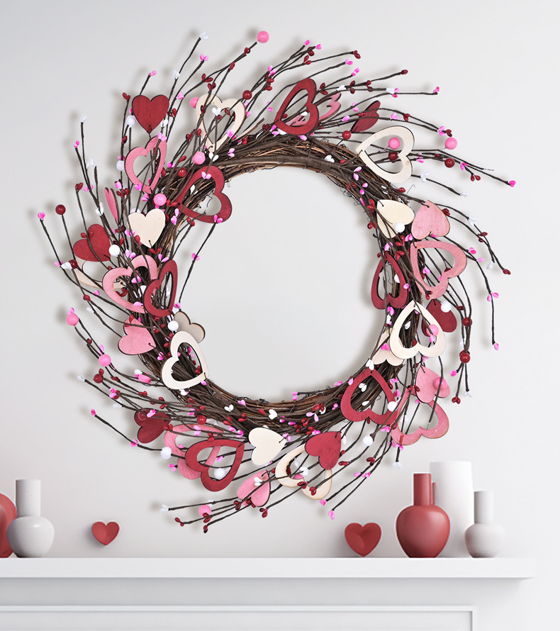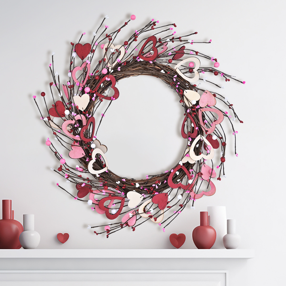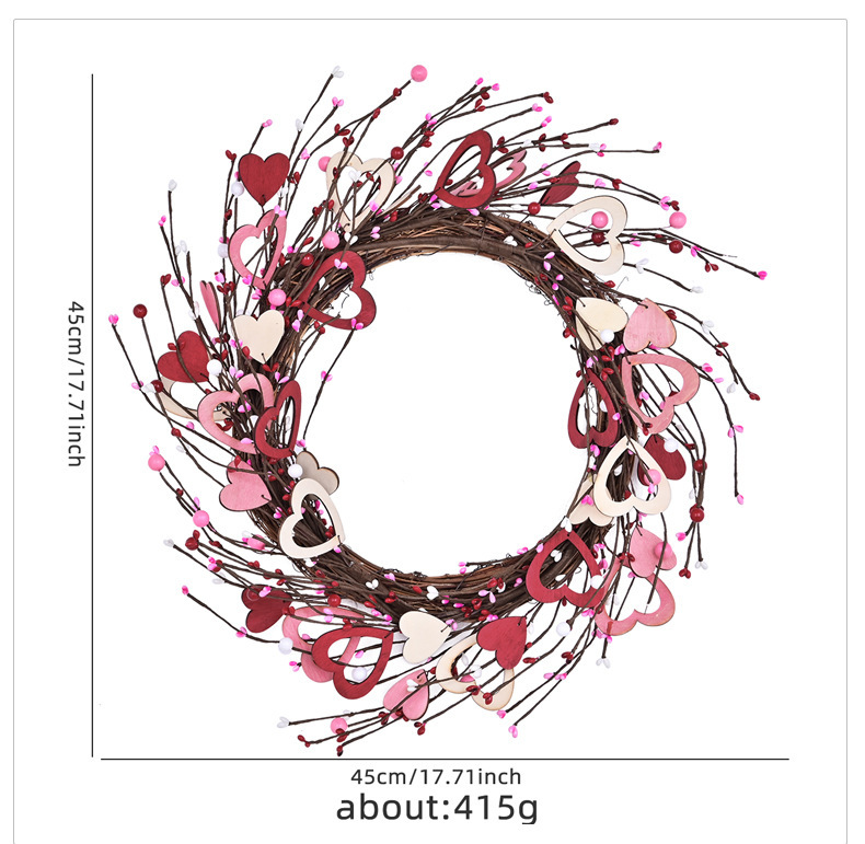 跨境新品情人节爱心花环门挂婚礼求婚派对场景装饰心形花环