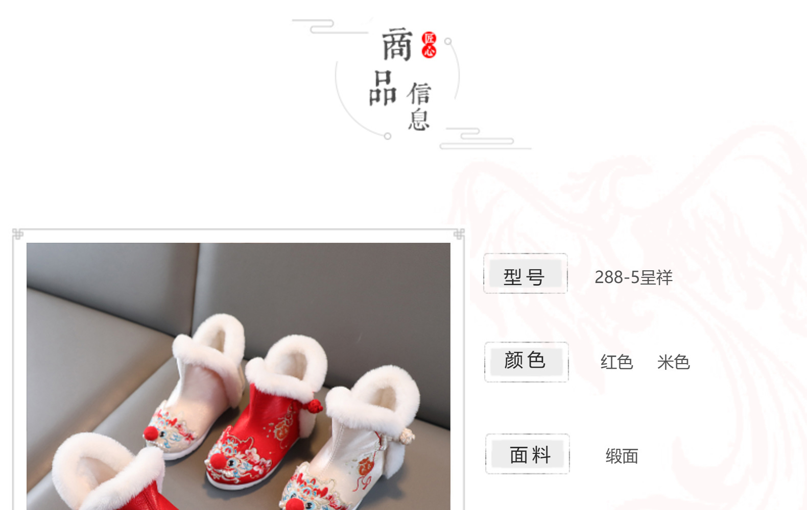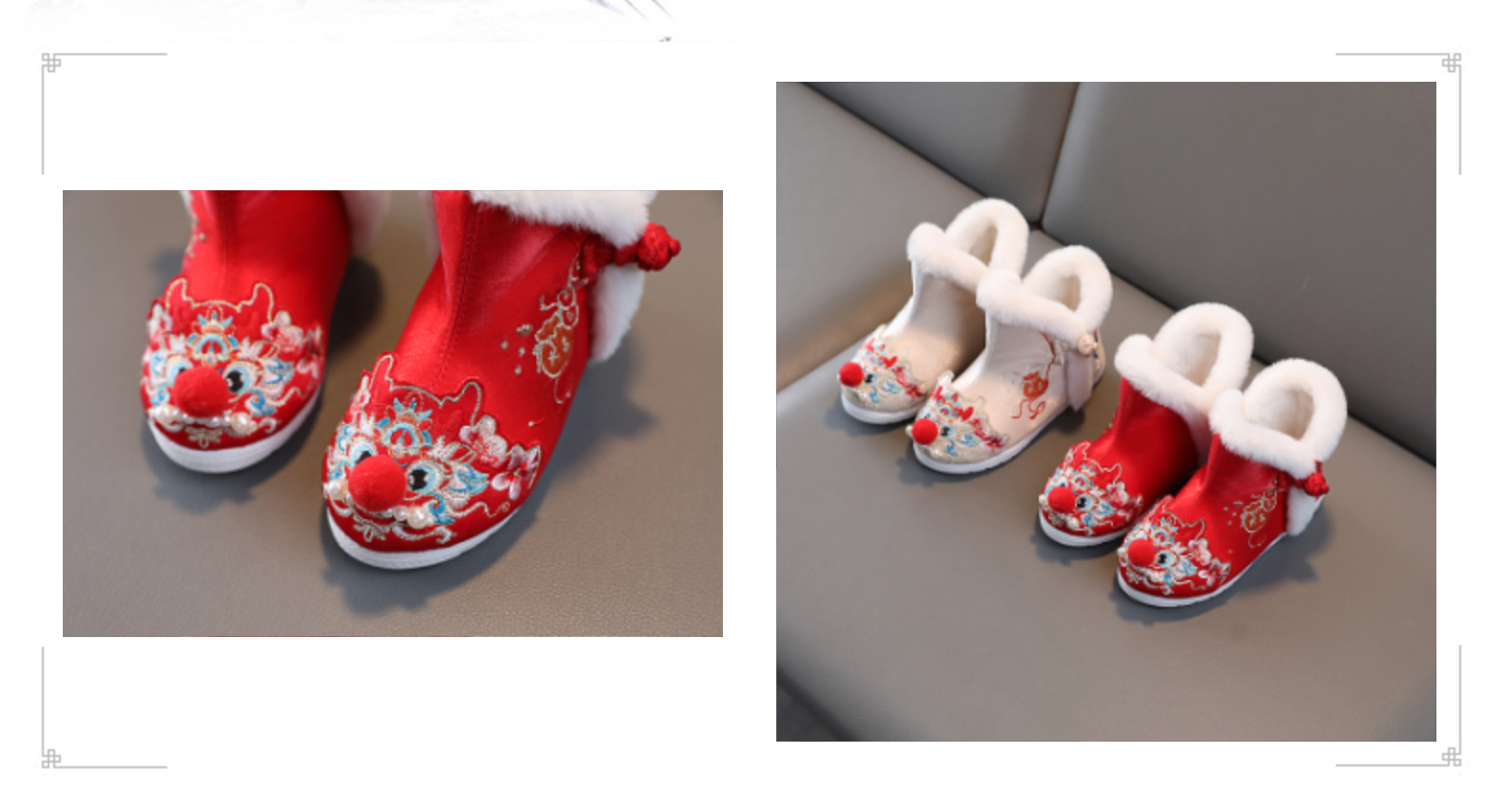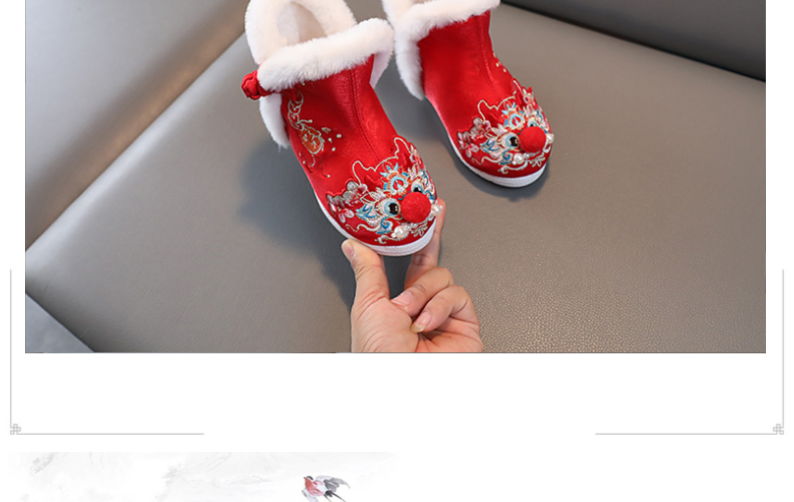 儿童汉服鞋女童冬季古装棉鞋中国风绣花鞋民族风雪地靴加绒拜年鞋