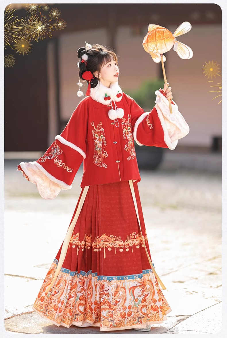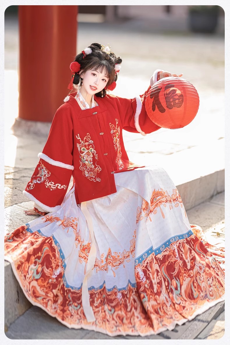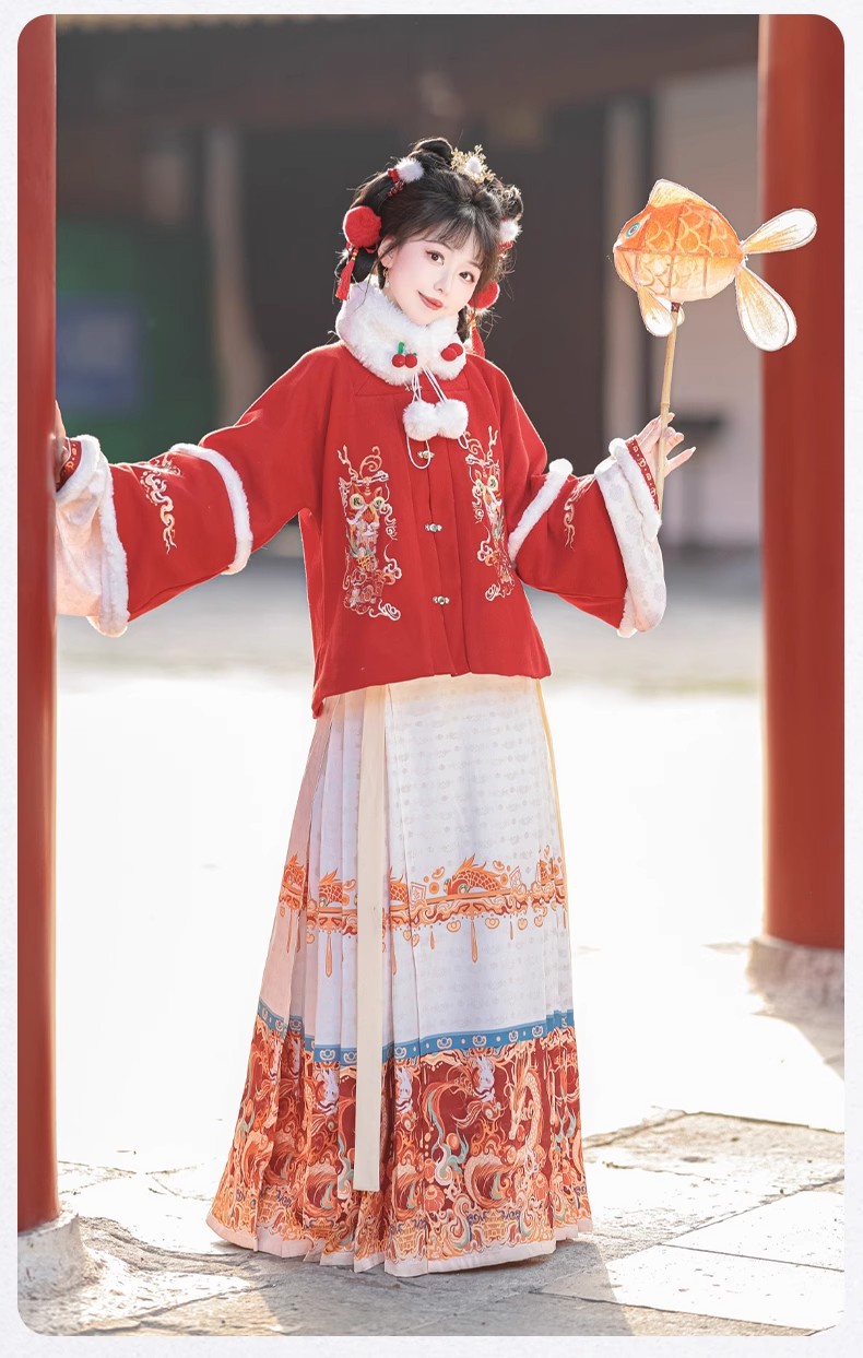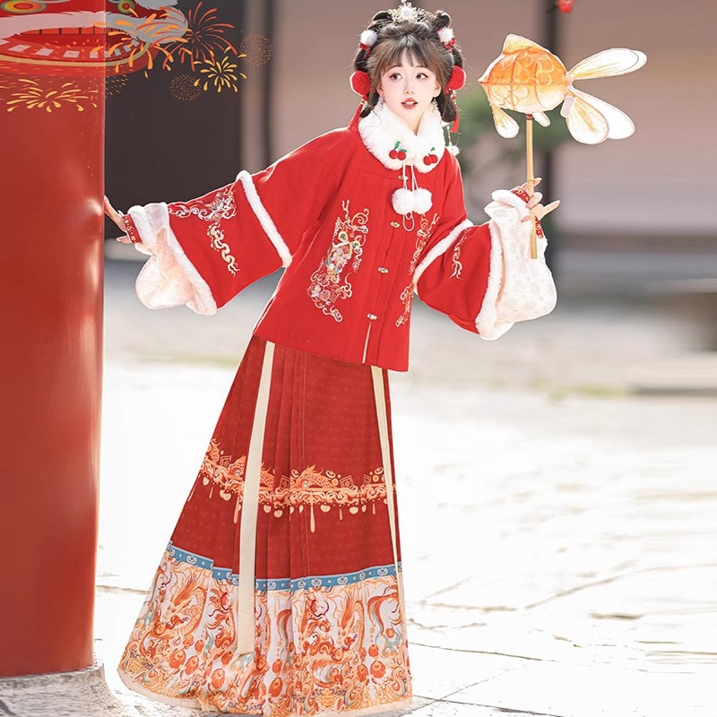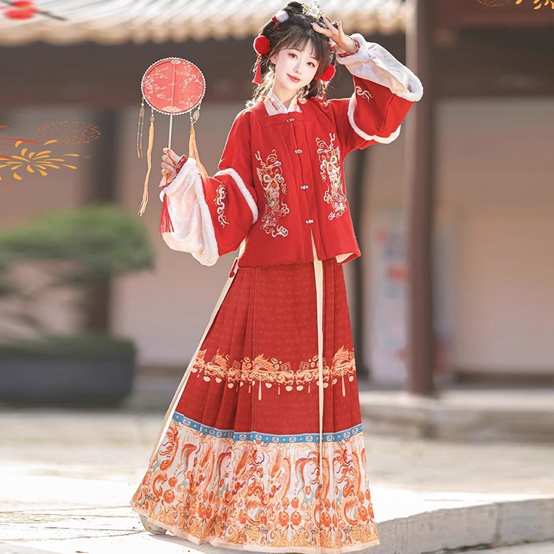 玲珑福福原创冬季明制汉服女马面裙新年战袍中国风过年拜年服全套