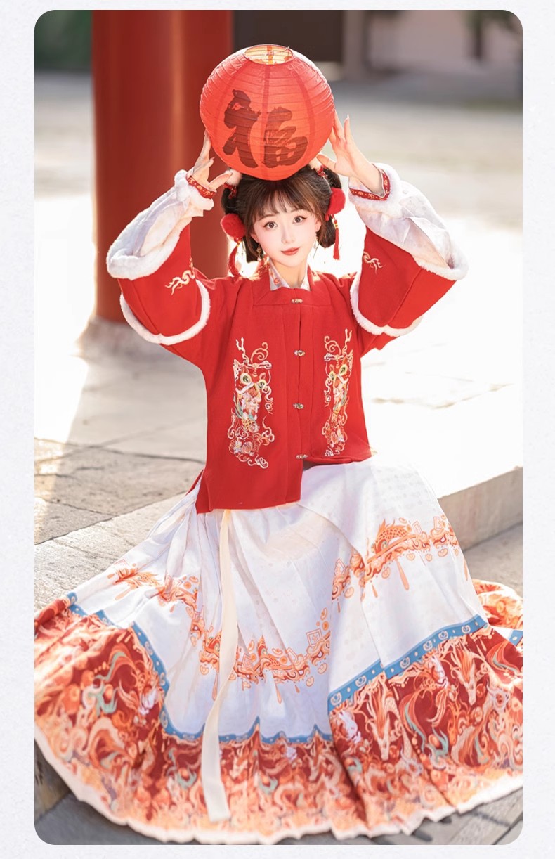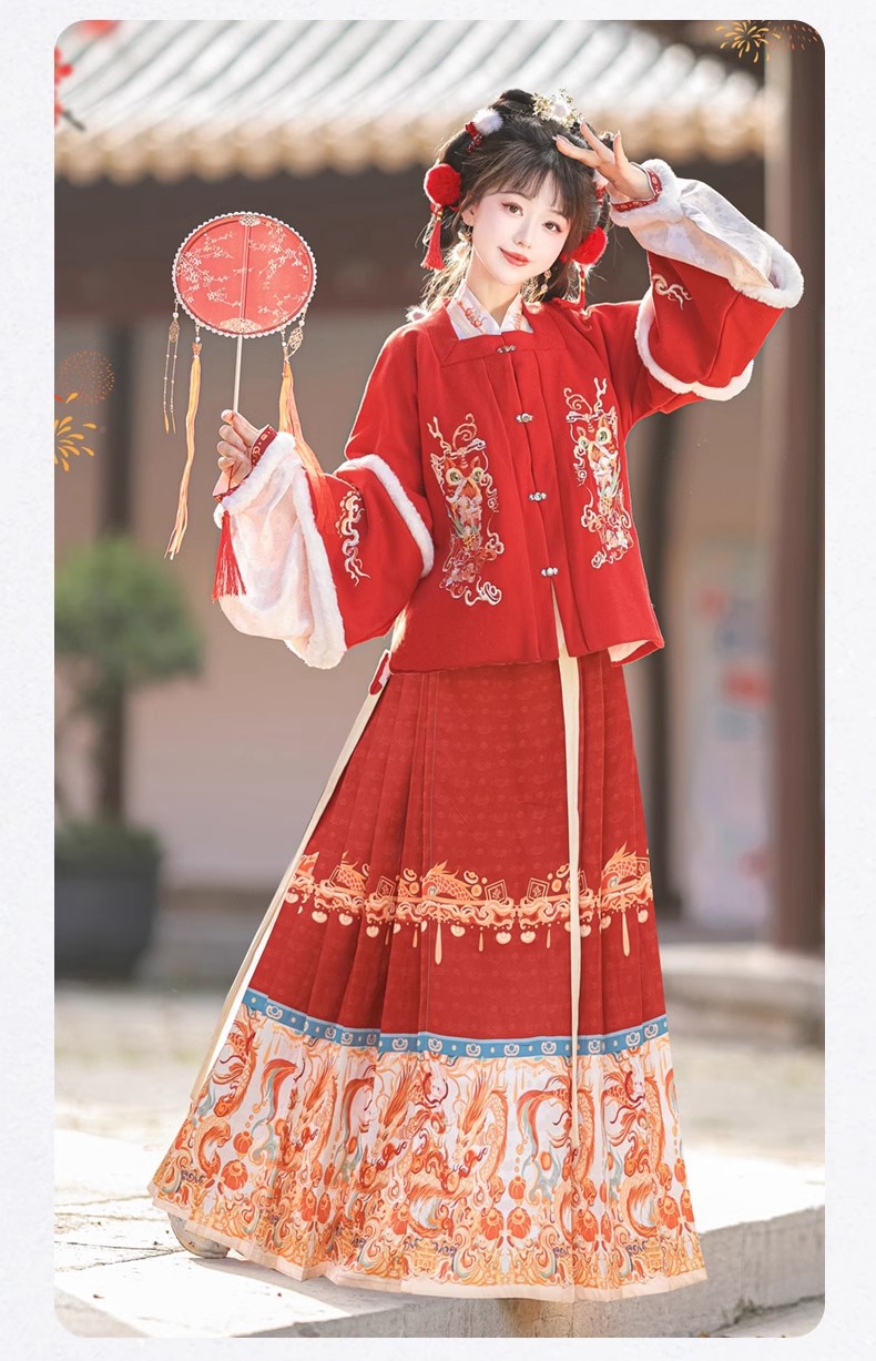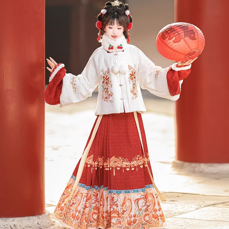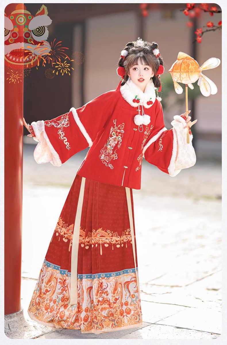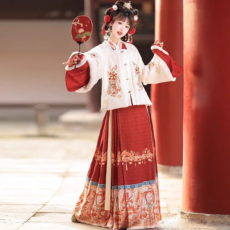 玲珑福福原创冬季明制汉服女马面裙新年战袍中国风过年拜年服全套