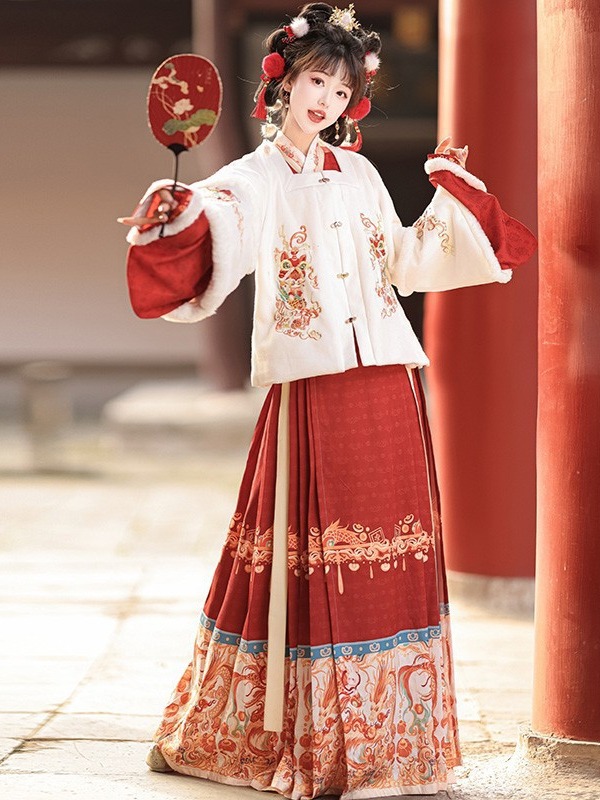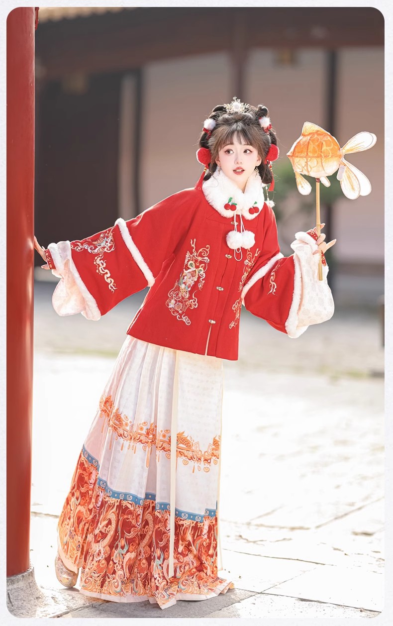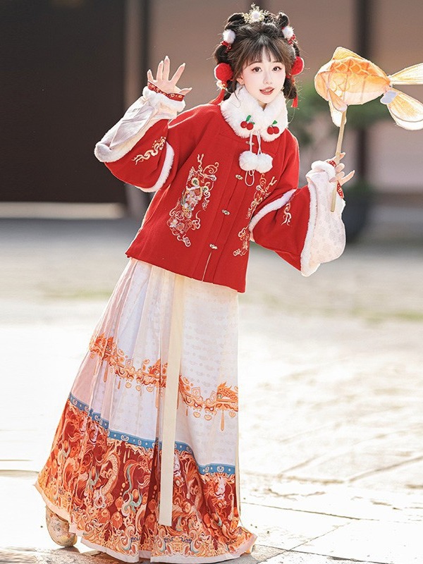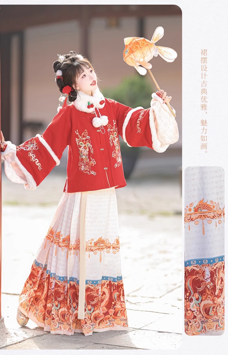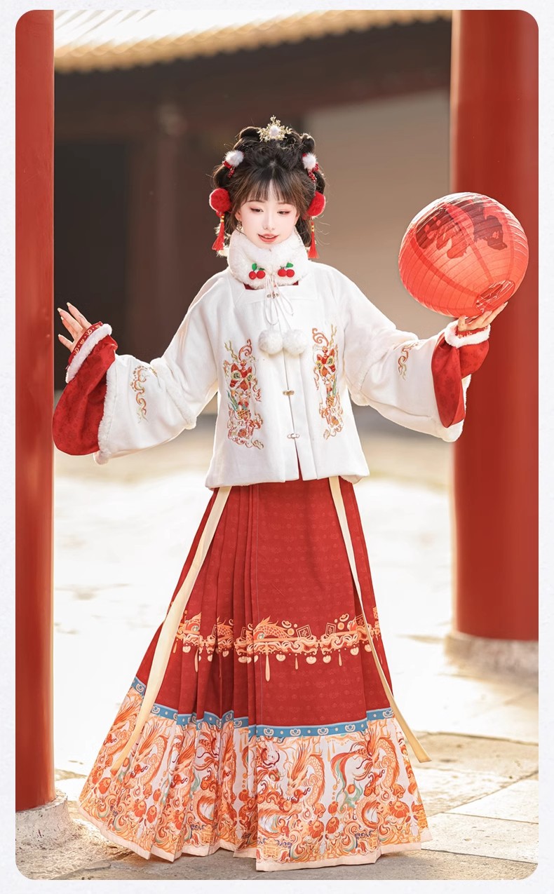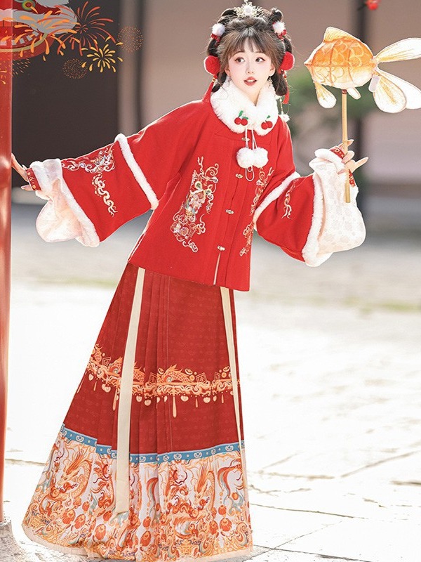 玲珑福福原创冬季明制汉服女马面裙新年战袍中国风过年拜年服全套