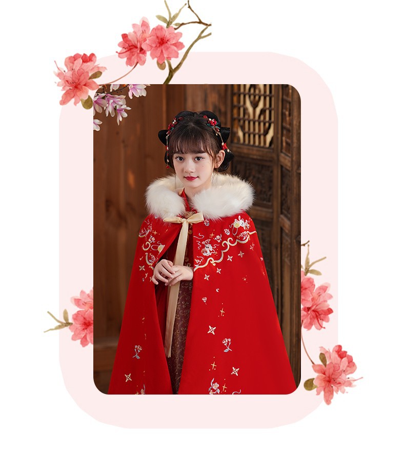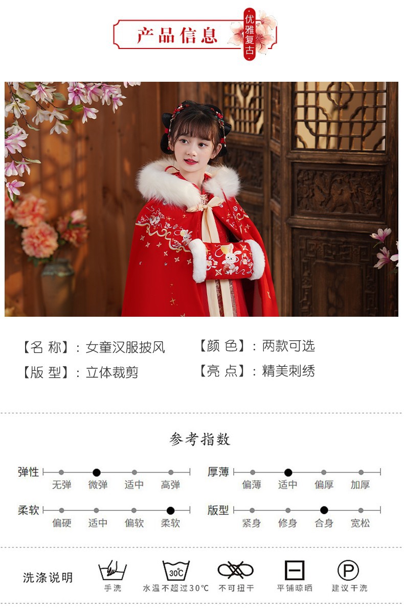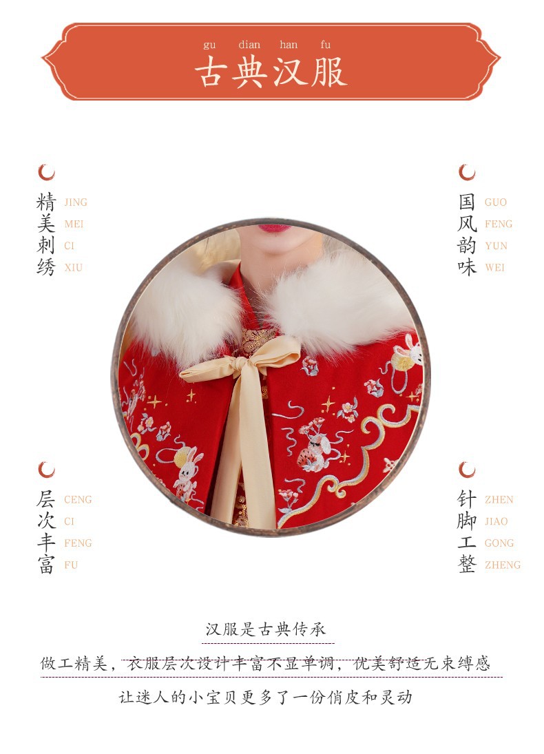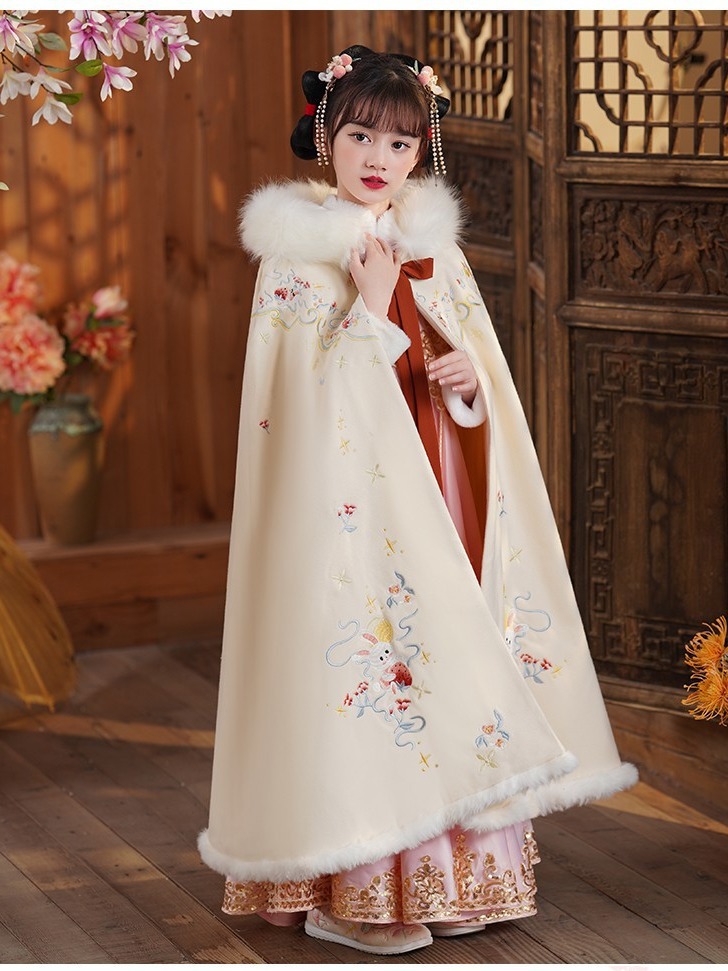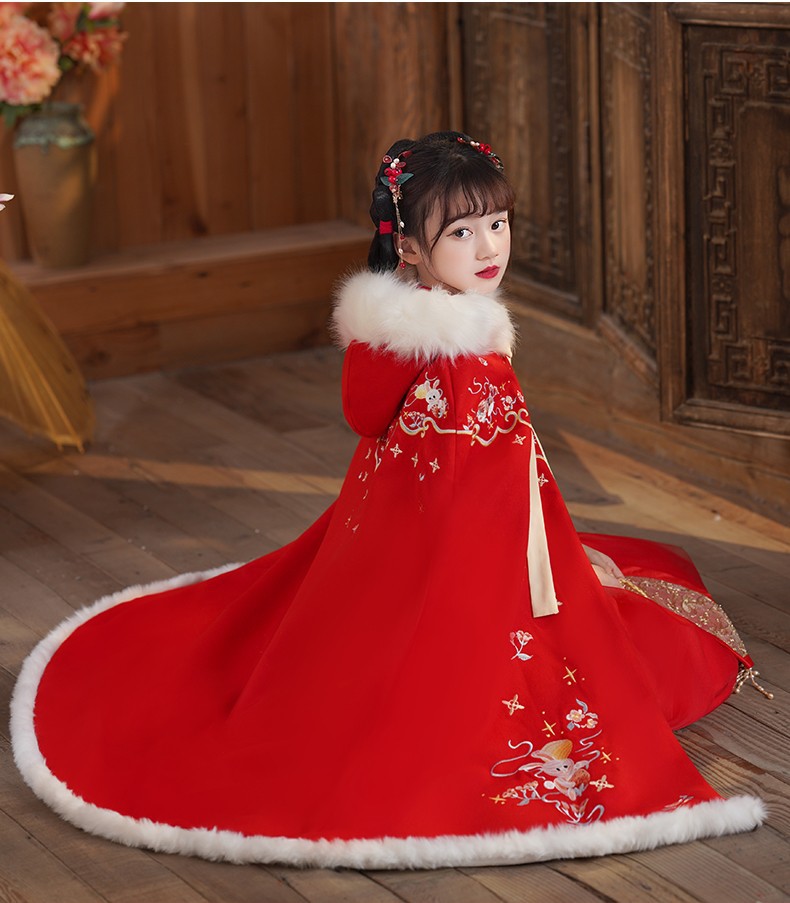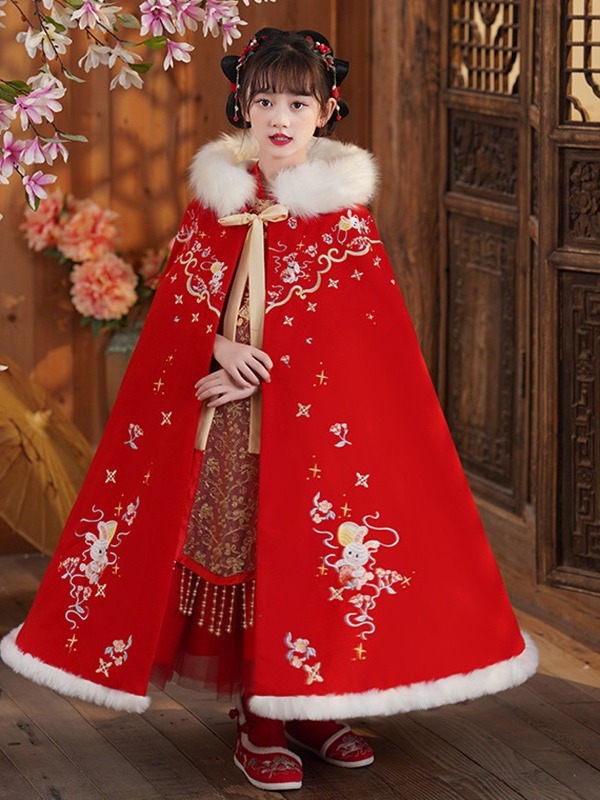 玉兔女童斗篷汉服披风加绒加厚长款女宝宝披肩小女孩中国风过年服