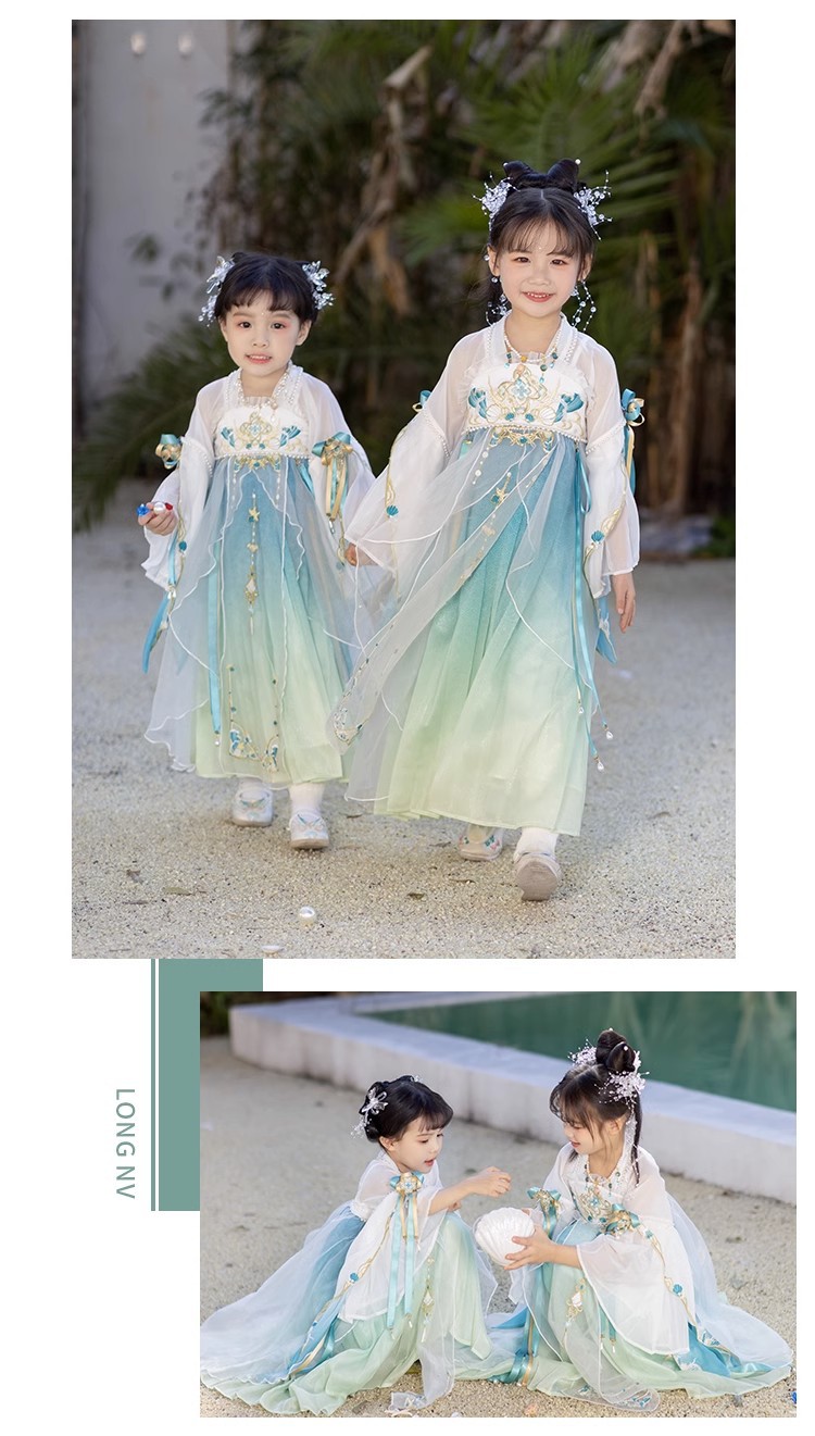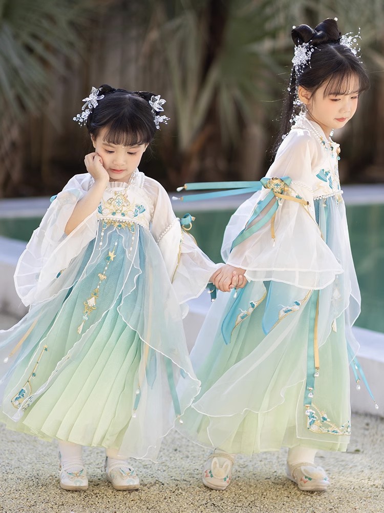 儿童汉服女童夏秋季2023新款花神中国风古装超仙甜美刺绣印花襦裙