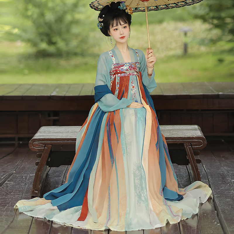 成人汉服女款中国风刺绣长款超仙齐胸襦裙套装夏秋季新款连衣裙子