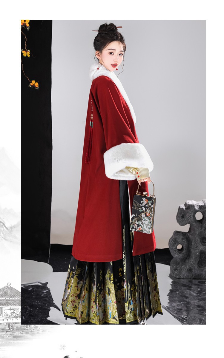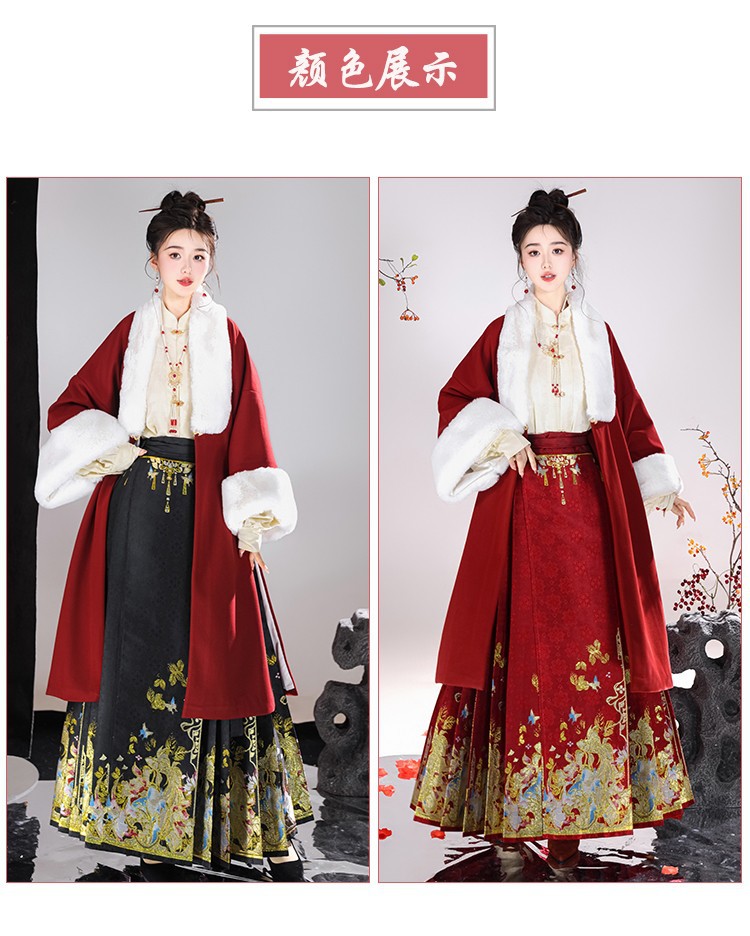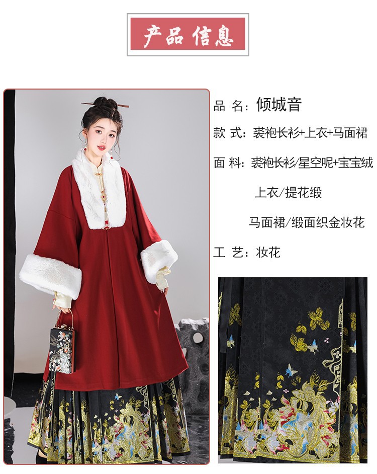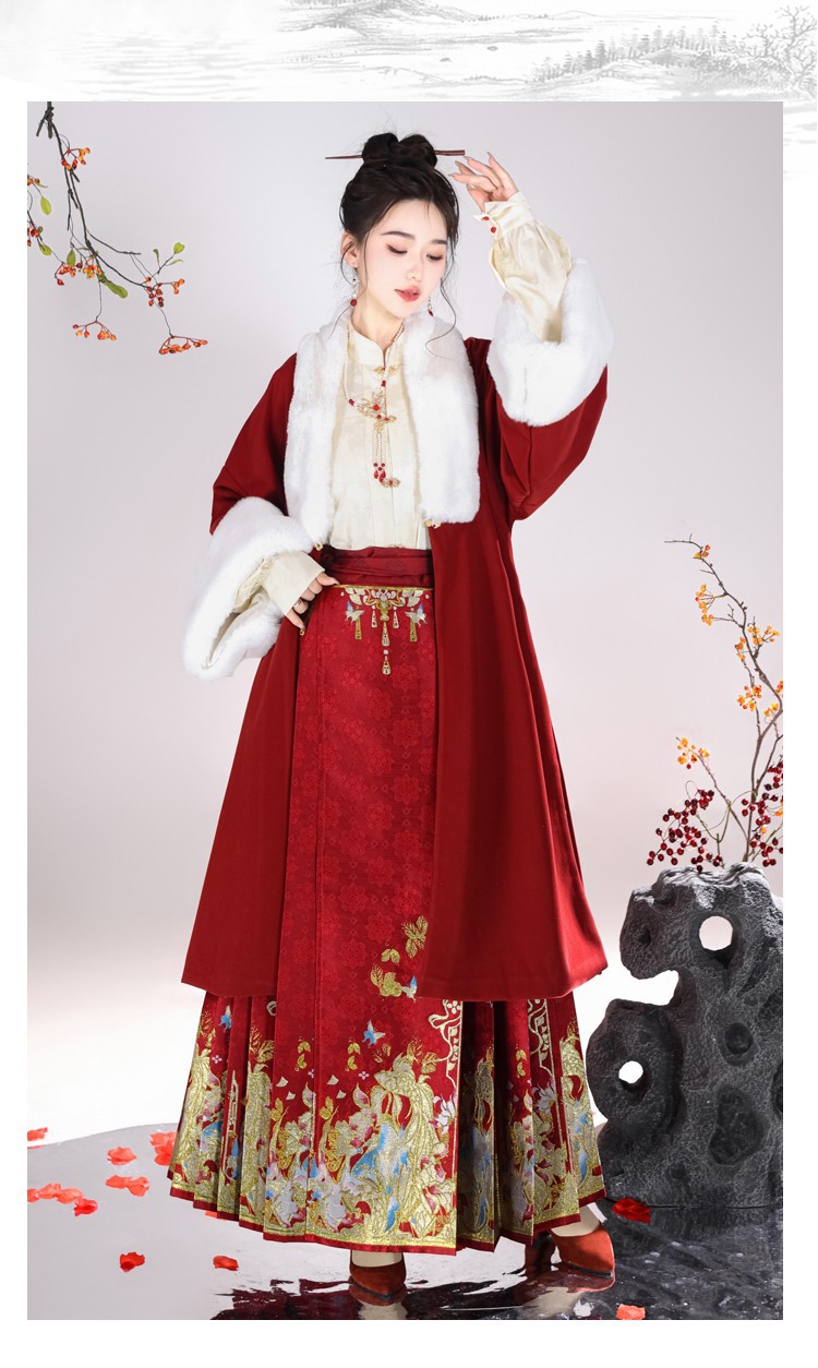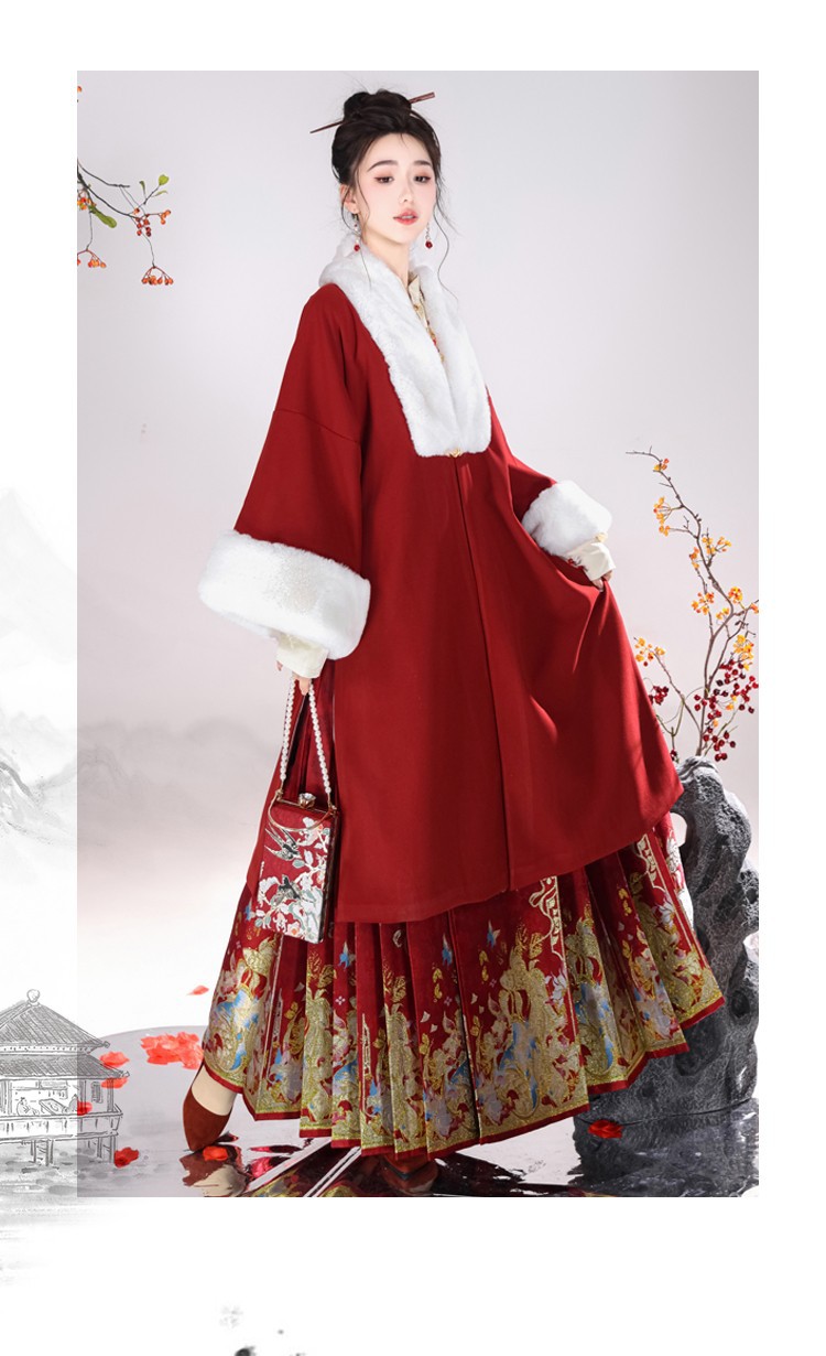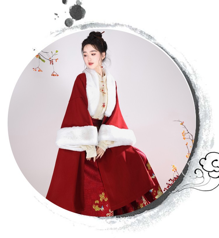 倾城音新款原创汉服女红色裘衣妆花马面裙套装汉元素拜年服婚服