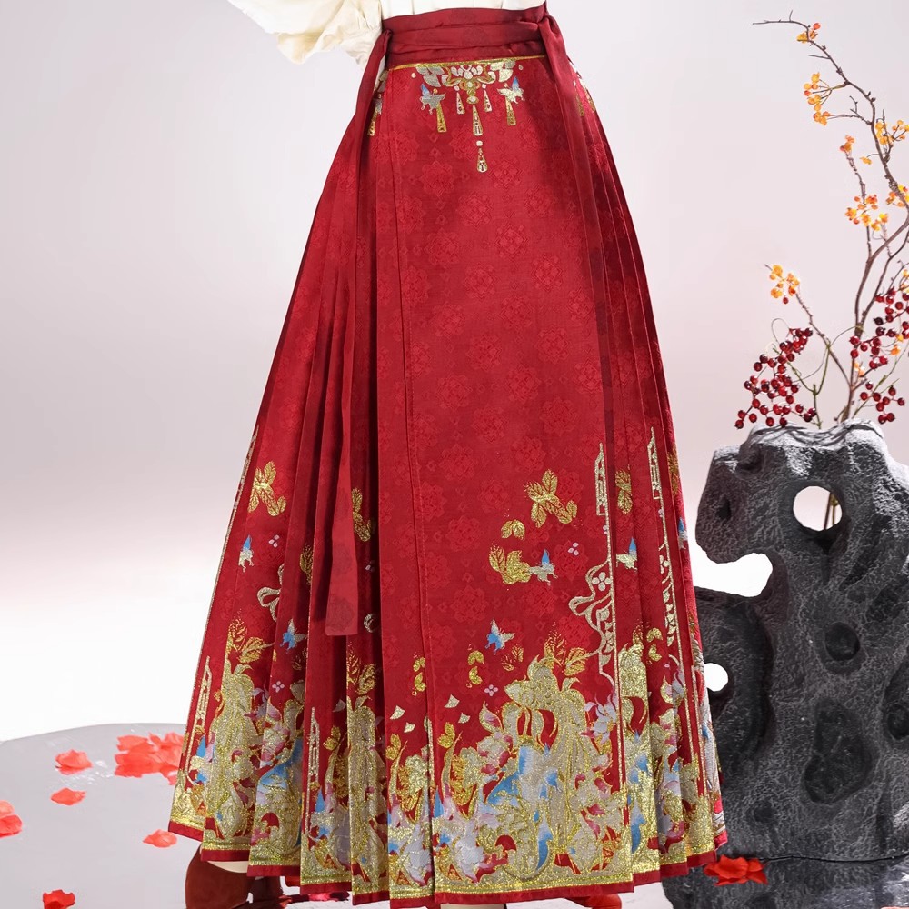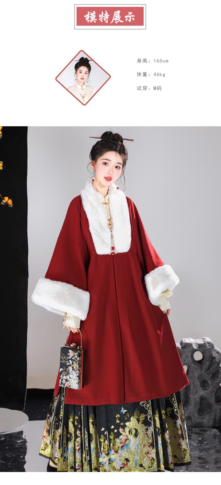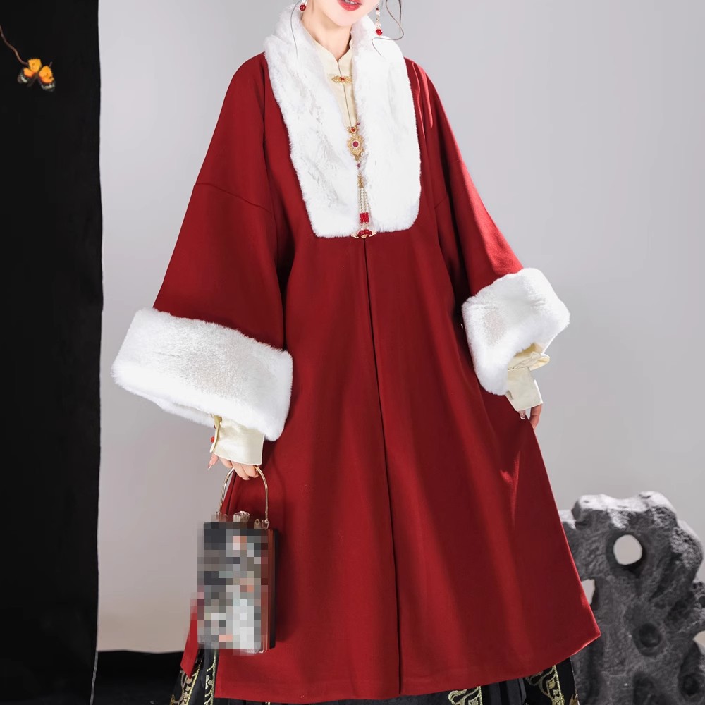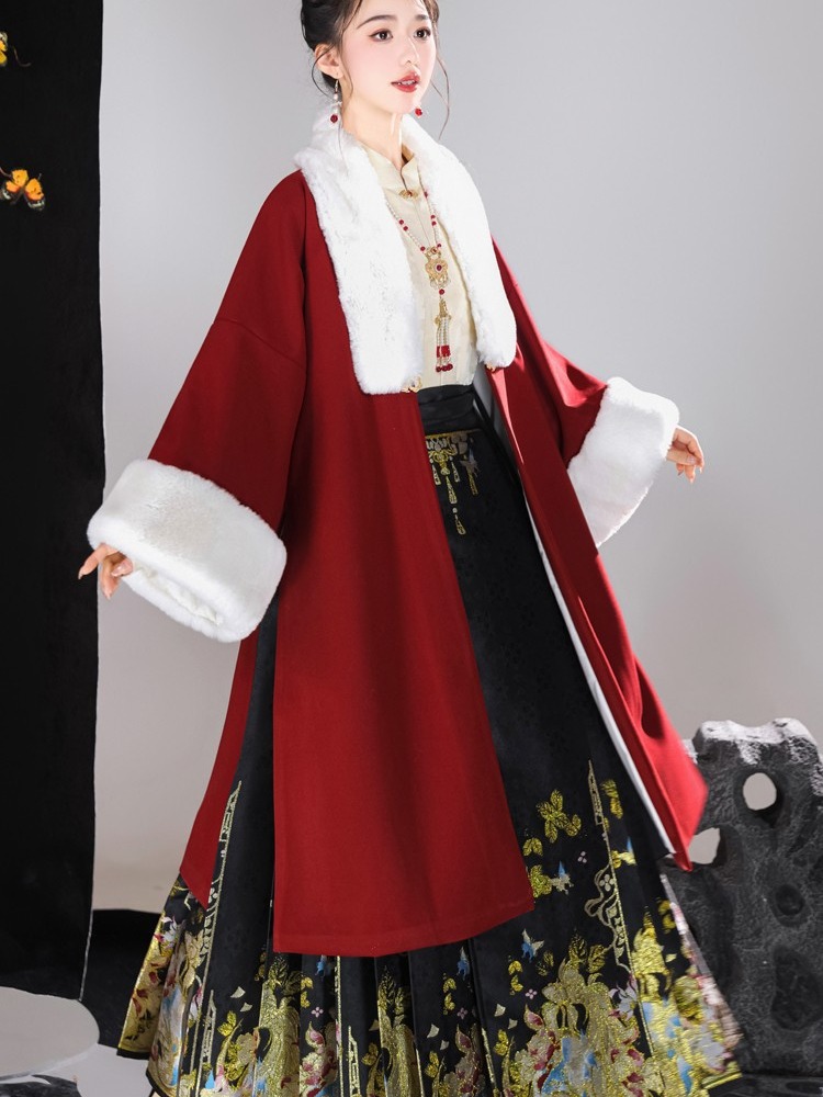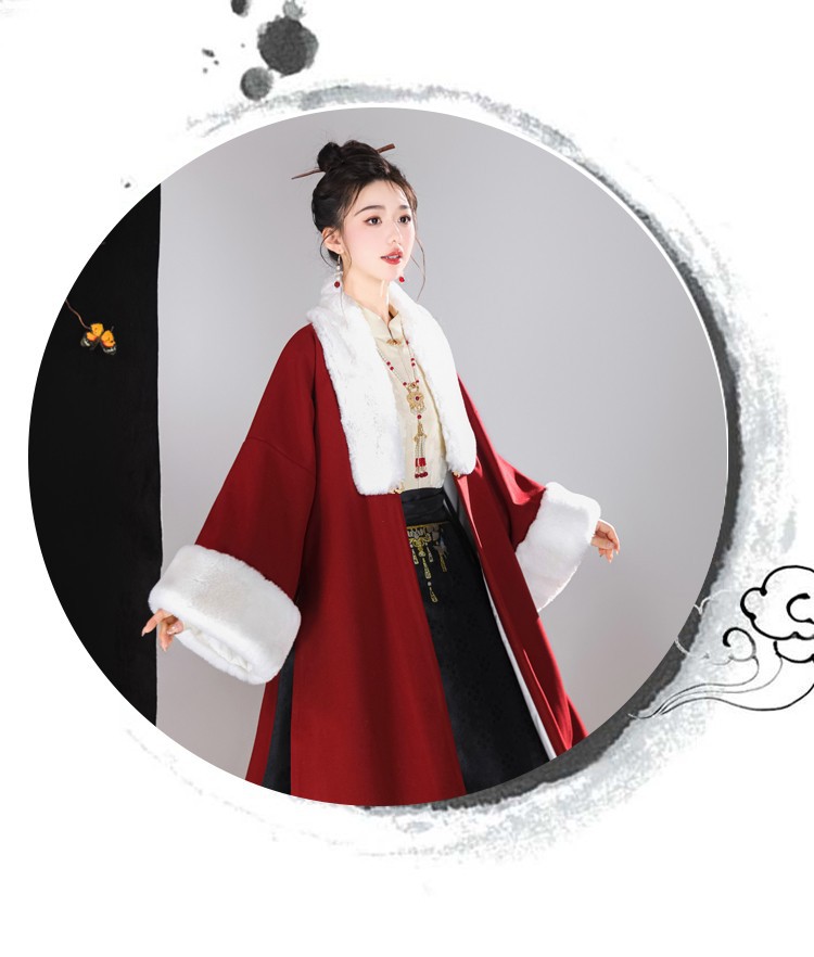 倾城音新款原创汉服女红色裘衣妆花马面裙套装汉元素拜年服婚服