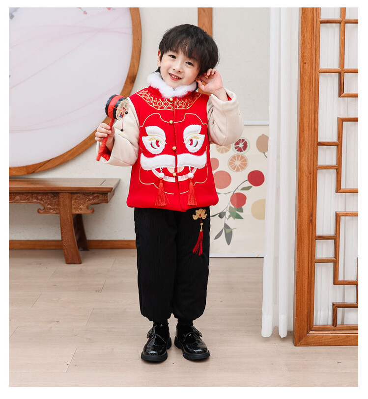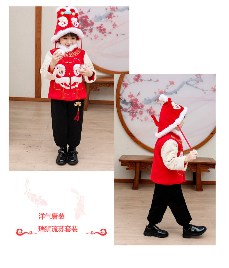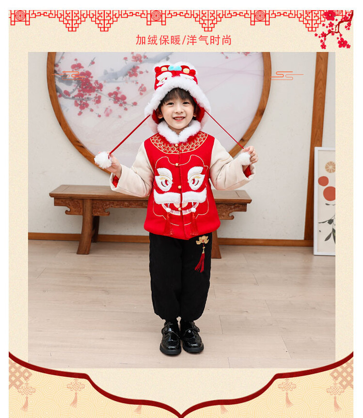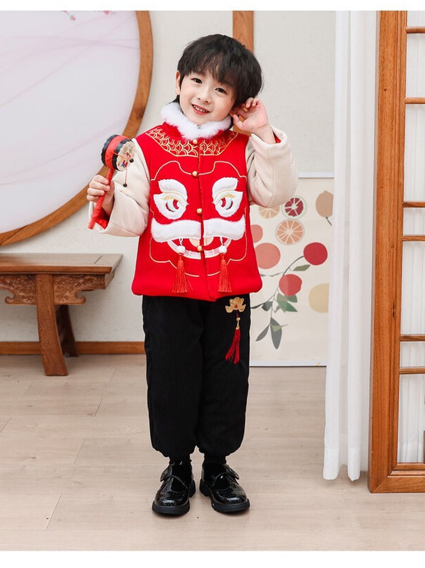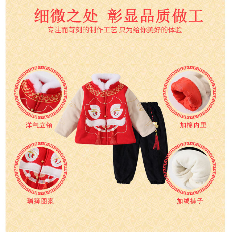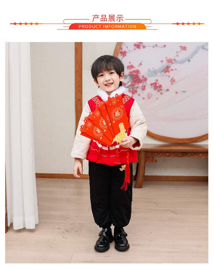汉服男童冬款2024古装中国风喜庆套装加绒加厚过年宝宝龙年拜年服