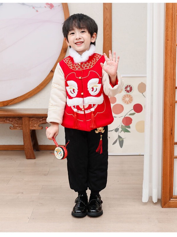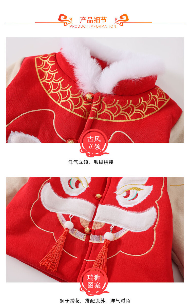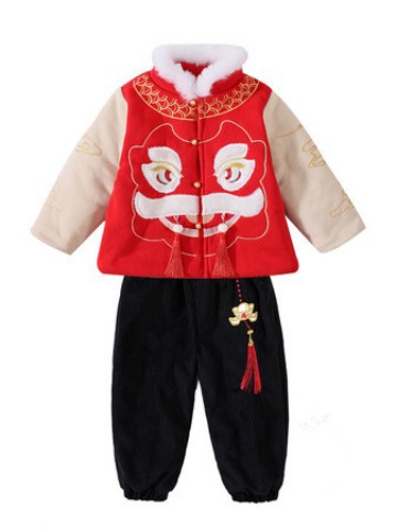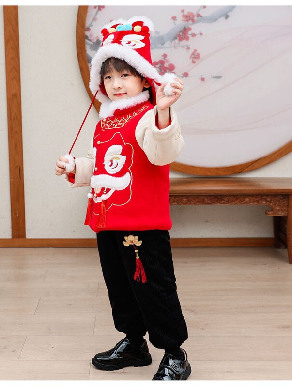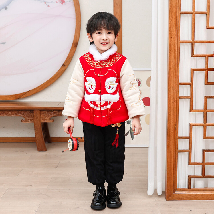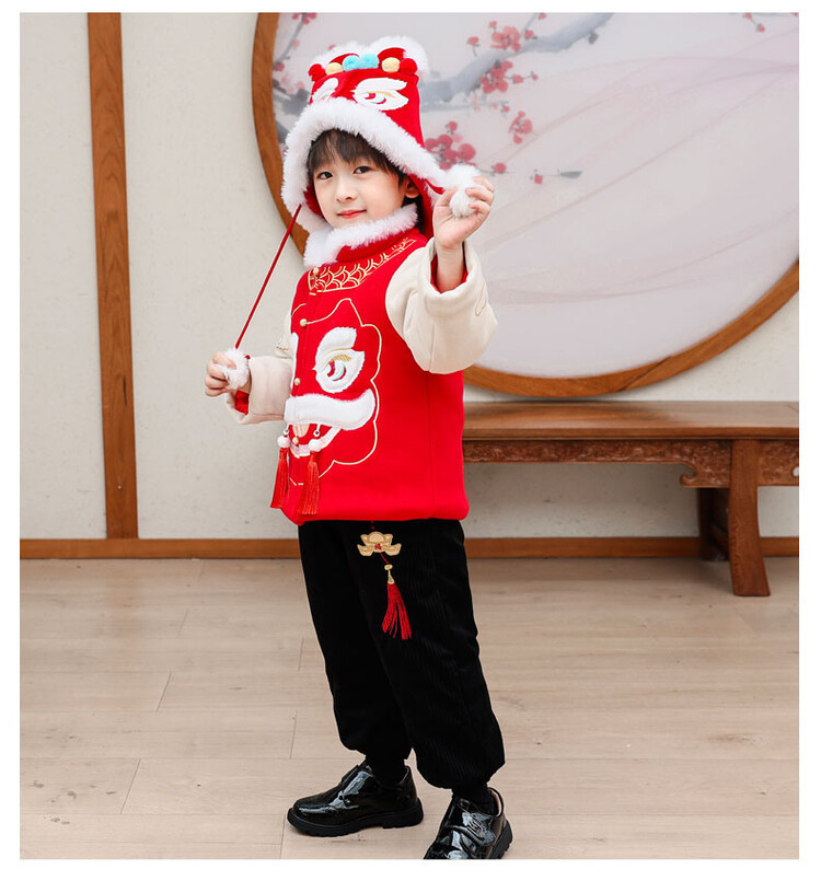 汉服男童冬款2024古装中国风喜庆套装加绒加厚过年宝宝龙年拜年服