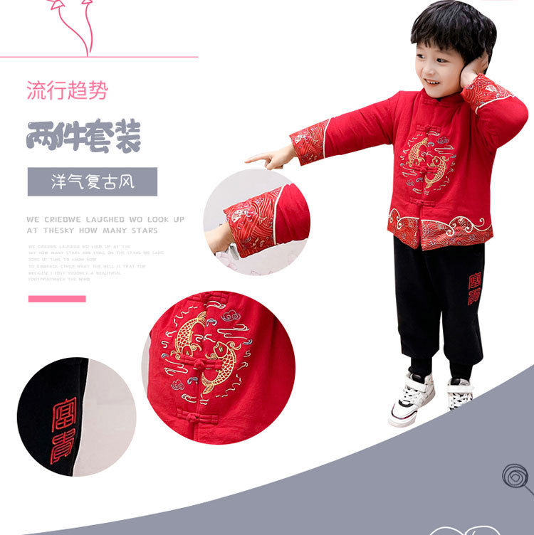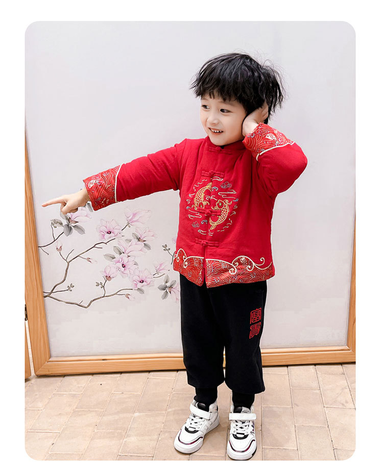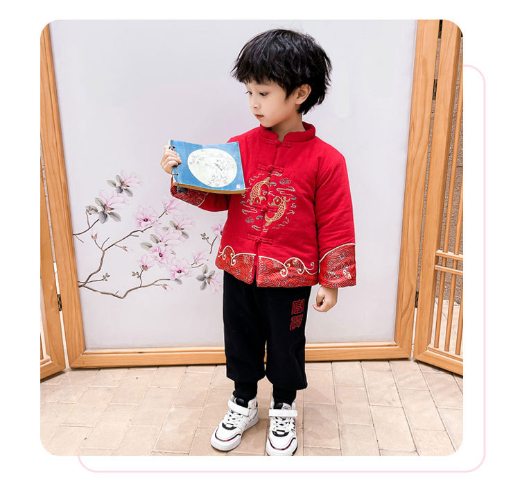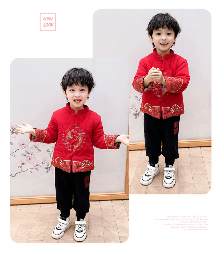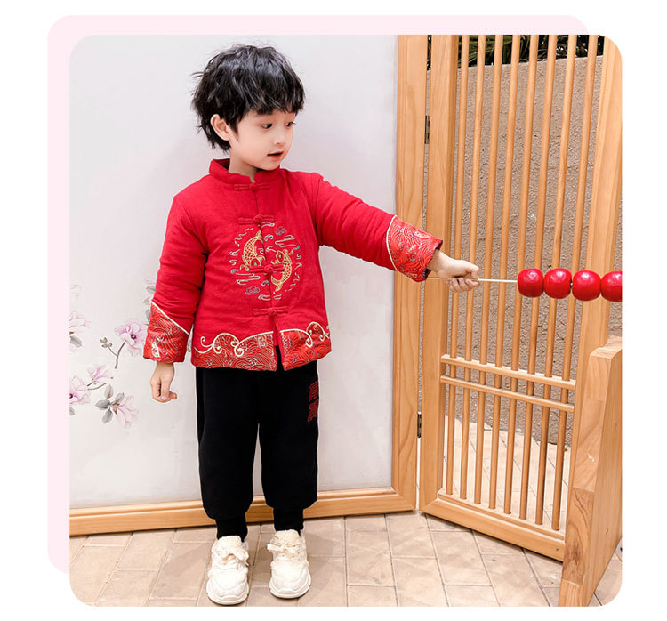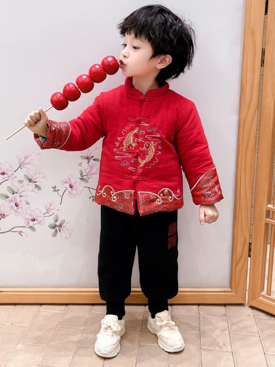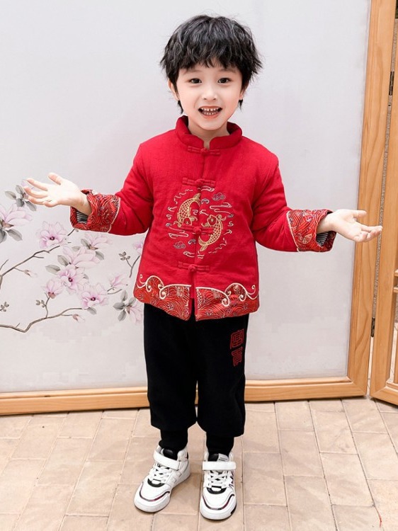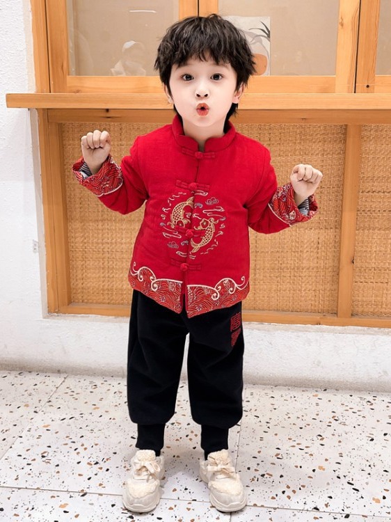 儿童汉服拜年服男童周岁2024冬季宝宝加厚唐装国风新年龙年过年服