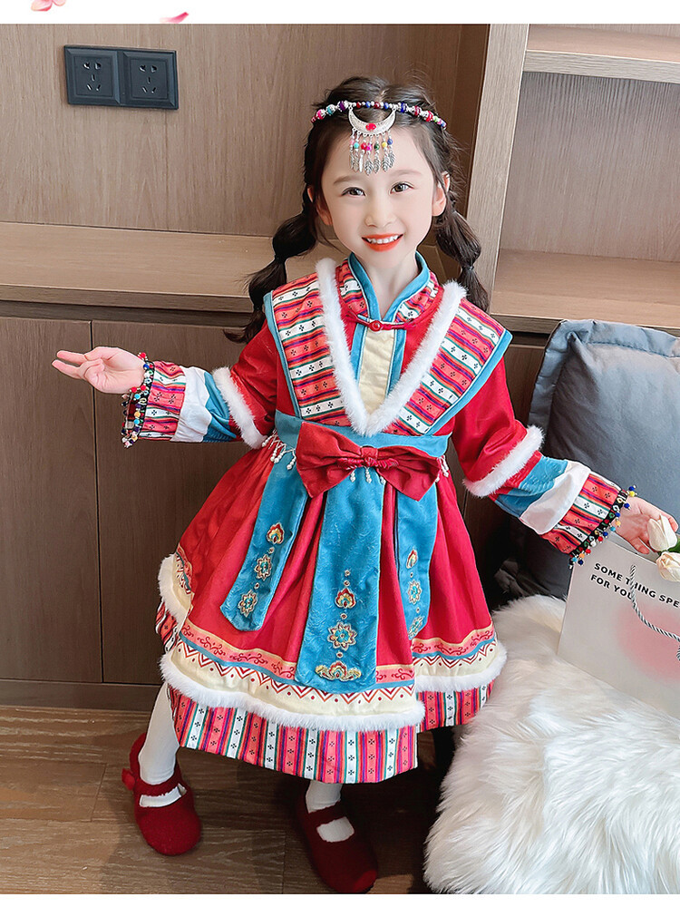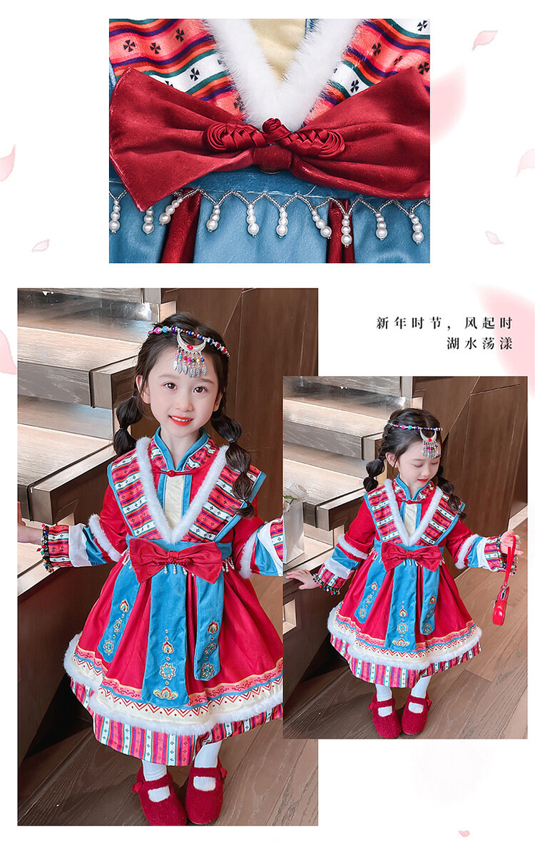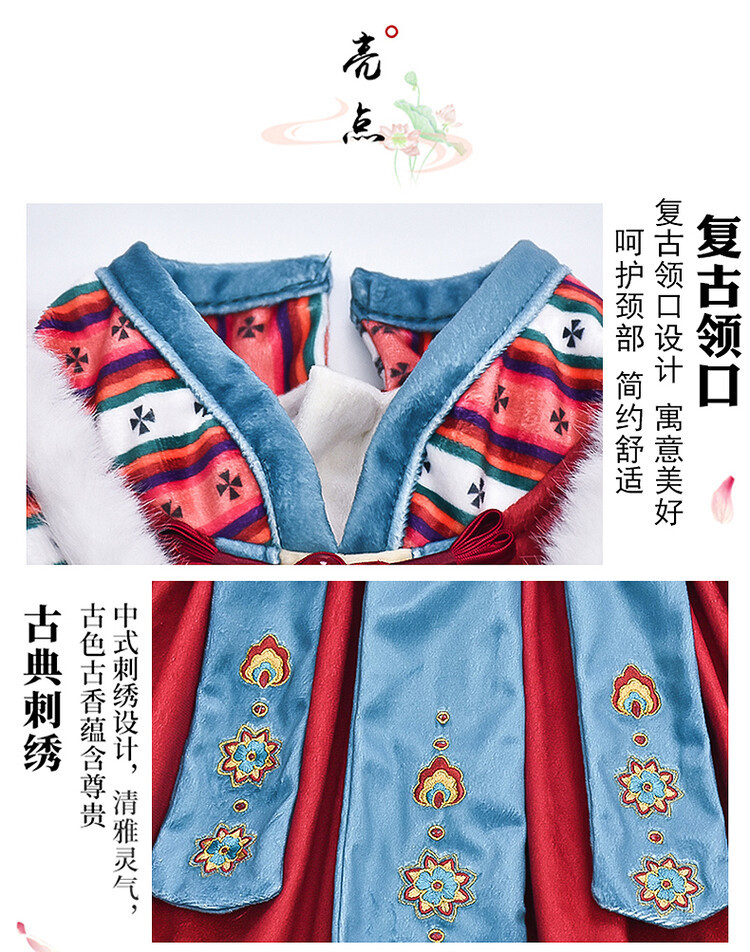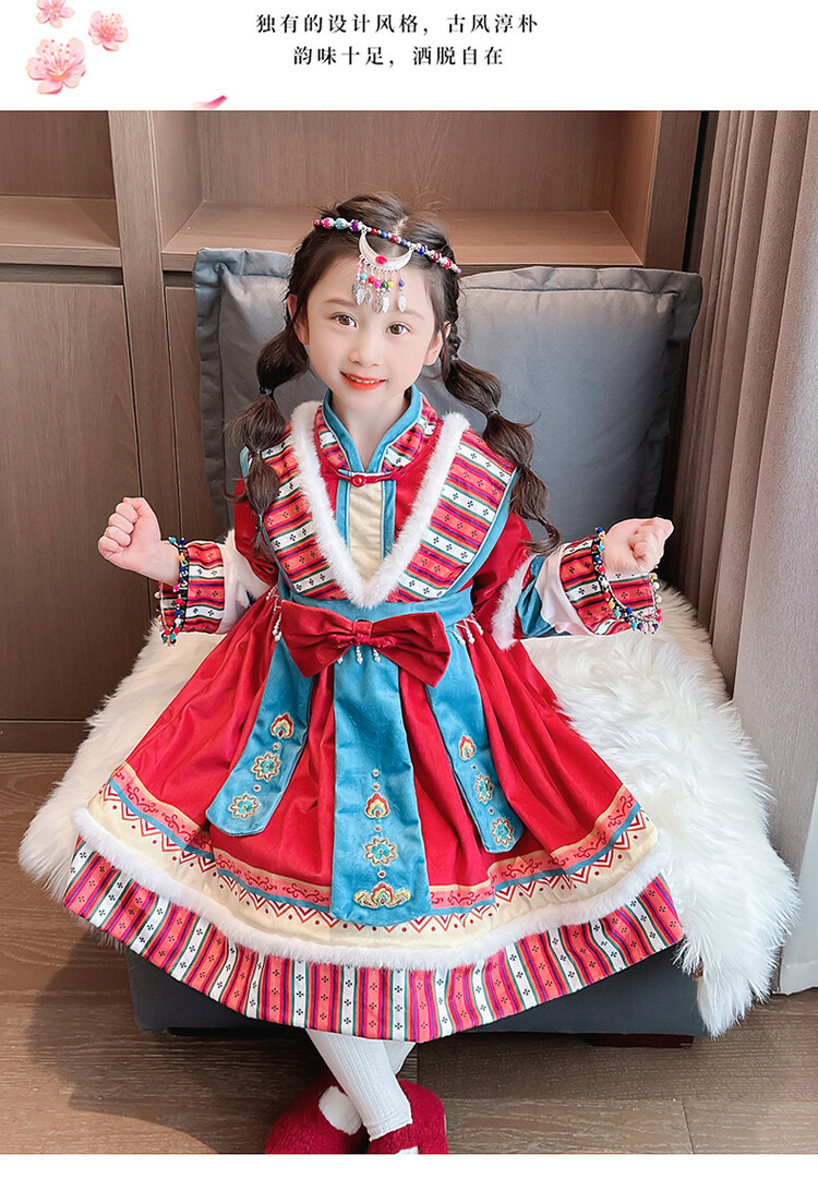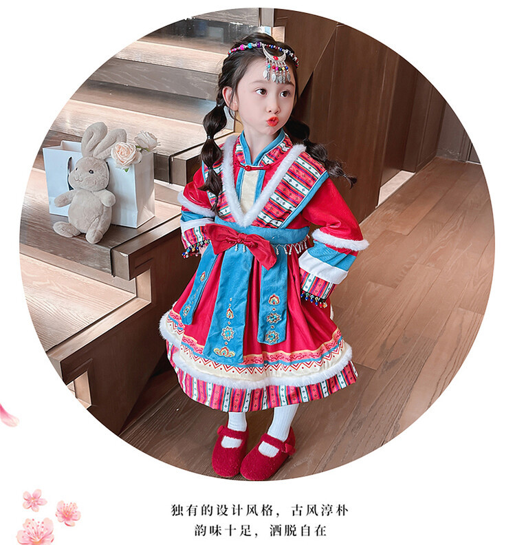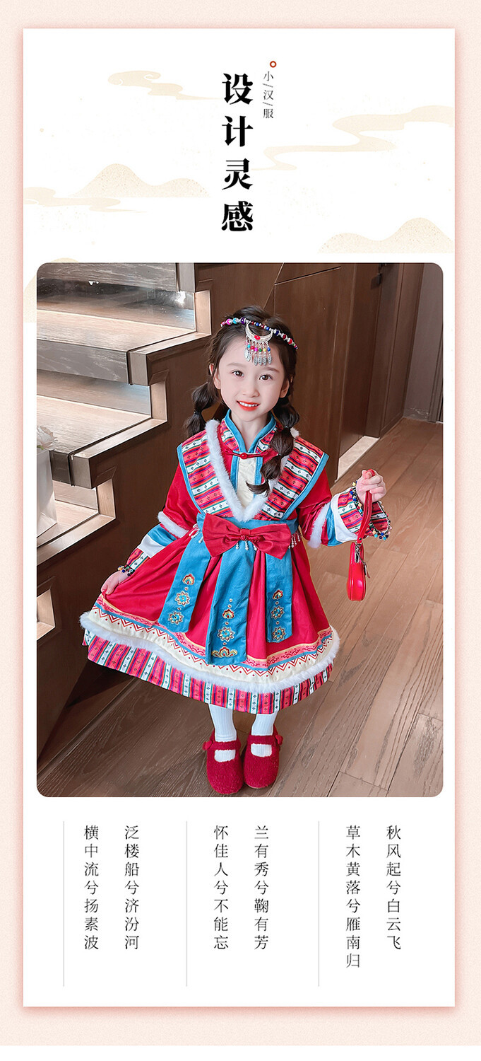 汉服女童拜年服冬装加绒新年儿童中国风唐装喜庆宝宝过年新款套装