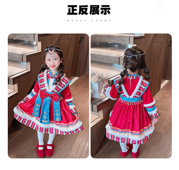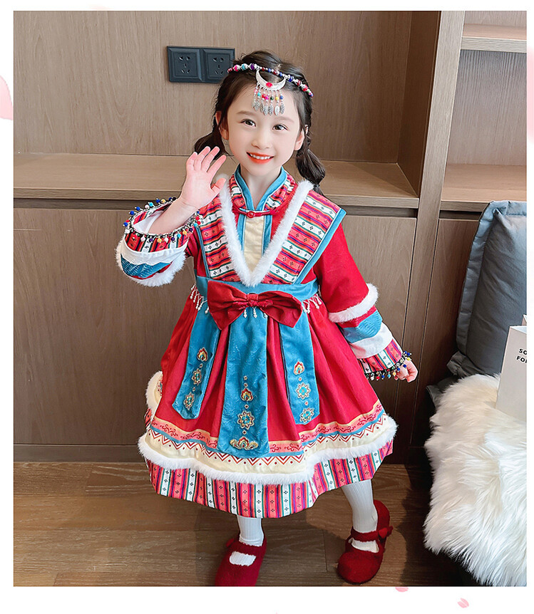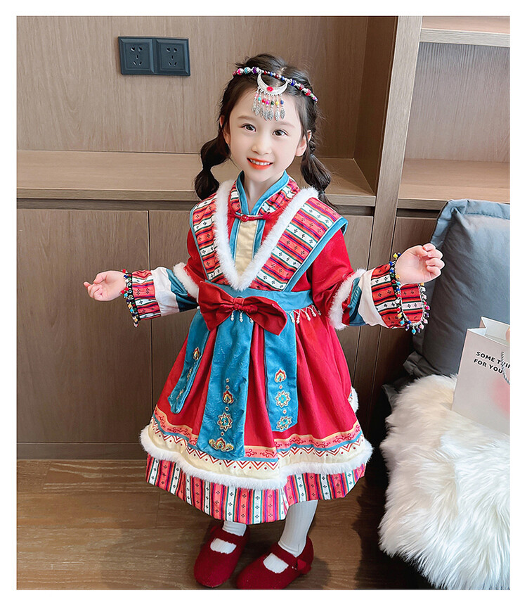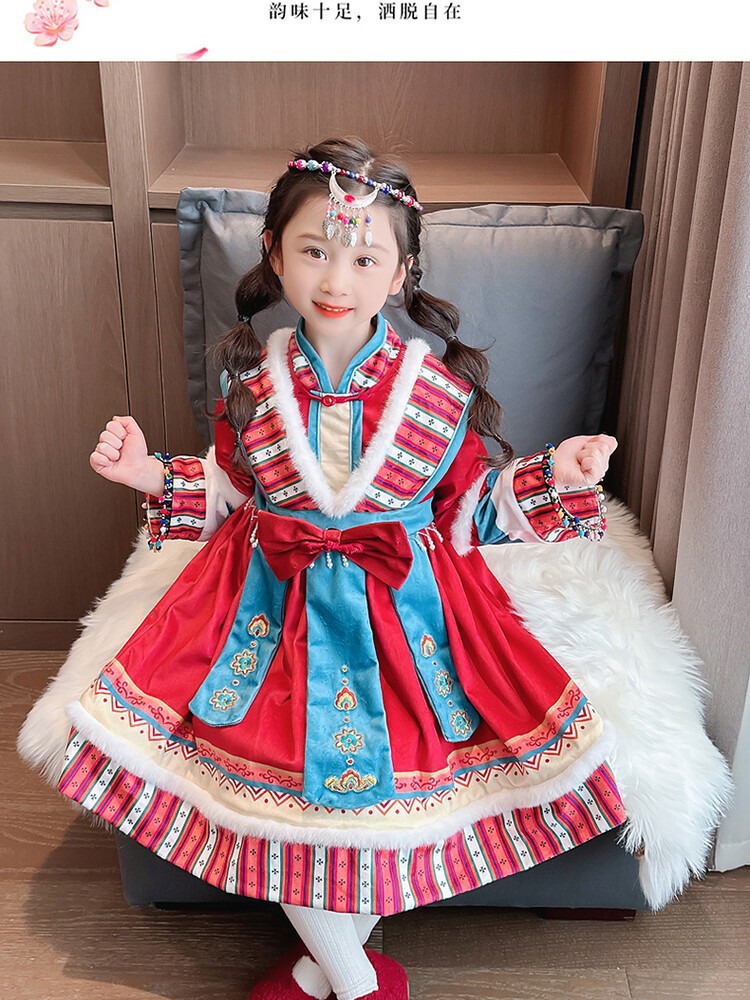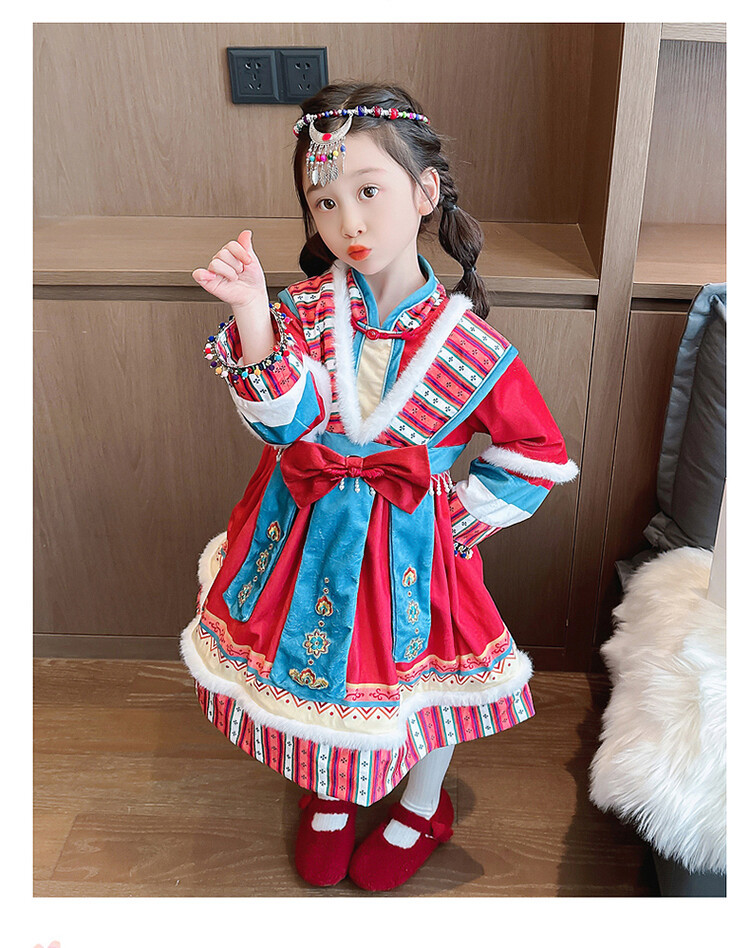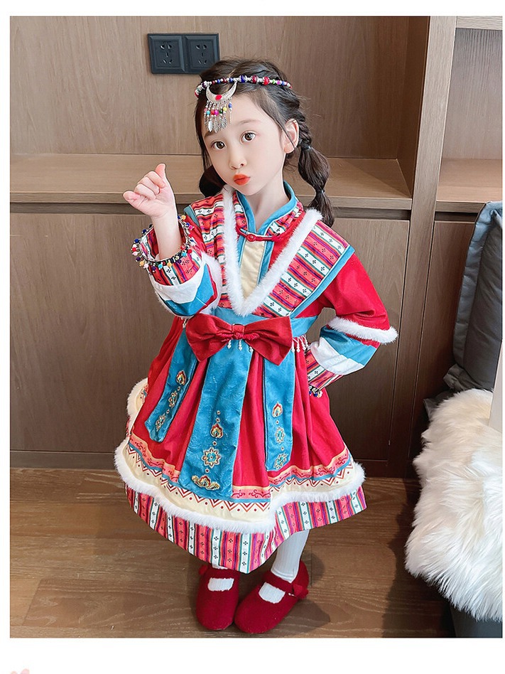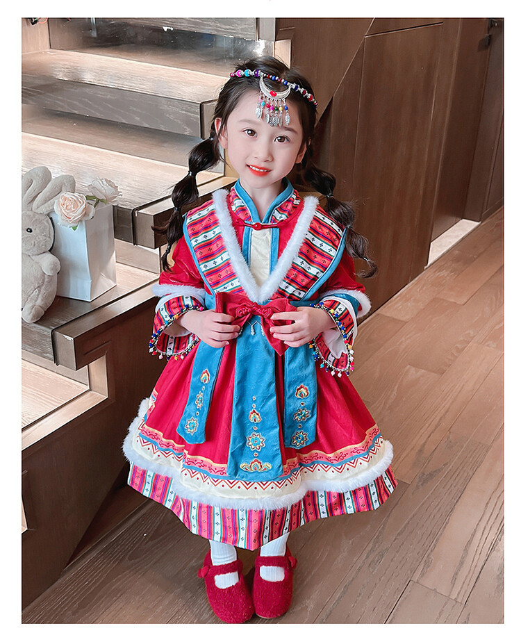 汉服女童拜年服冬装加绒新年儿童中国风唐装喜庆宝宝过年新款套装