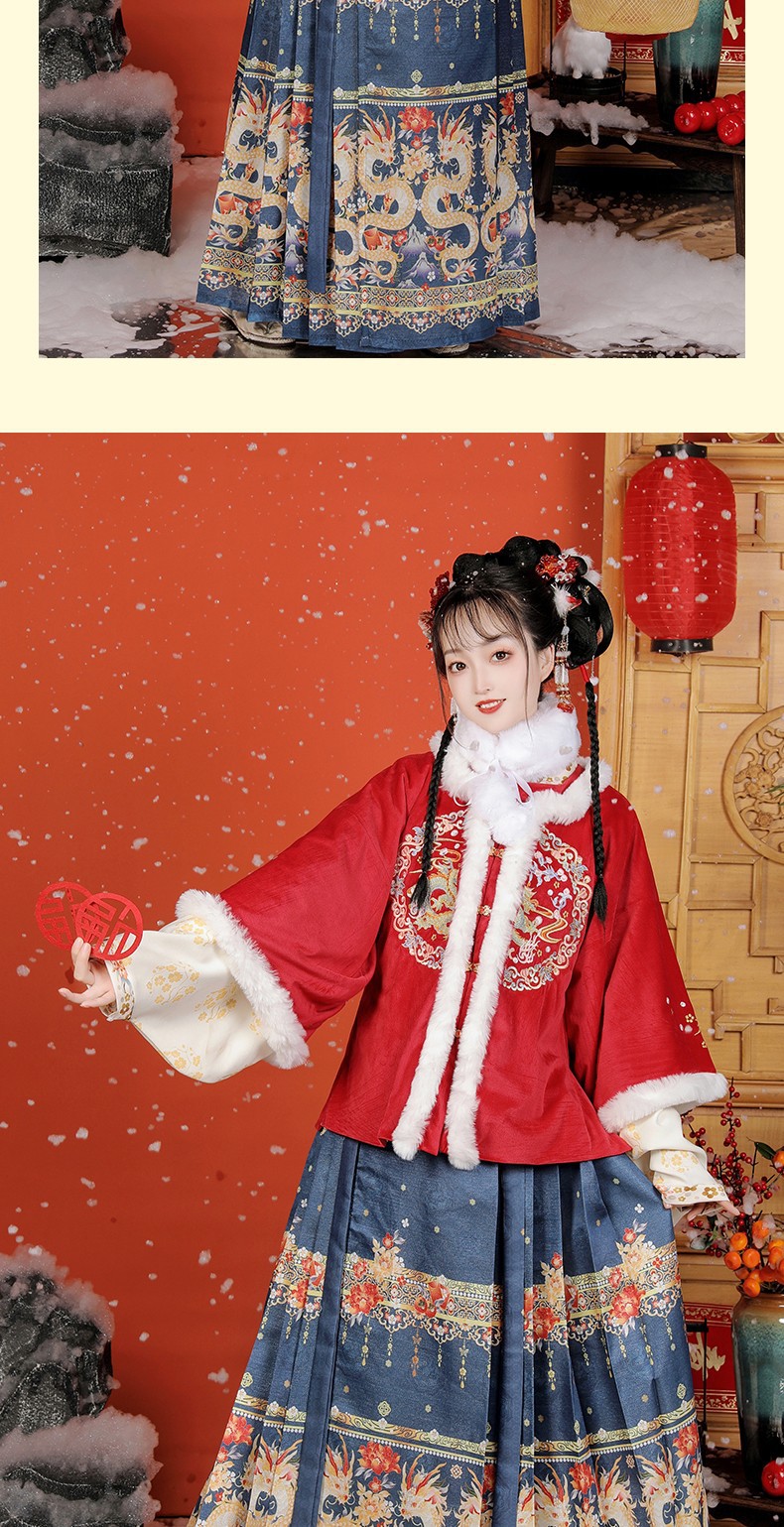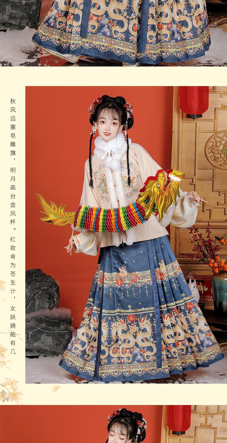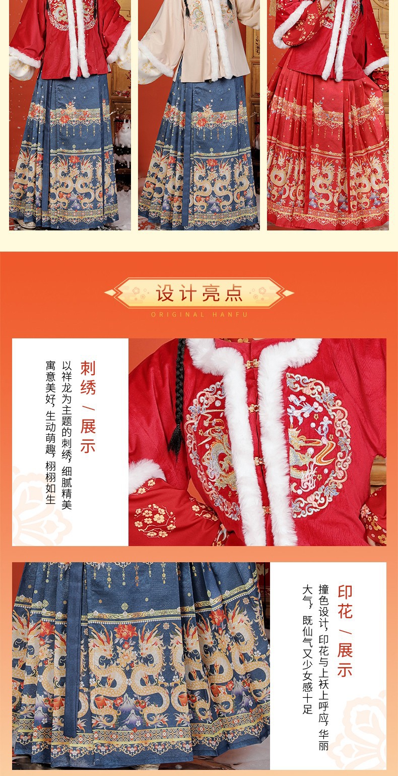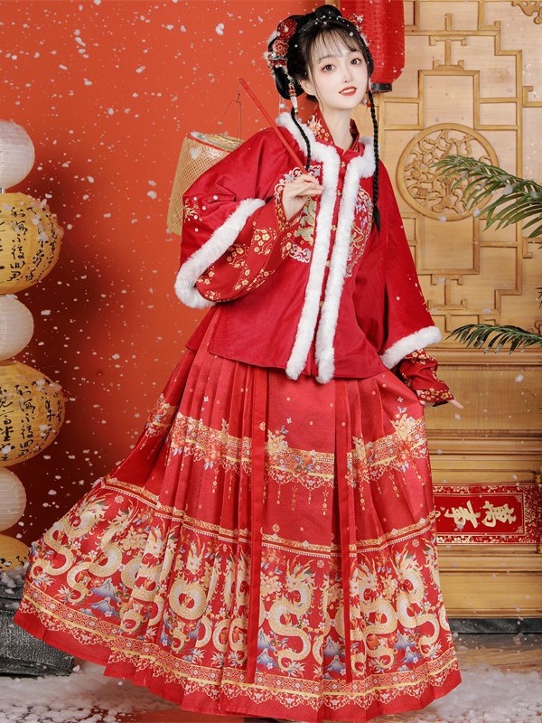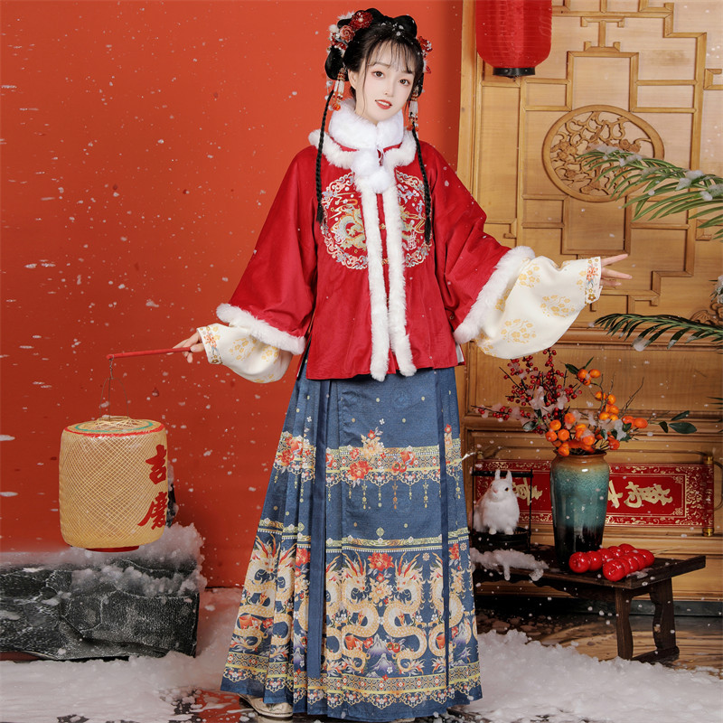原创明制汉服女中国风马面裙加绒龙年新年款拜年古装冬款龙舞新春