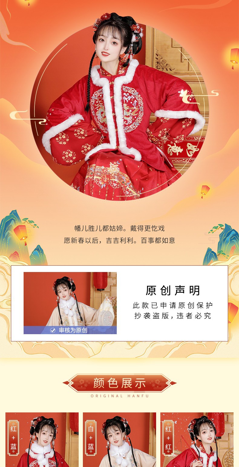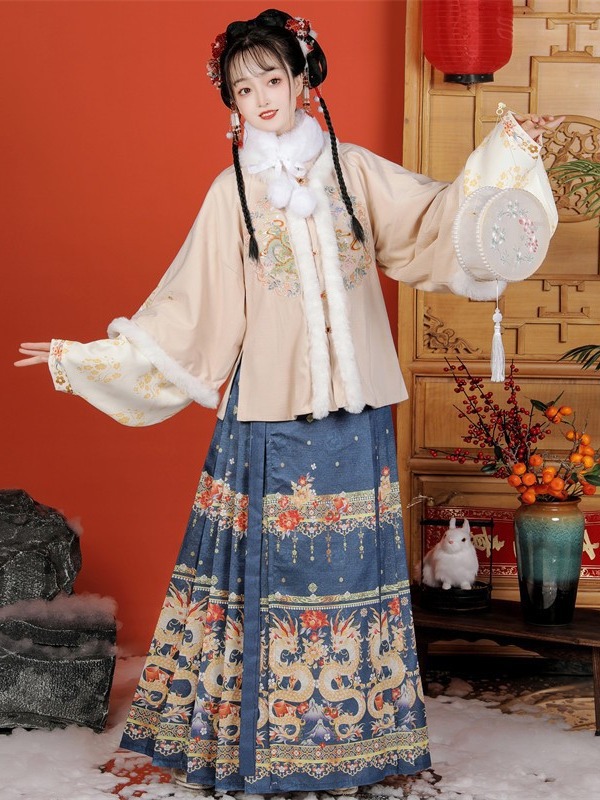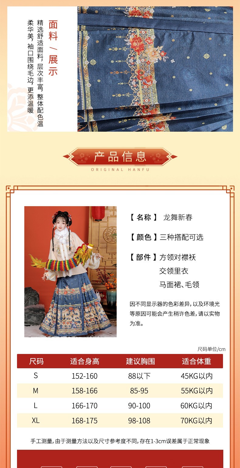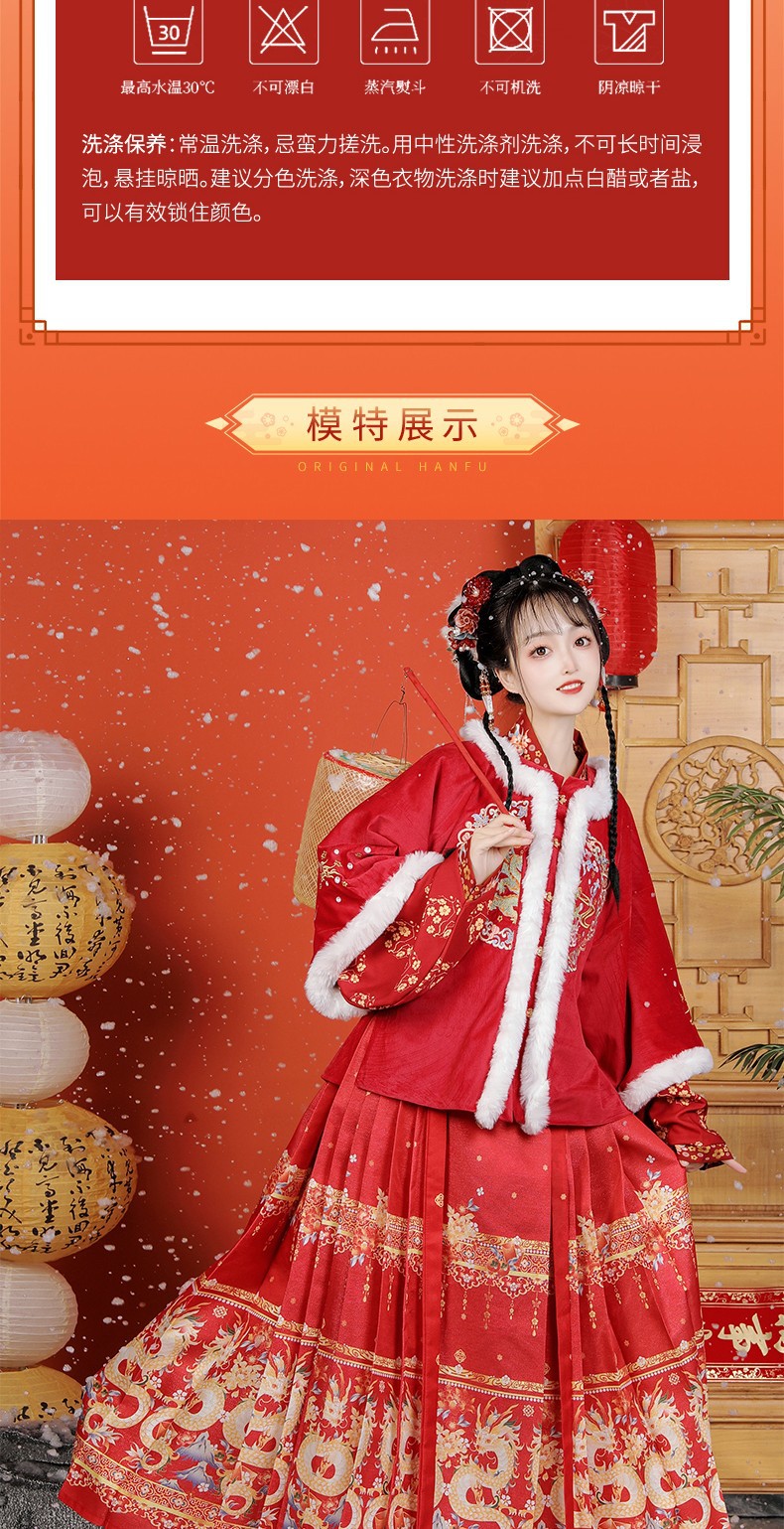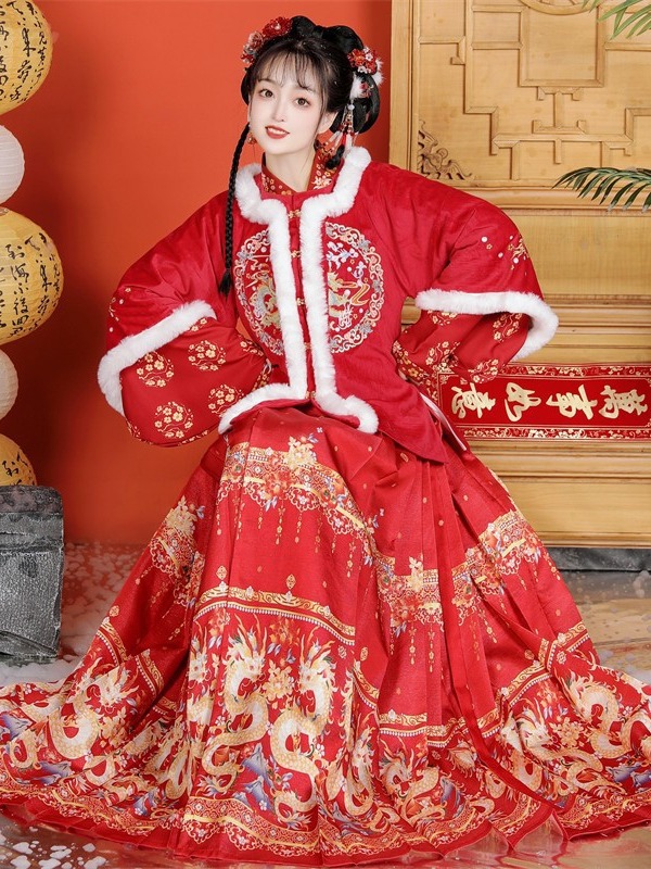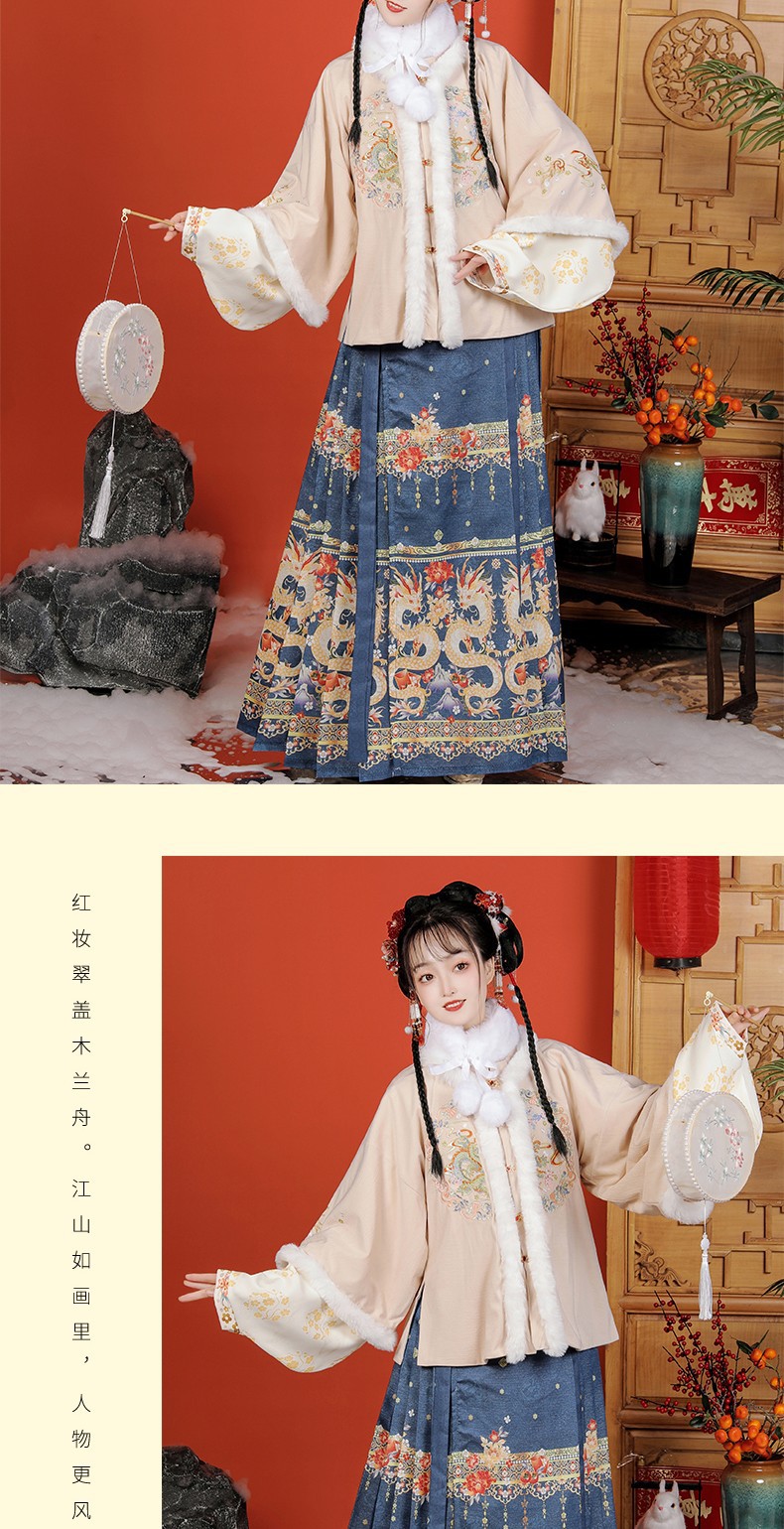 原创明制汉服女中国风马面裙加绒龙年新年款拜年古装冬款龙舞新春