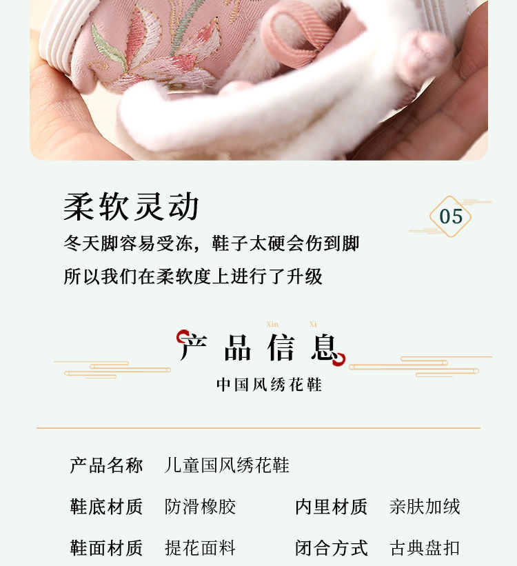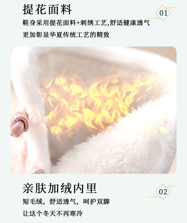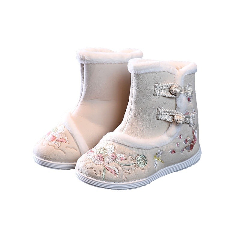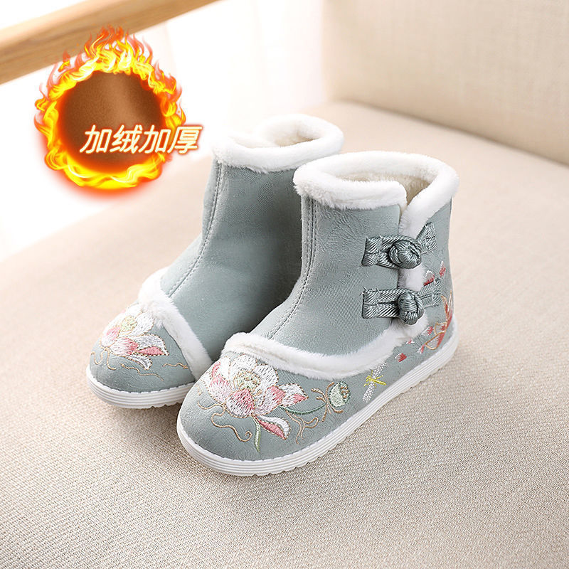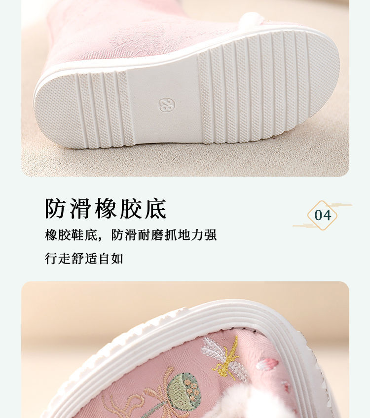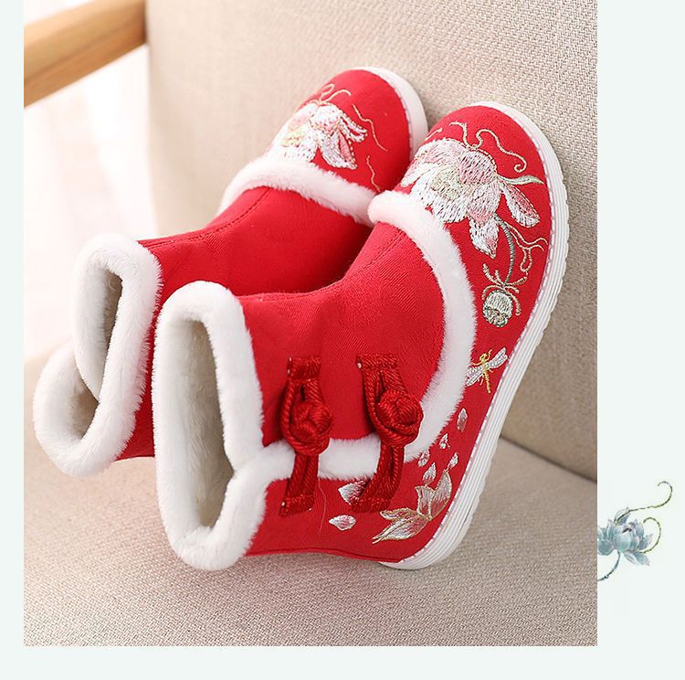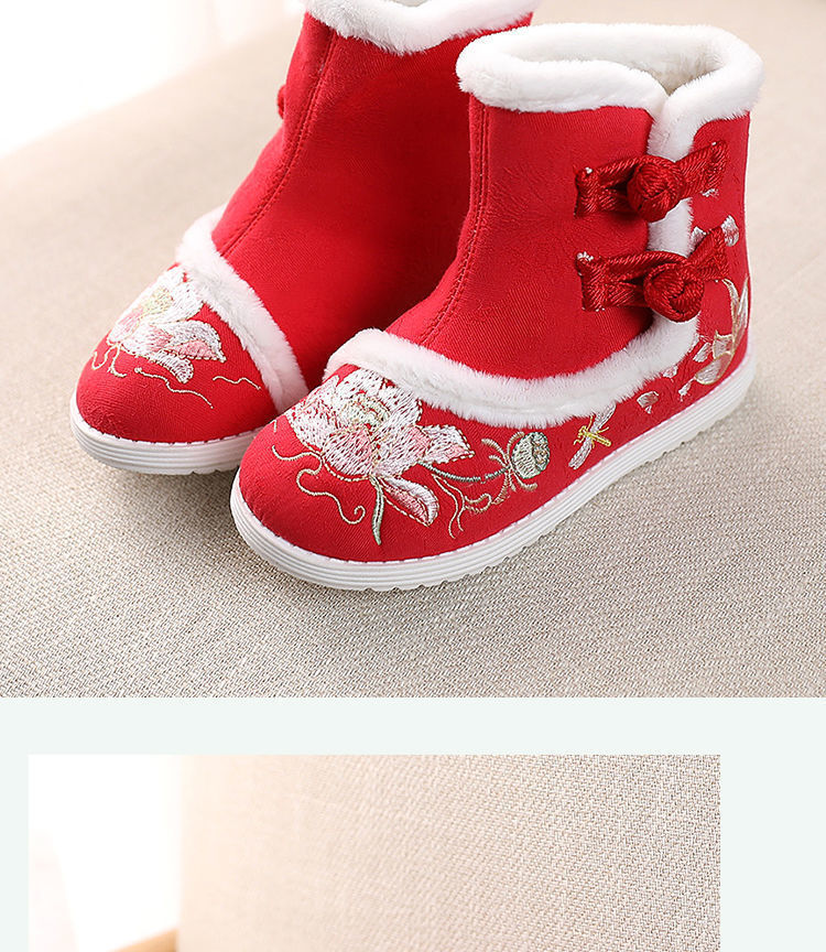 冬季汉服靴子女童加绒古风宝宝拜年鞋古装公主唐装鞋儿童绣花棉鞋
