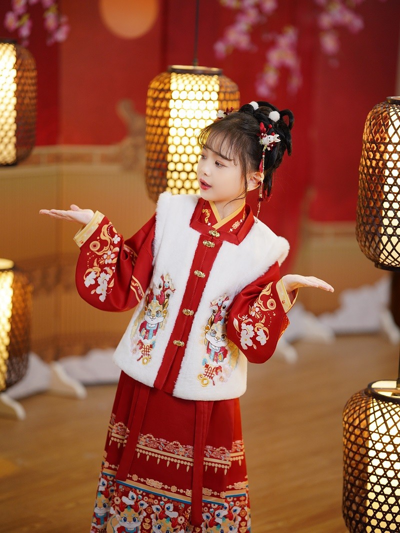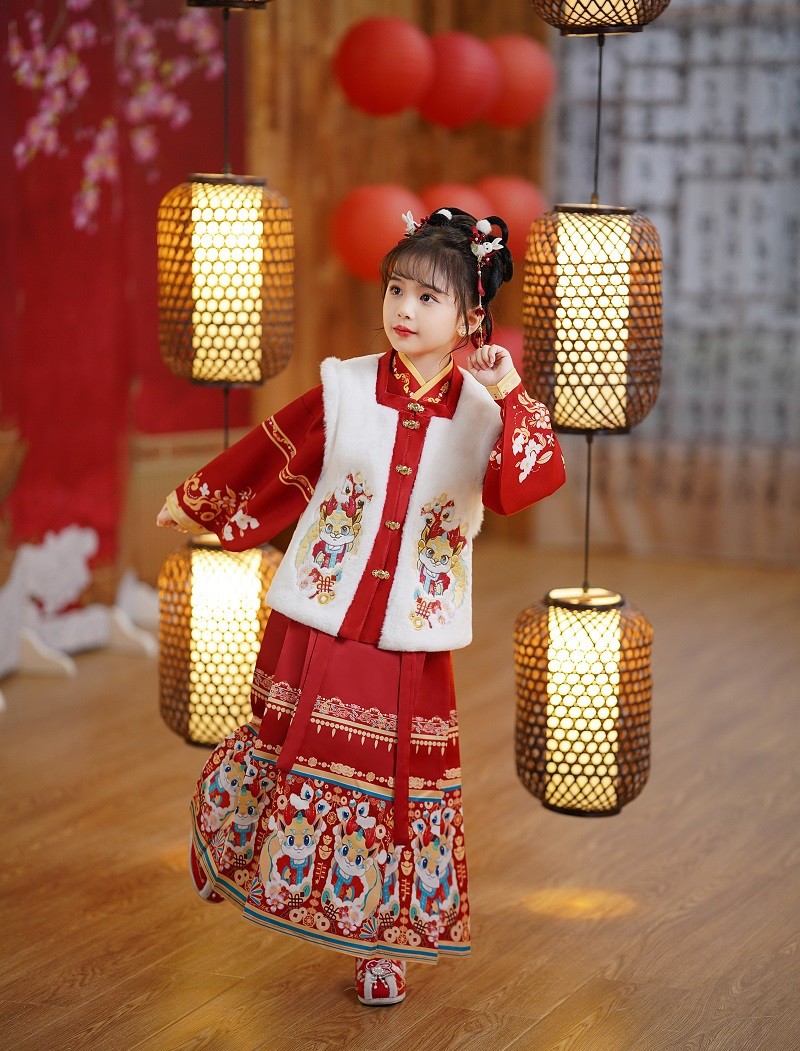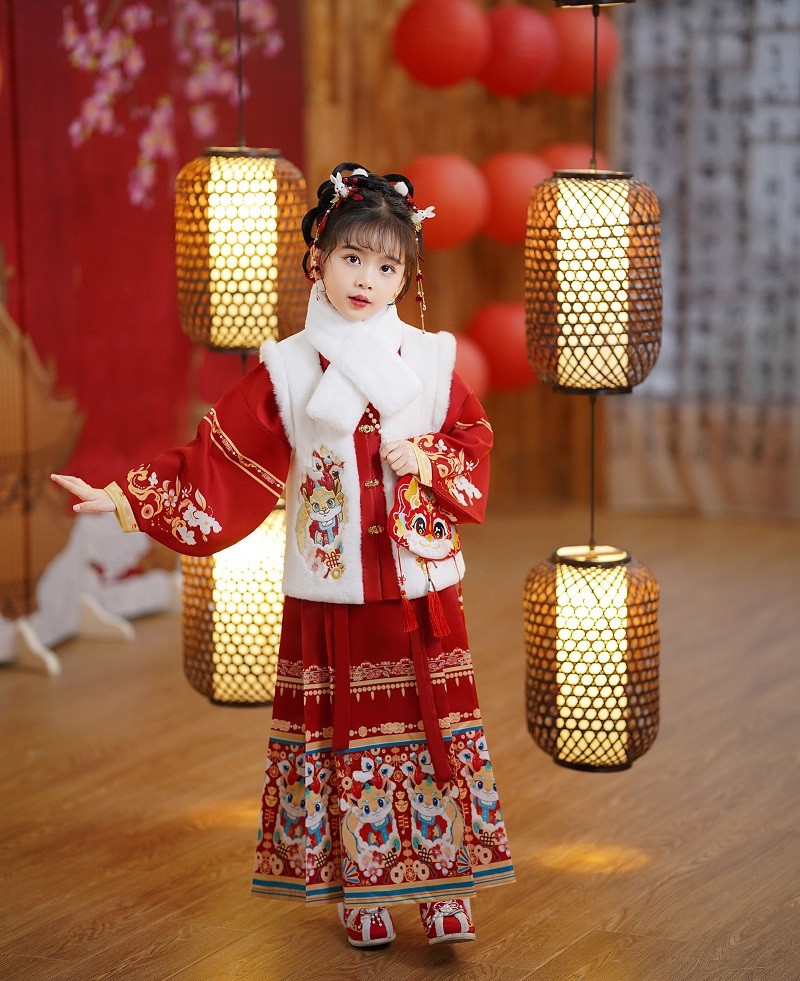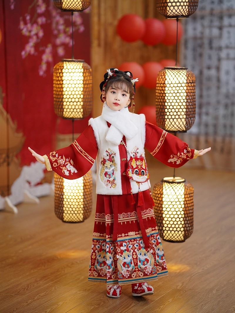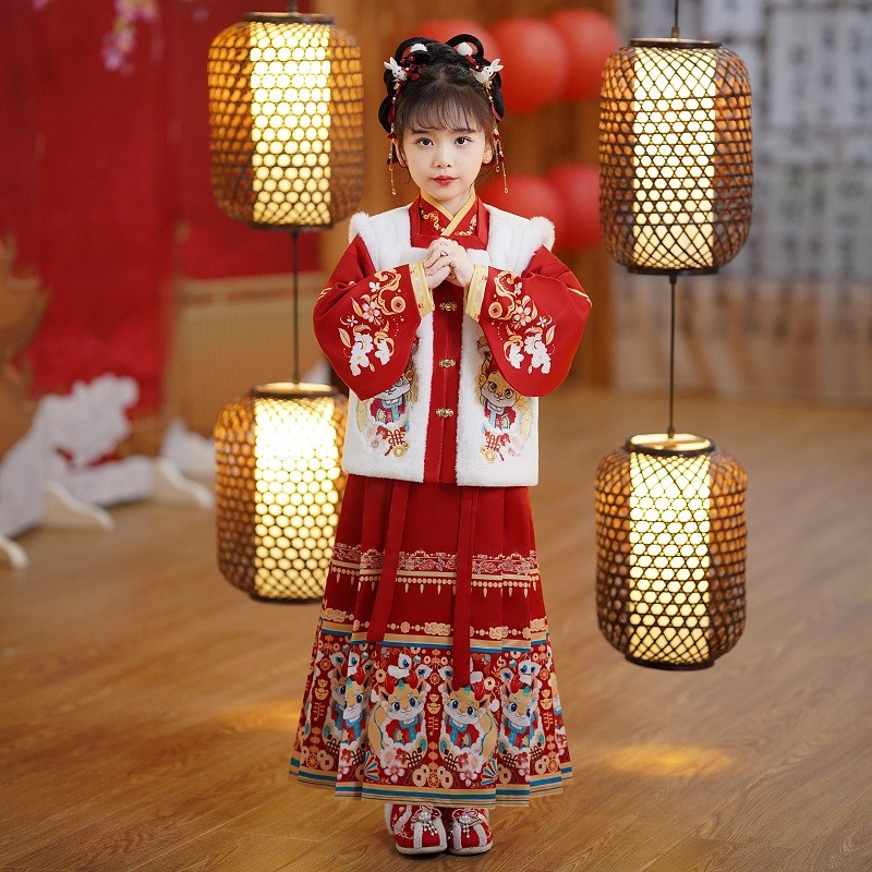 汉服女童明制马面裙套装2024新款冬季儿童古装拜年服加绒加厚唐装