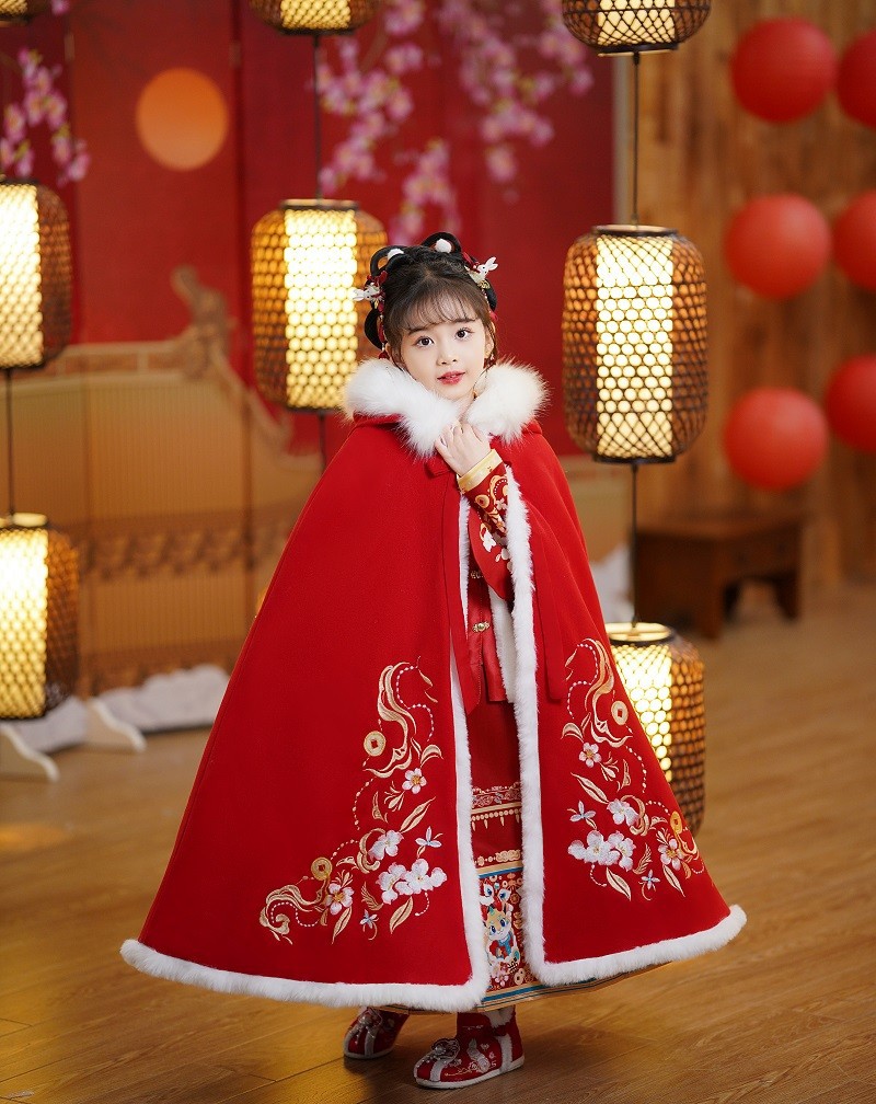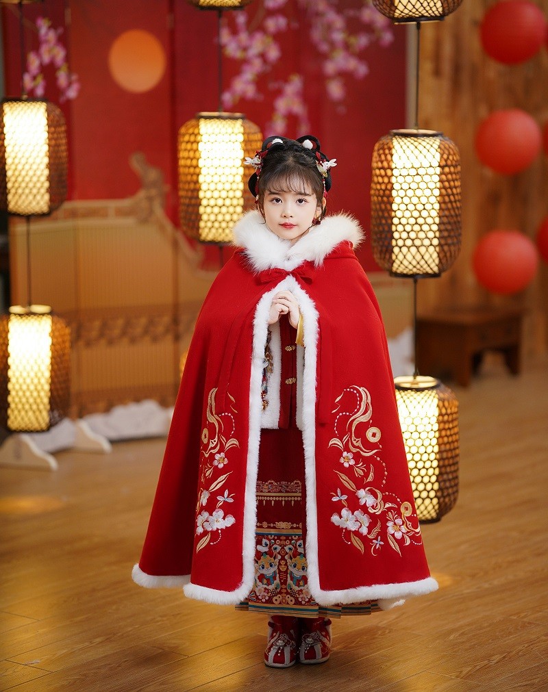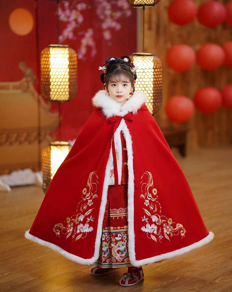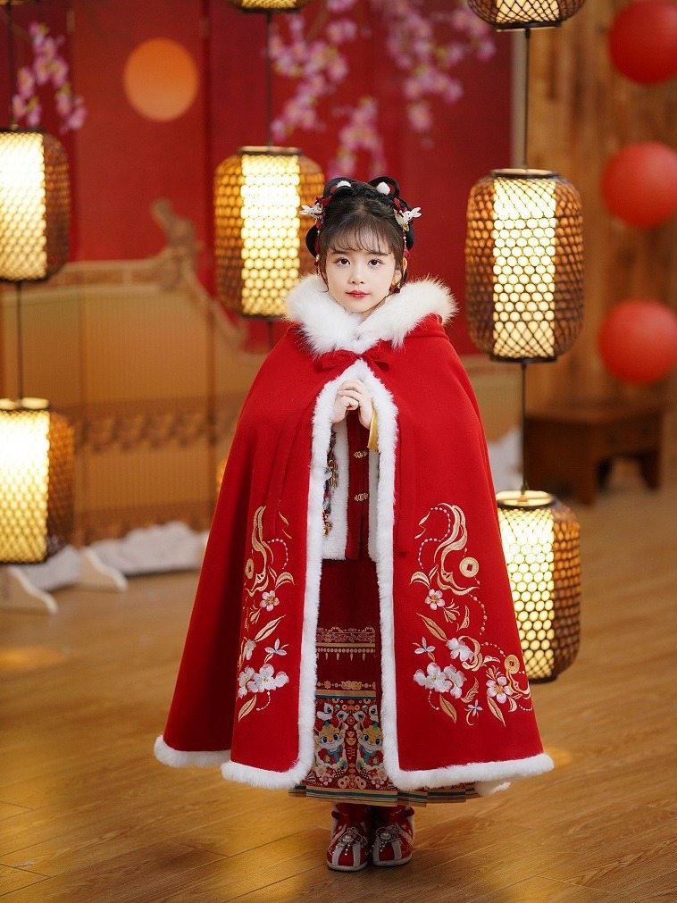 汉服女童明制马面裙套装2024新款冬季儿童古装拜年服加绒加厚唐装