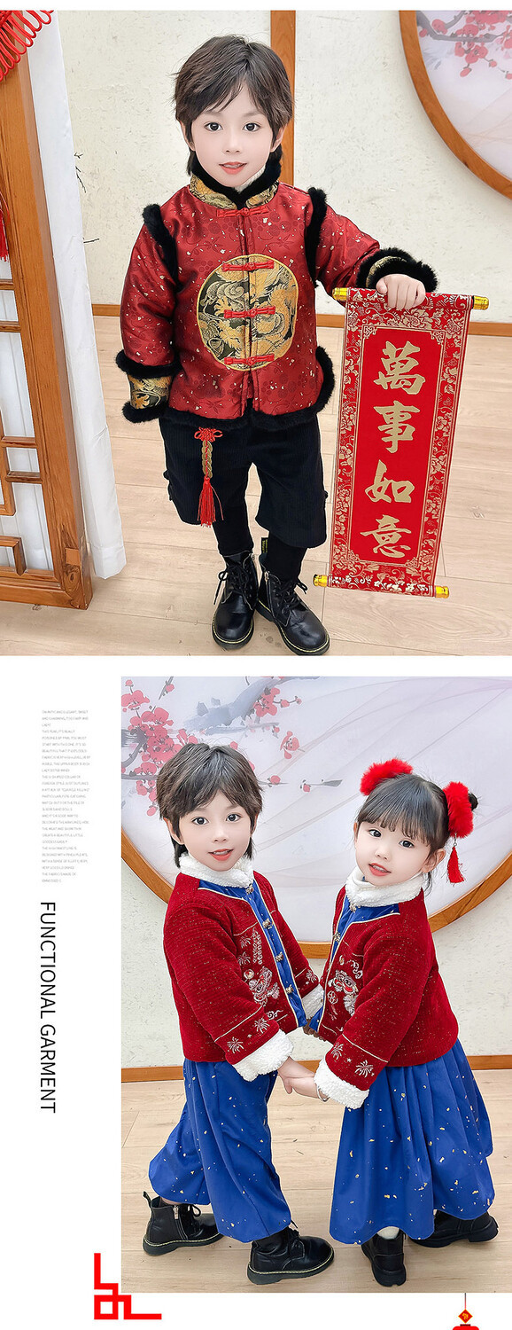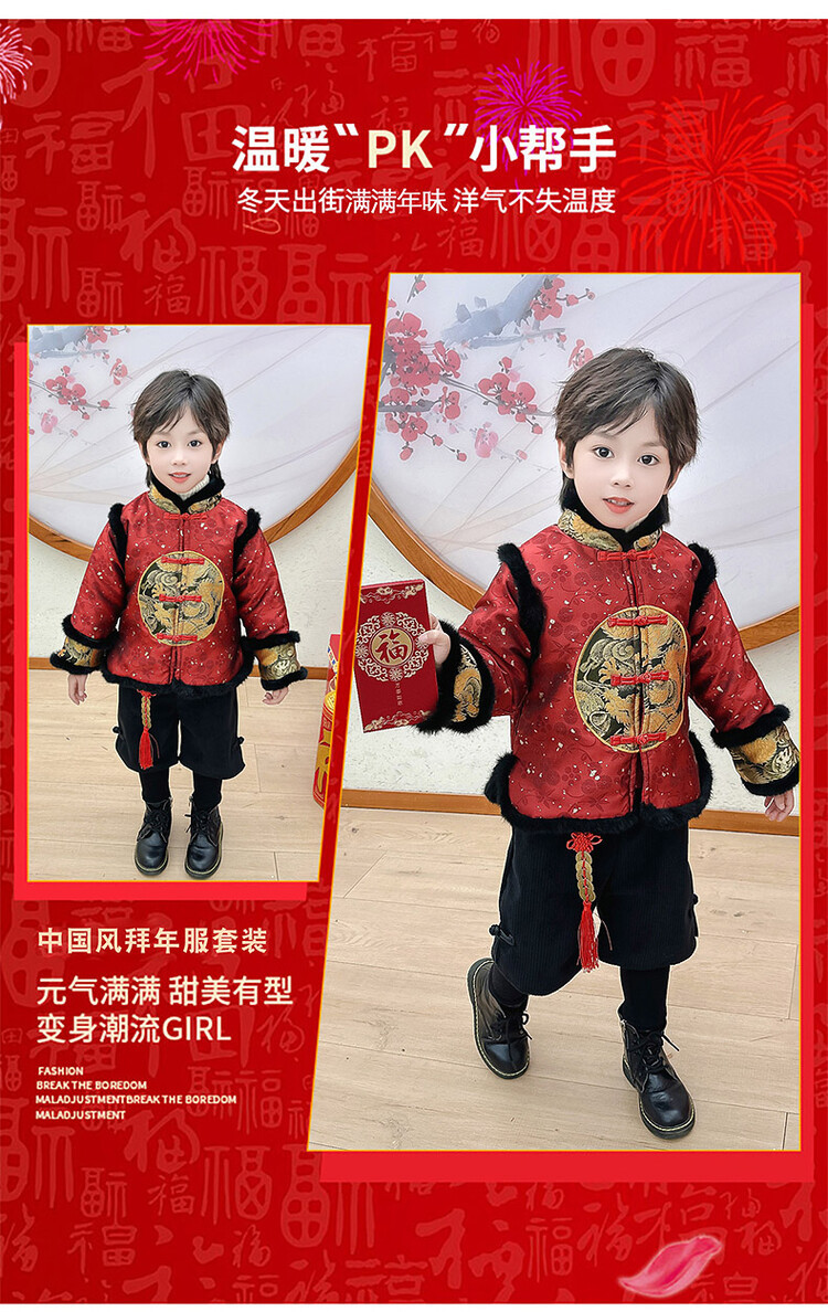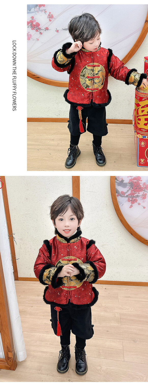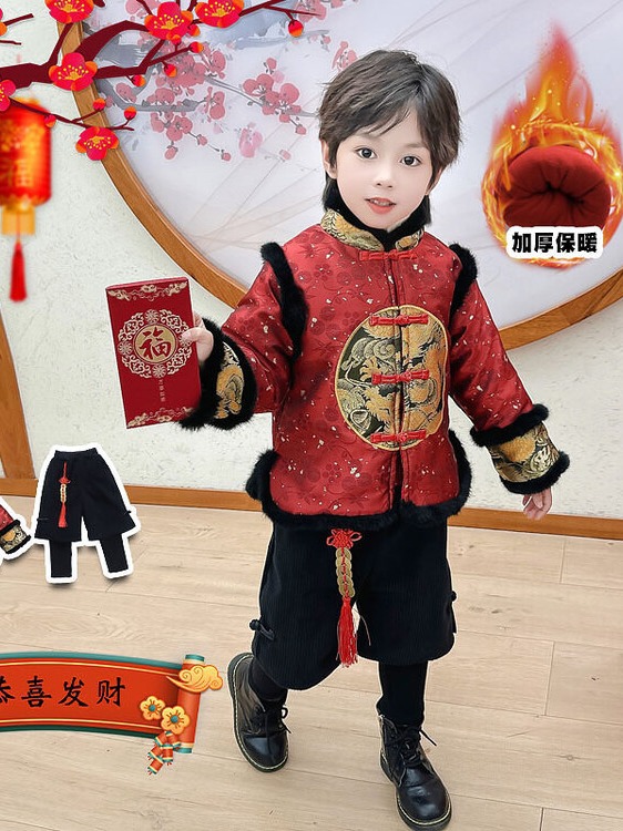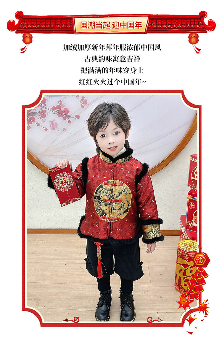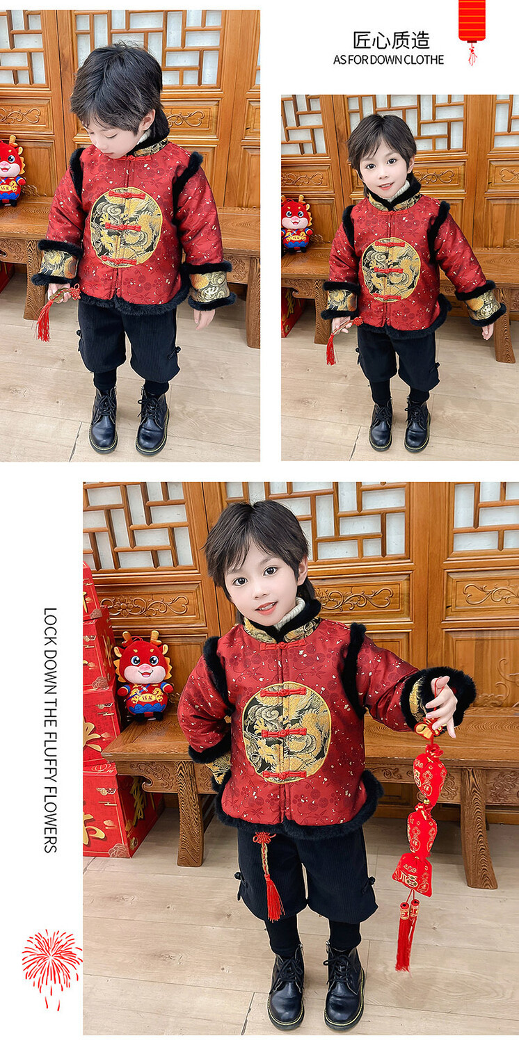 龙年儿童拜年服男童周岁汉服2024冬季宝宝国风新年过年服加厚唐装