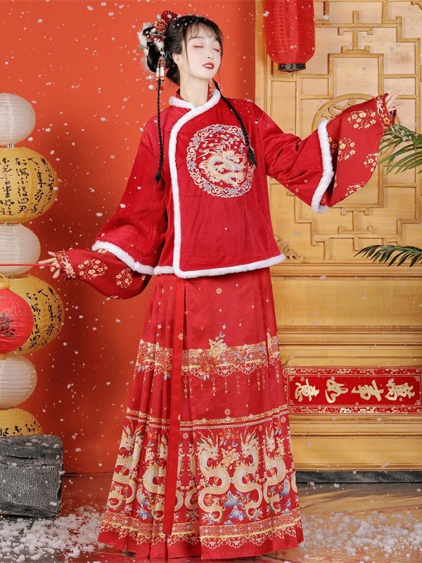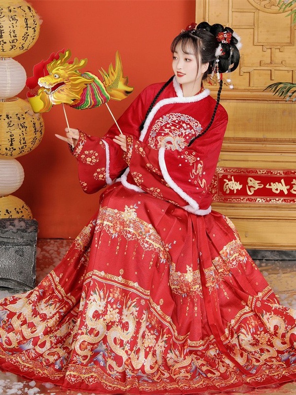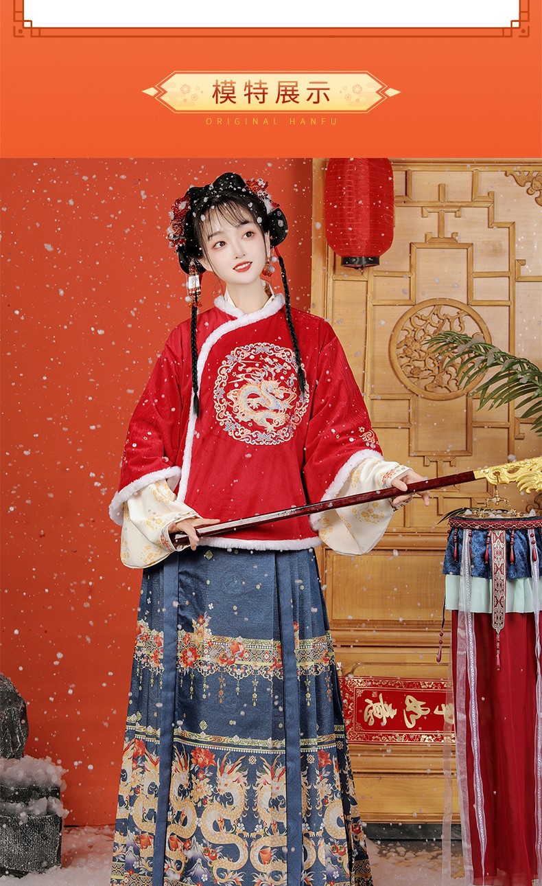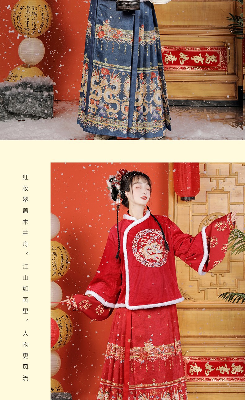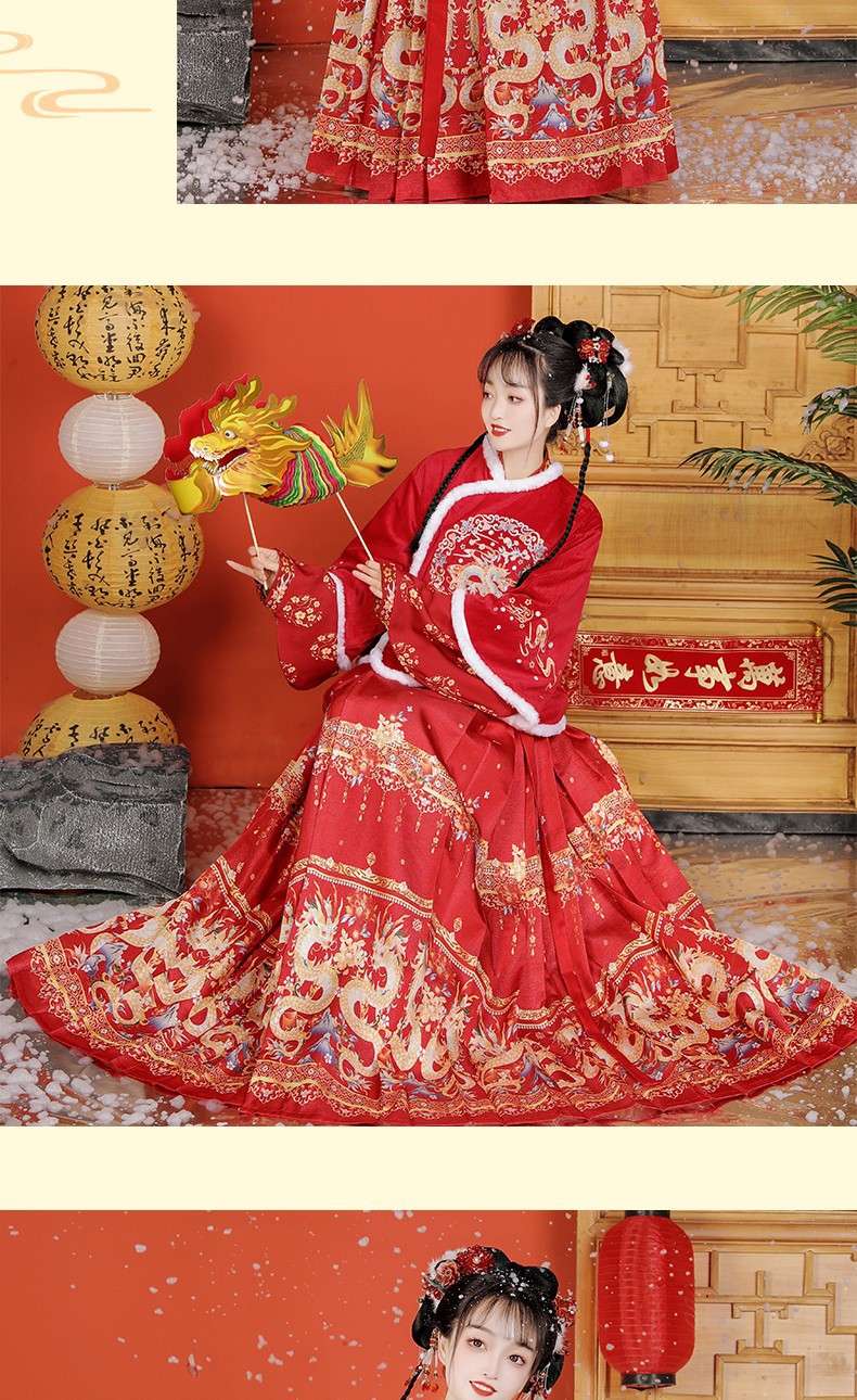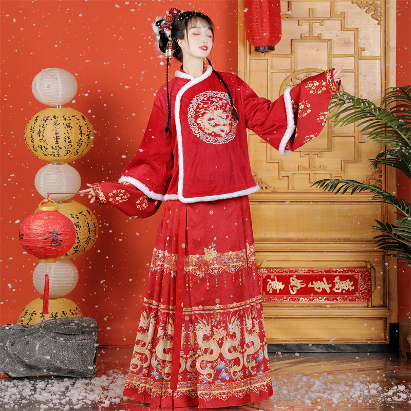 汉服女原创明制新年红色交领加厚中国风拜年服古装日常马面裙冬季