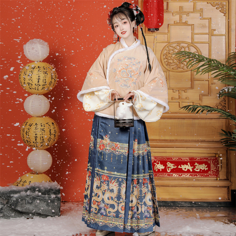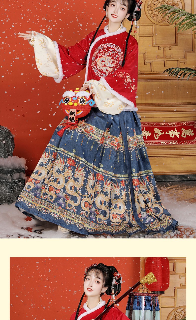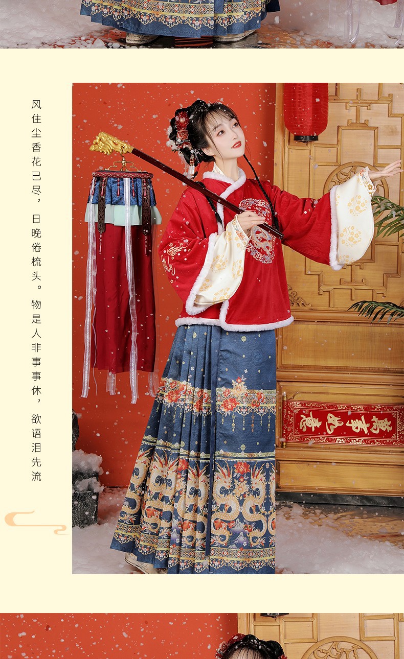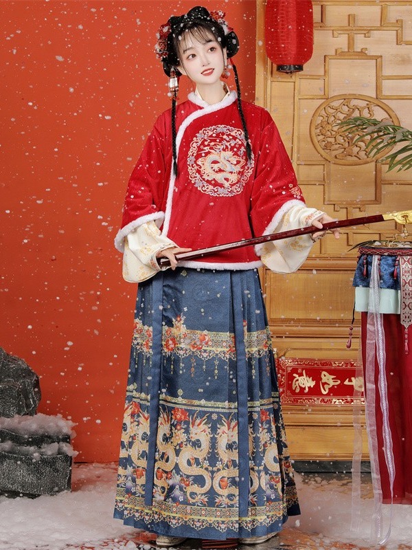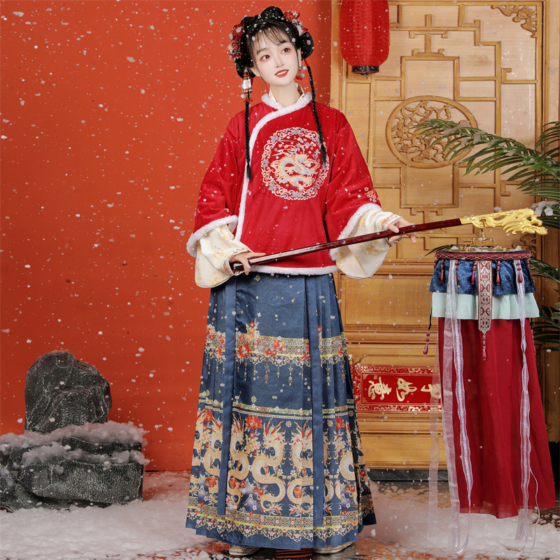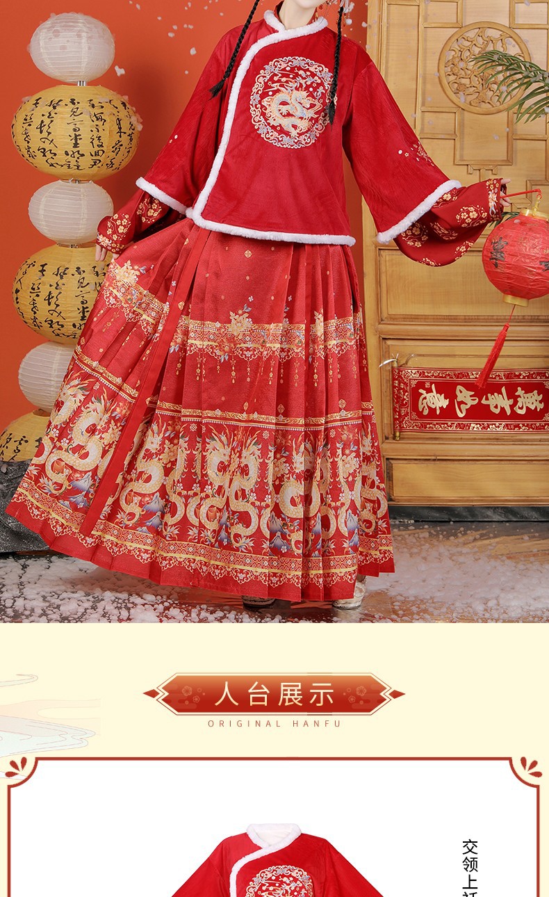 汉服女原创明制新年红色交领加厚中国风拜年服古装日常马面裙冬季