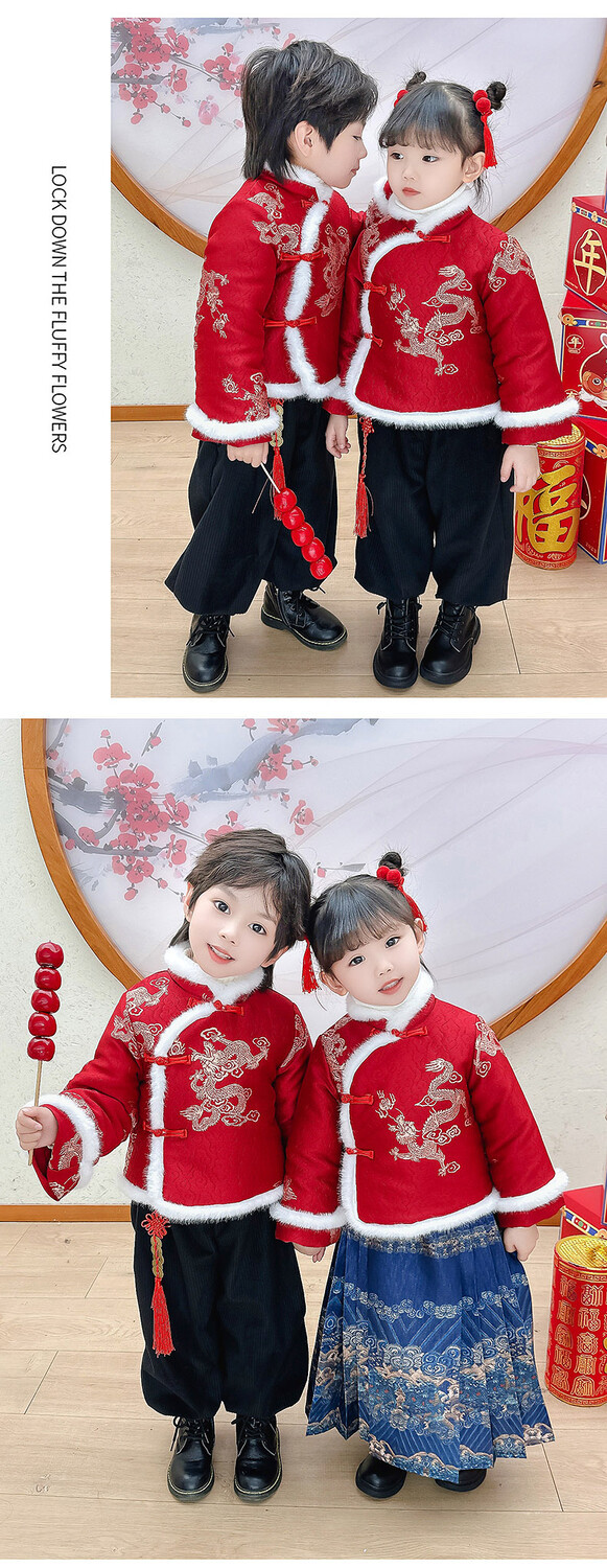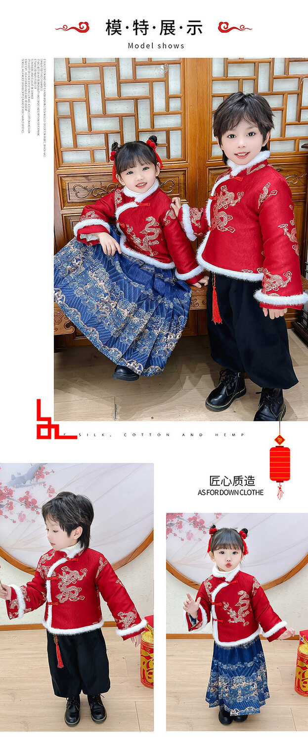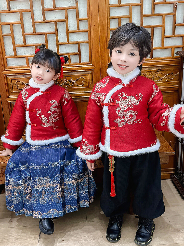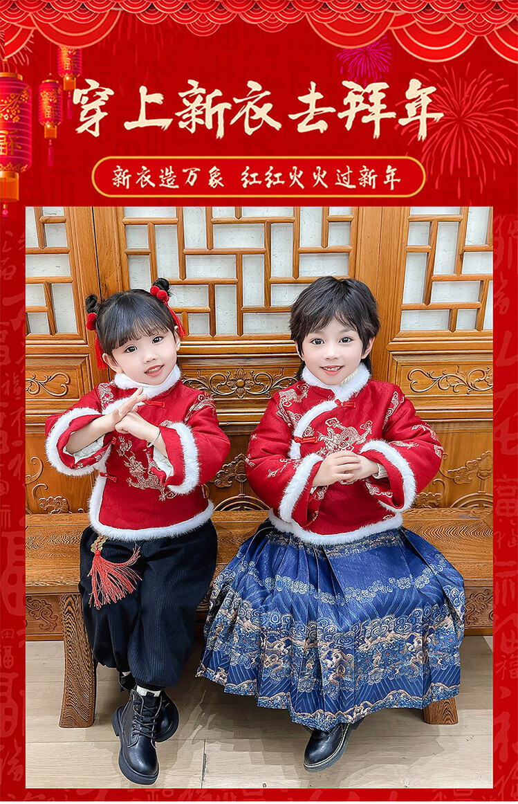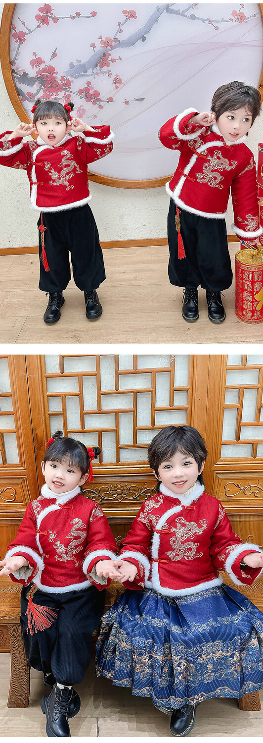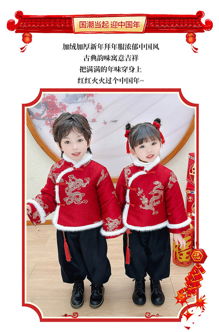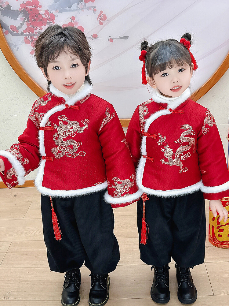 儿童拜年服女童汉服男童中国风唐装元旦演出服宝宝过新年喜庆衣服