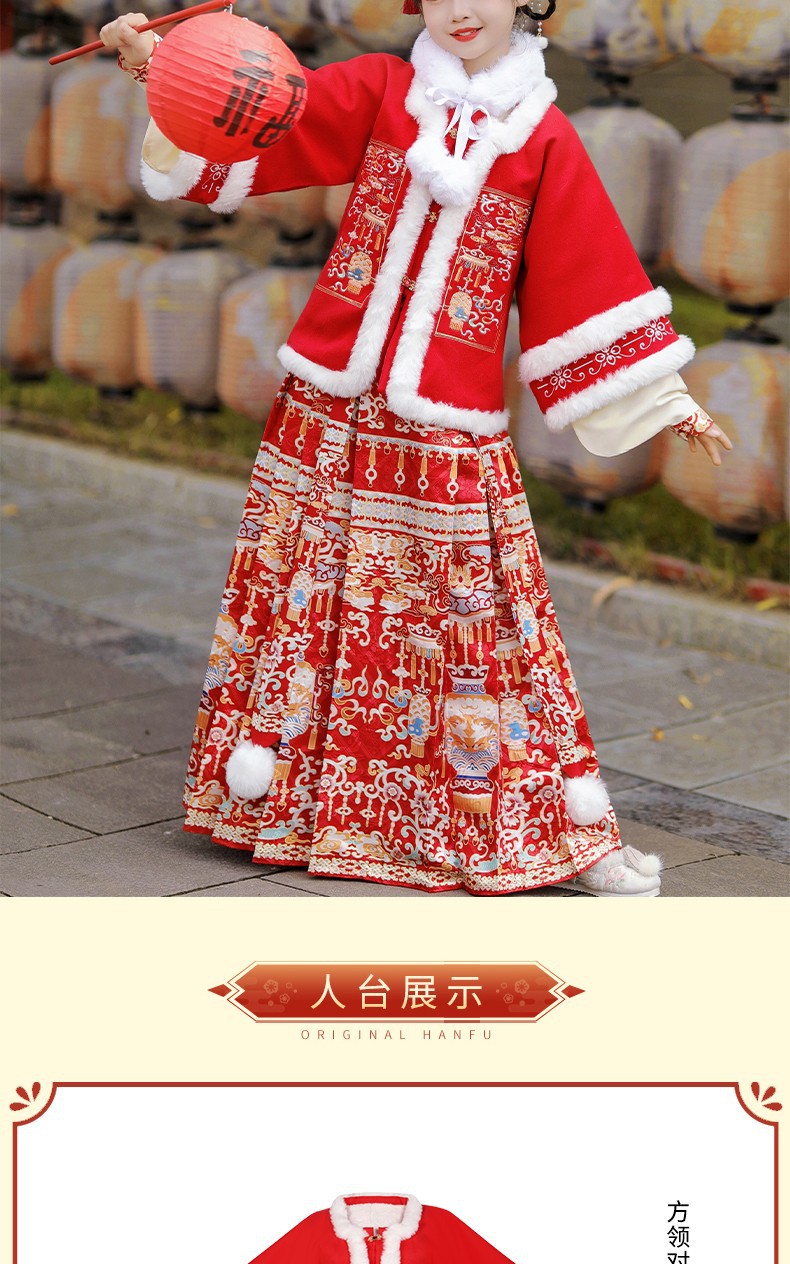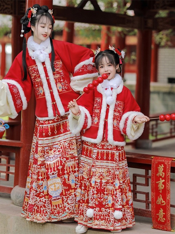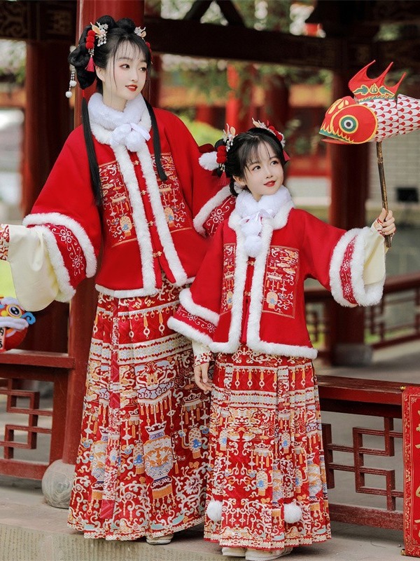 岁朝春明制汉服女龙年新款原创冬季儿童拜年服马面裙亲子款古装