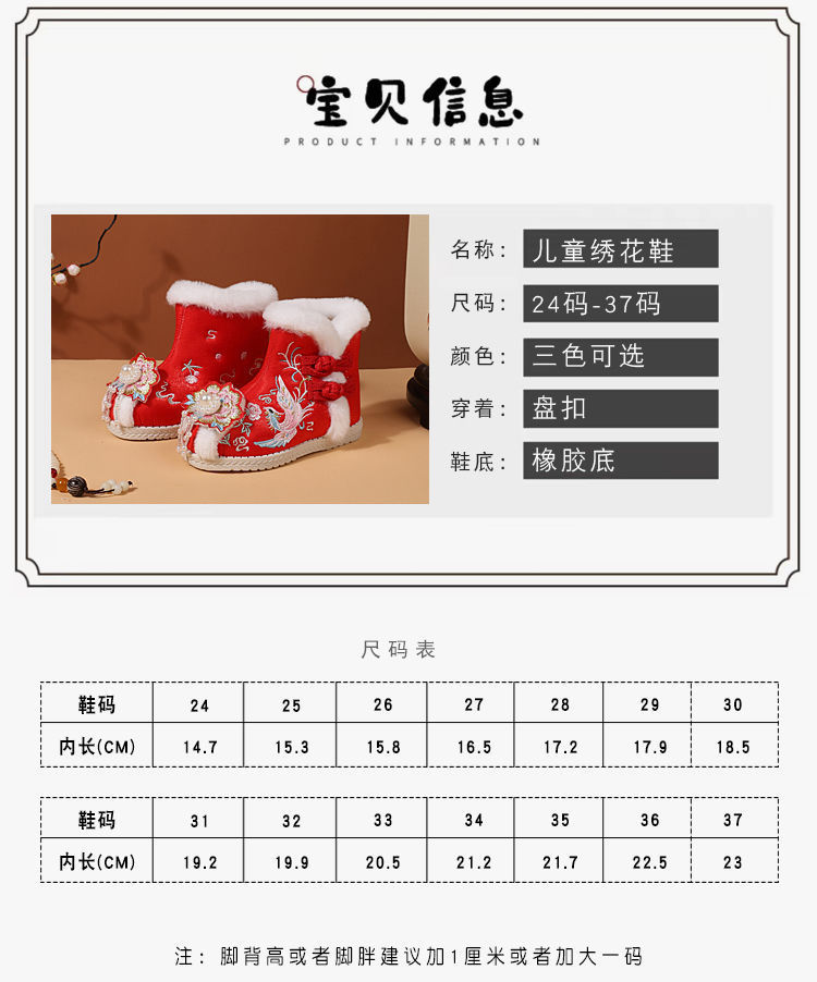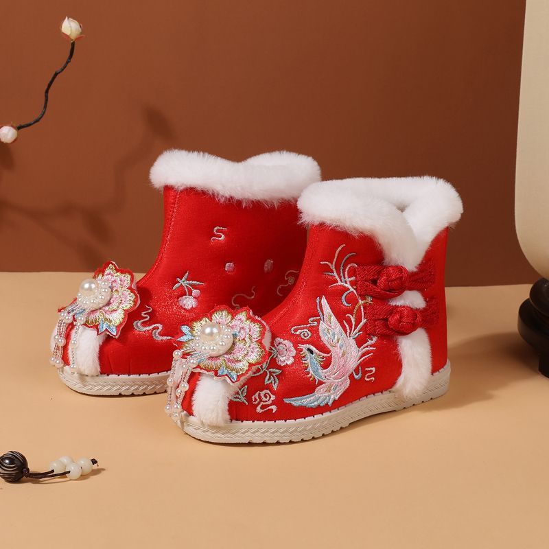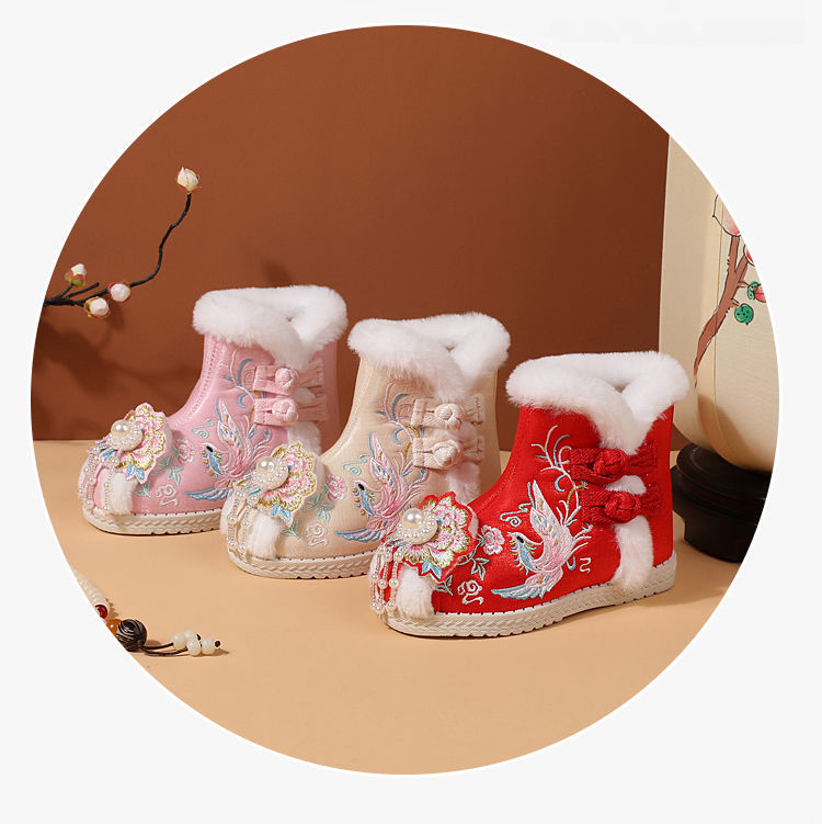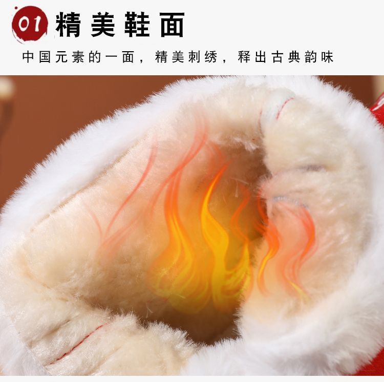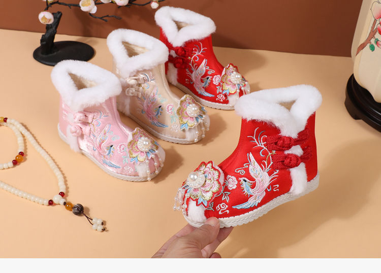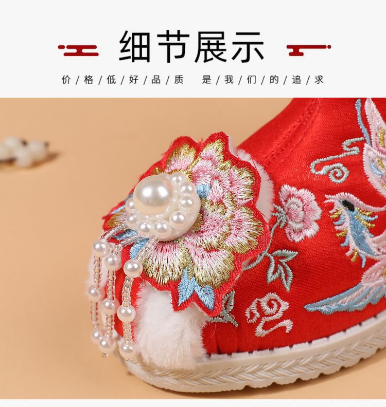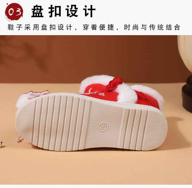 冬款布鞋儿童汉服鞋加绒棉鞋民族风女童绣花鞋古风拜年鞋宝宝短靴