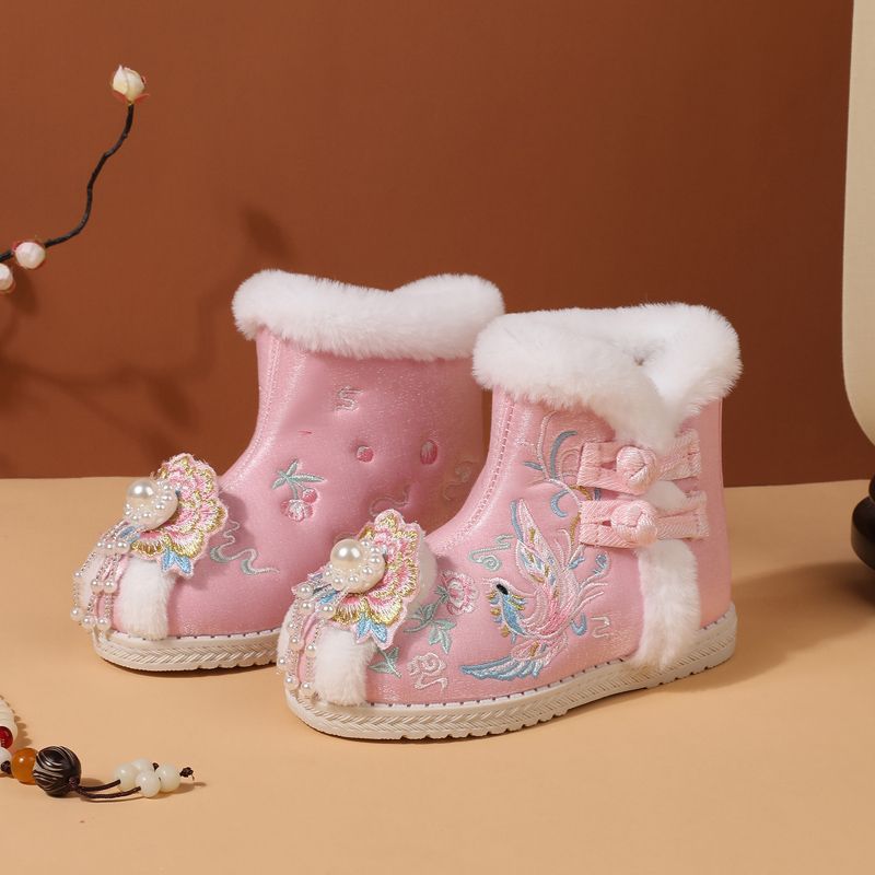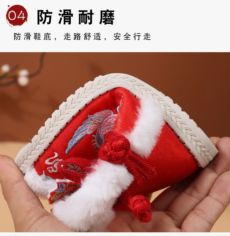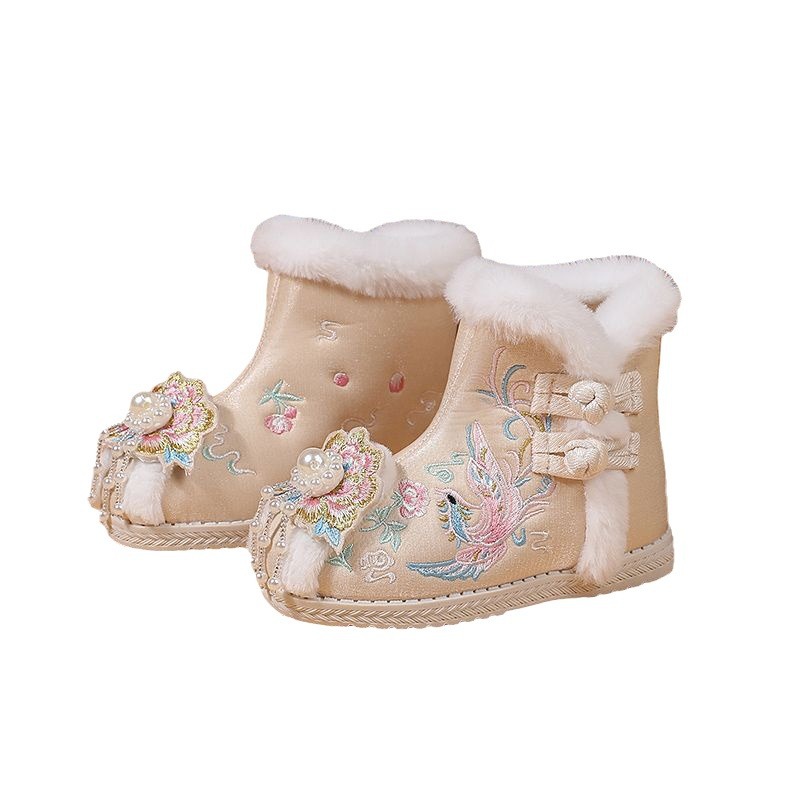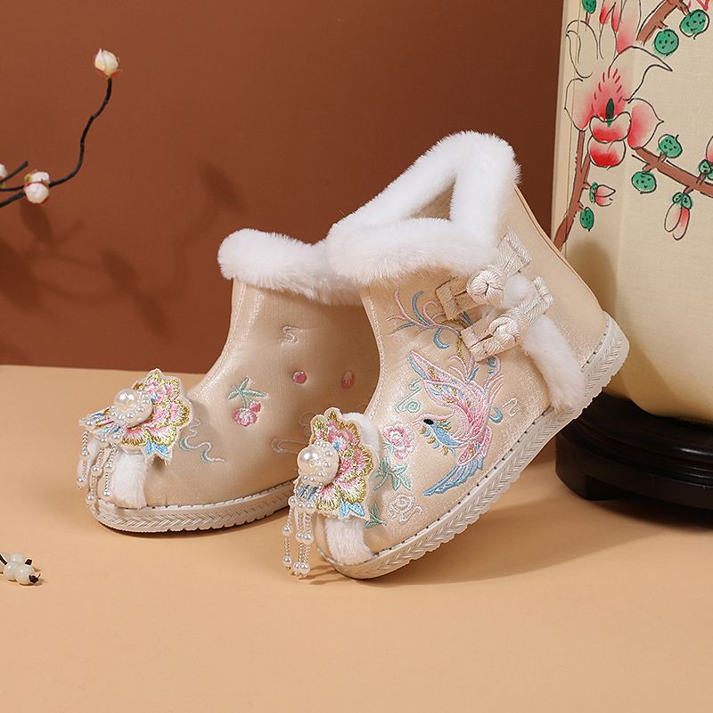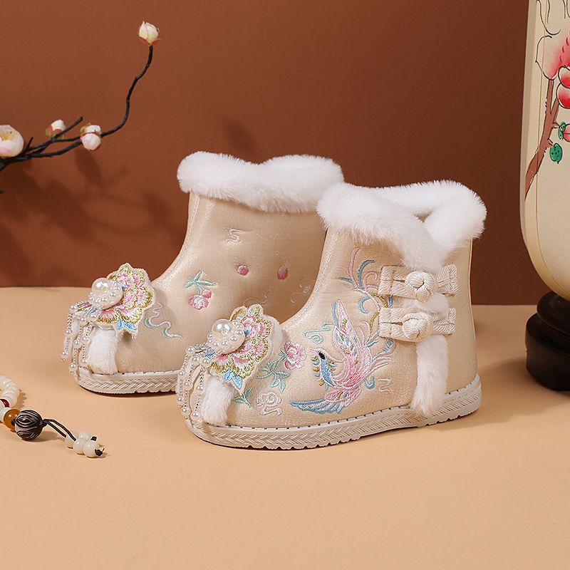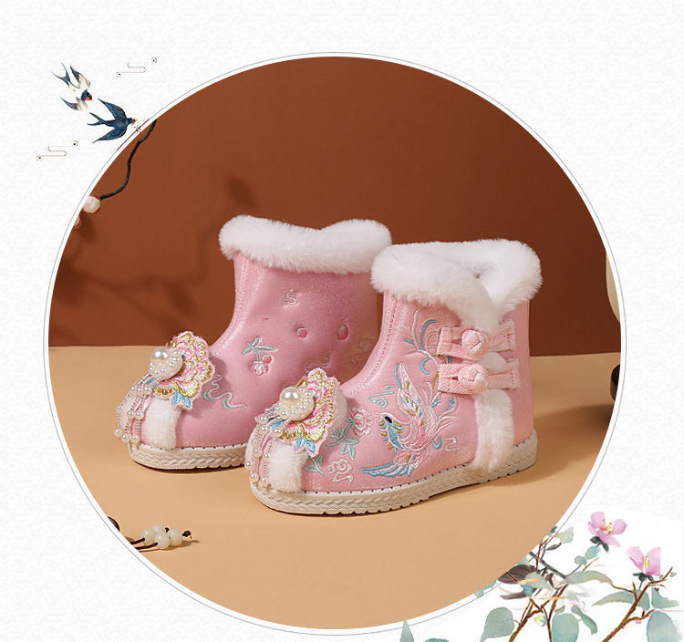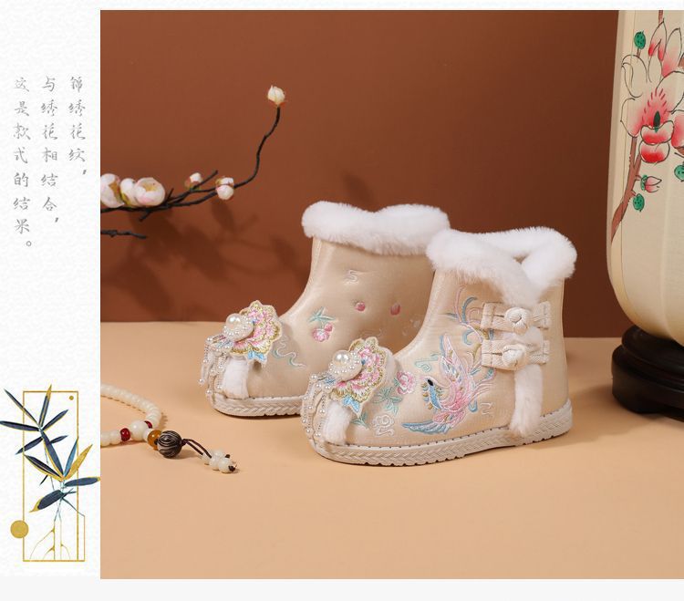 冬款布鞋儿童汉服鞋加绒棉鞋民族风女童绣花鞋古风拜年鞋宝宝短靴