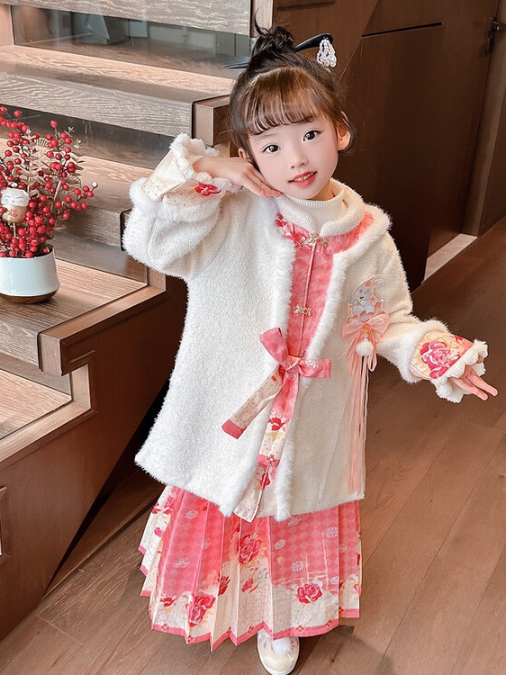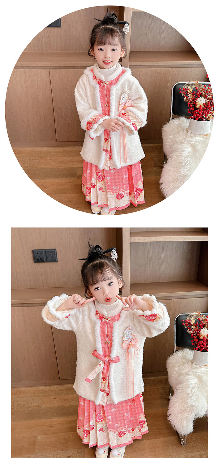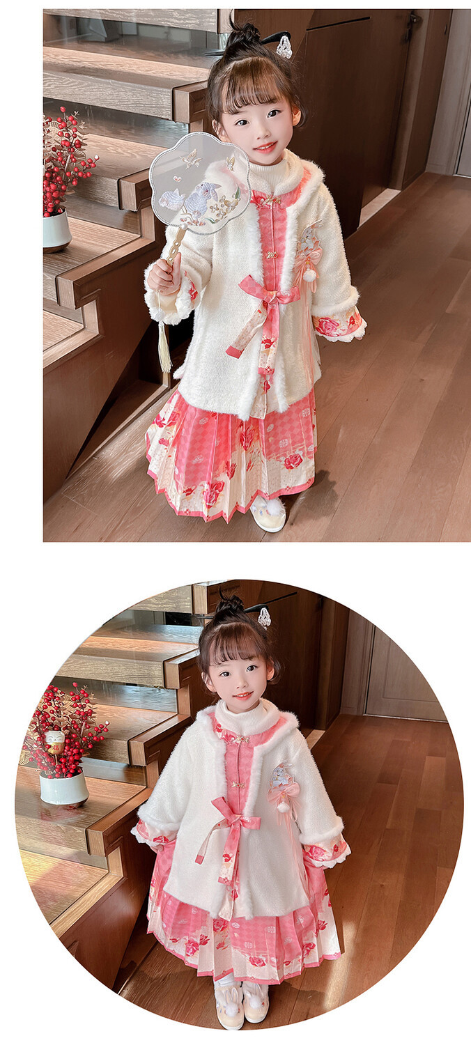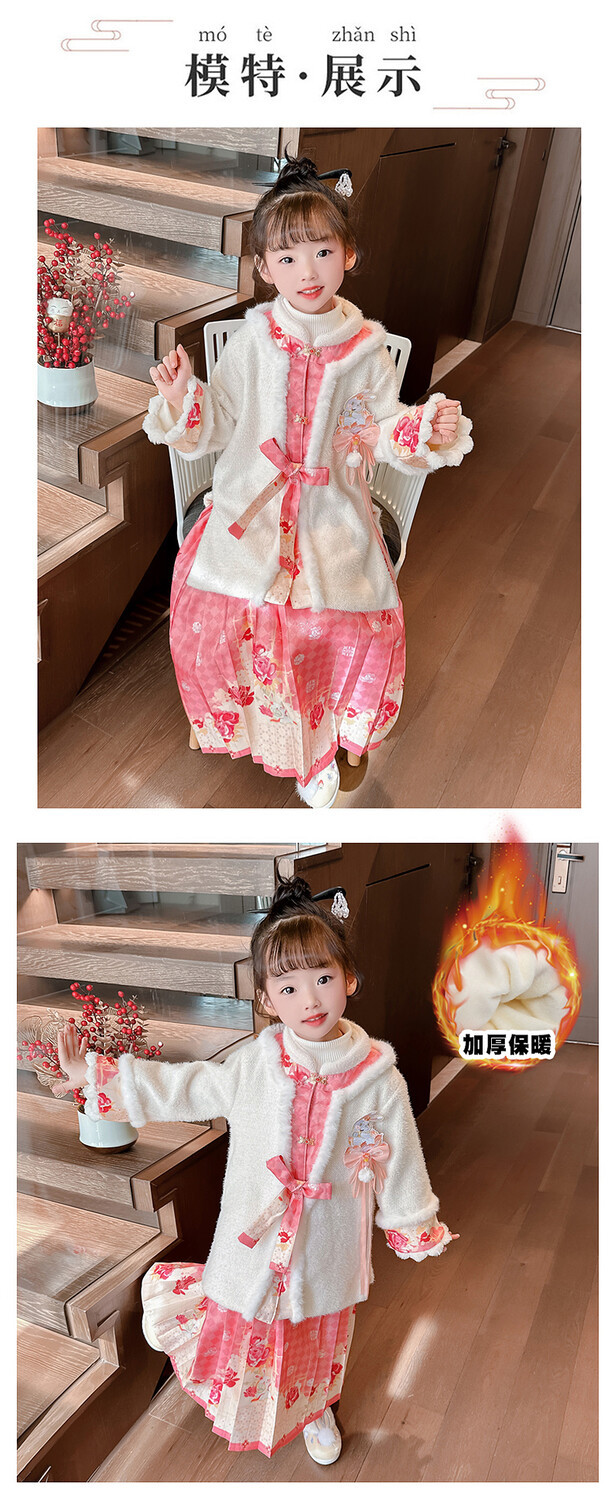 女童汉服儿童2024新款冬季加厚加绒中国风古装唐装马面裙拜年服装