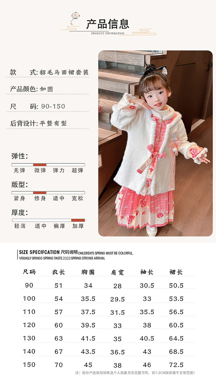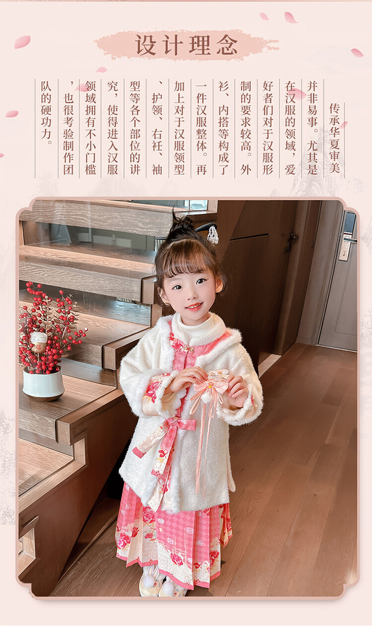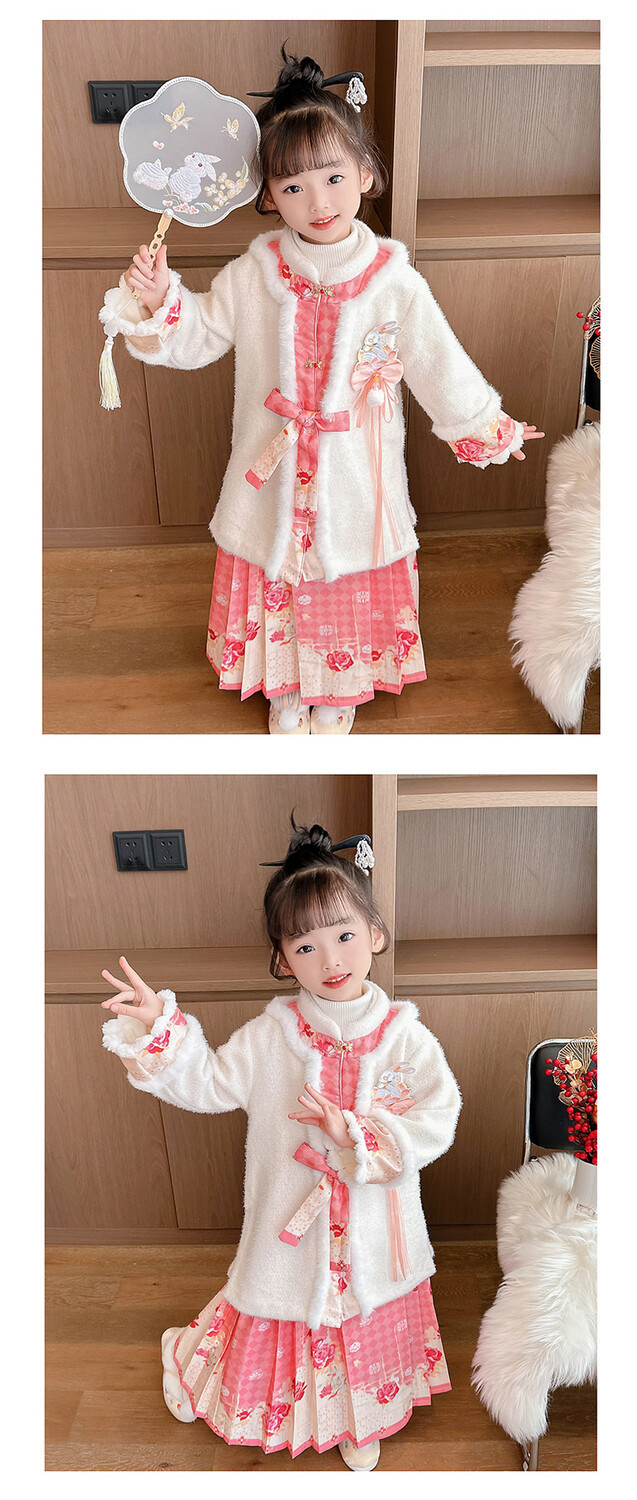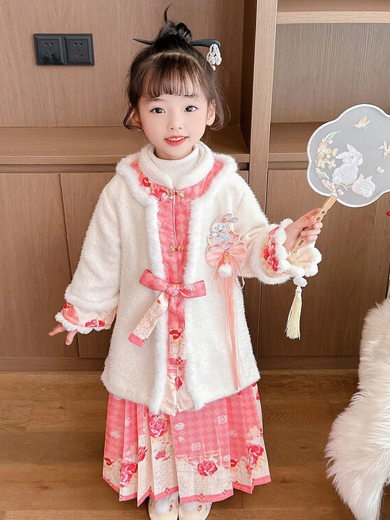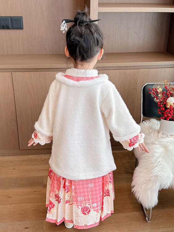 女童汉服儿童2024新款冬季加厚加绒中国风古装唐装马面裙拜年服装