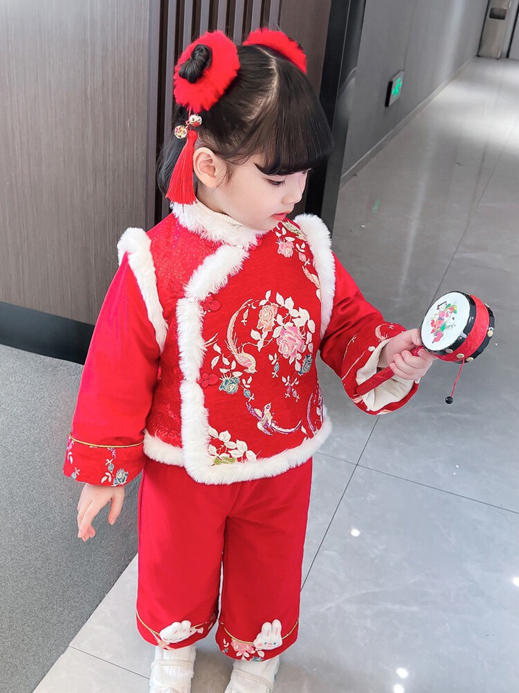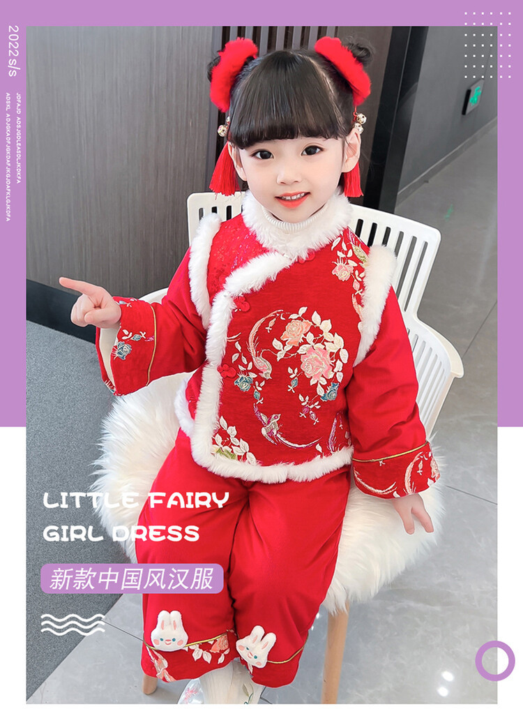 女童汉服儿童拜年服冬装过新年衣服女宝宝周岁礼服古装中国风唐装