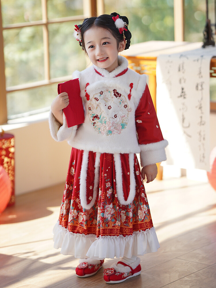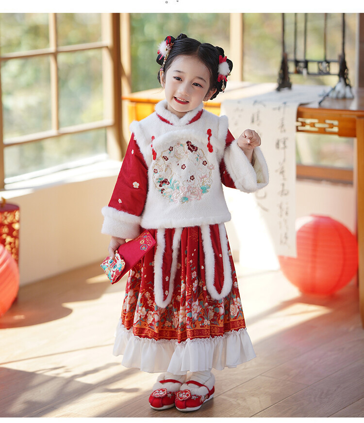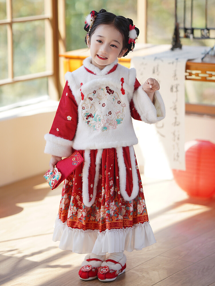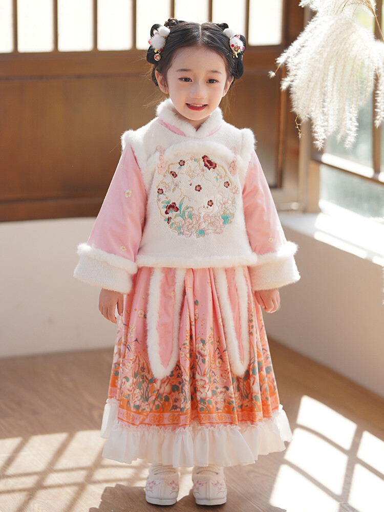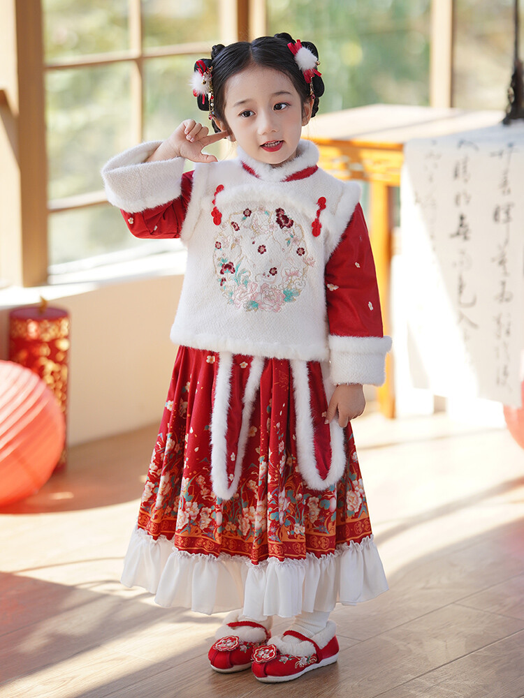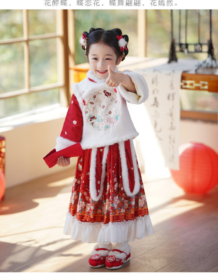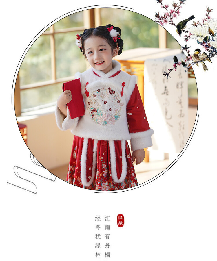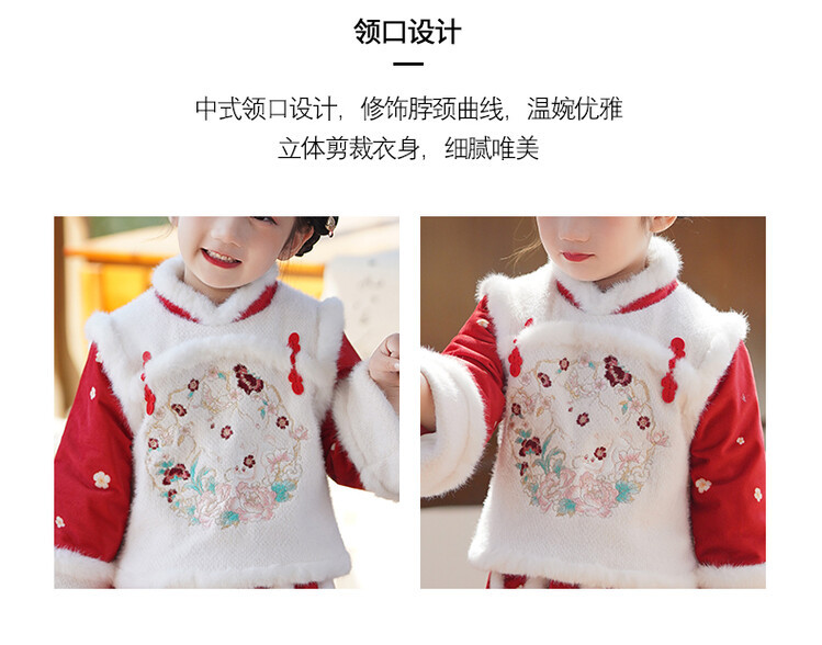 女童汉服儿童冬季古装过年衣服拜年服加绒冬款裙子女宝宝新款套装