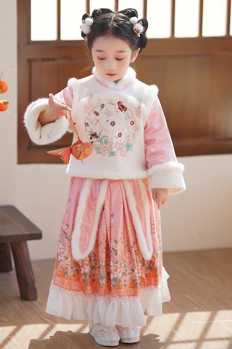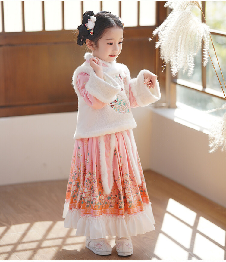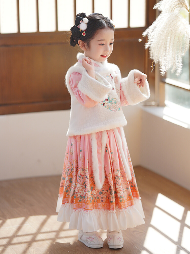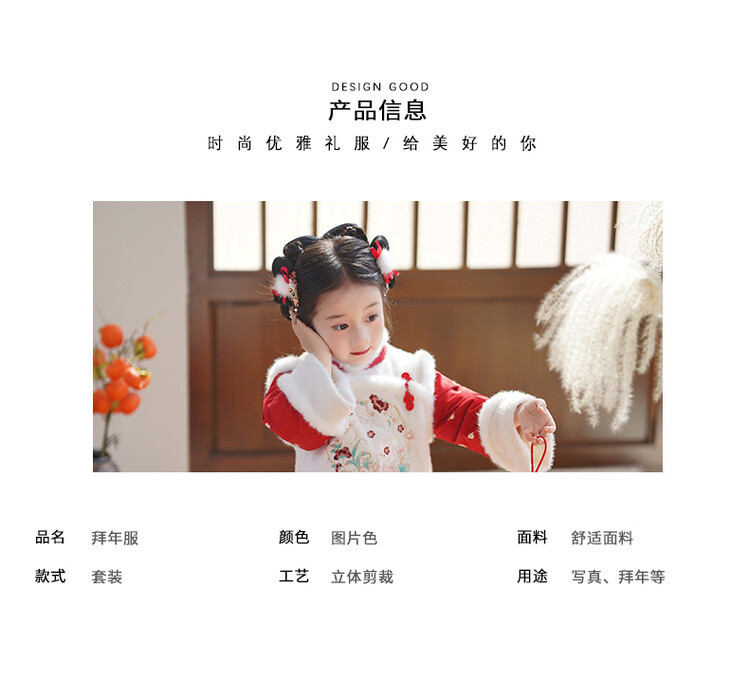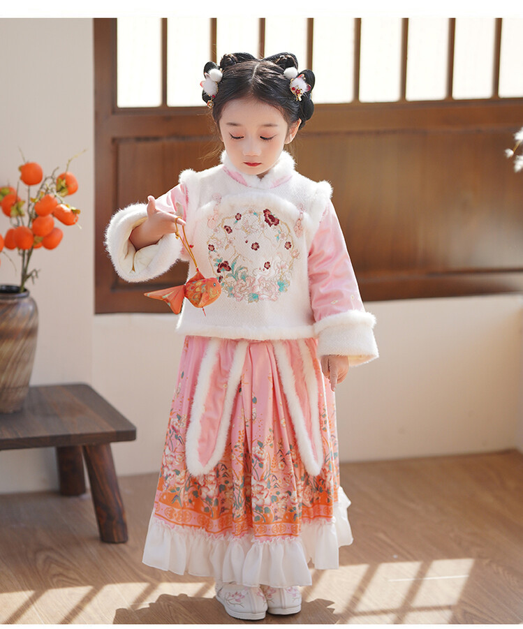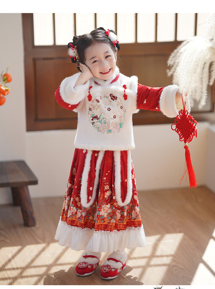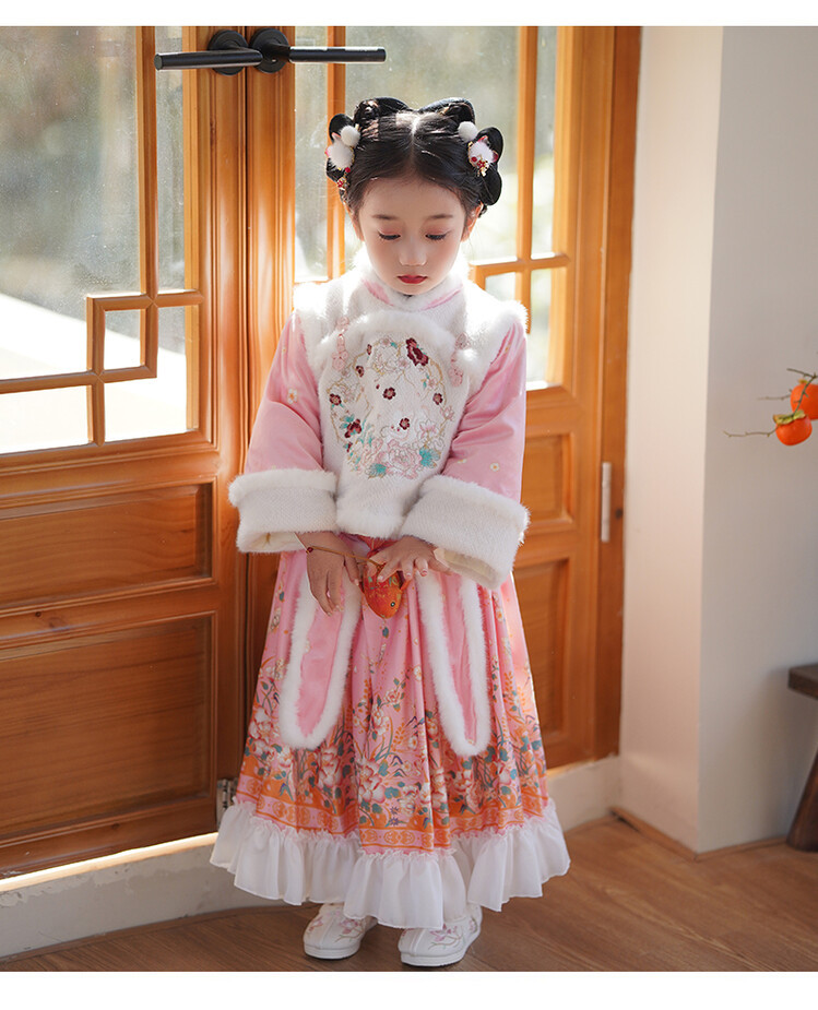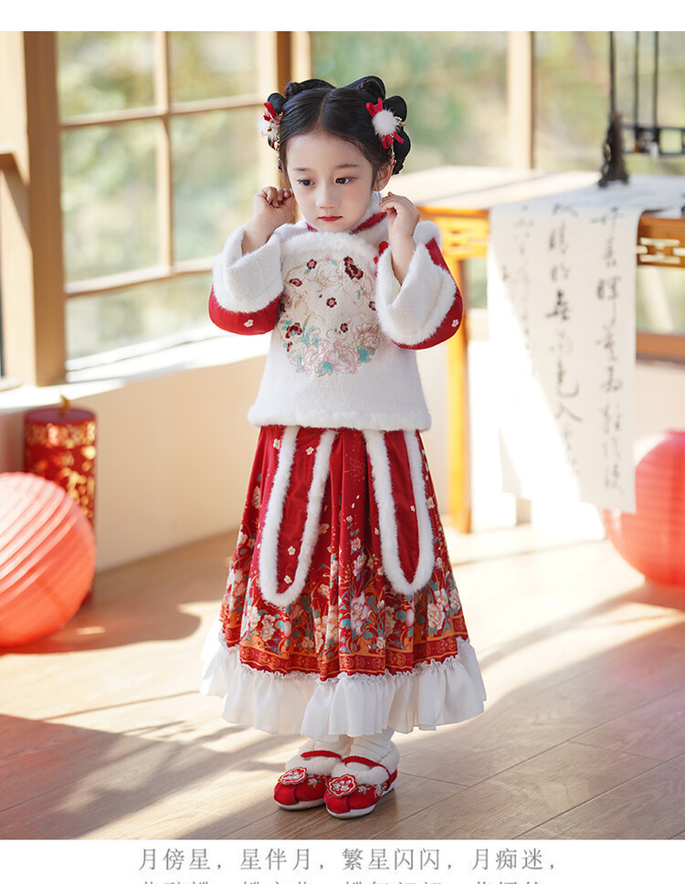 女童汉服儿童冬季古装过年衣服拜年服加绒冬款裙子女宝宝新款套装