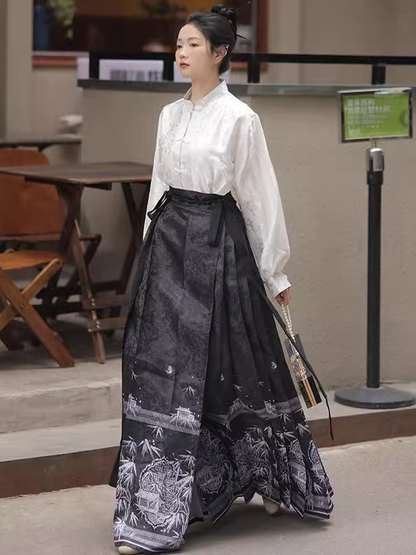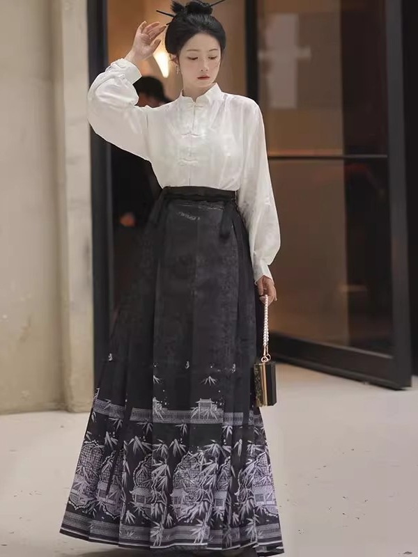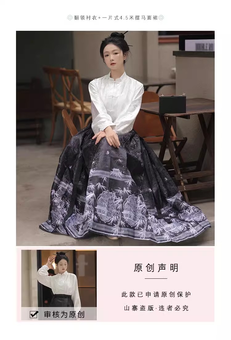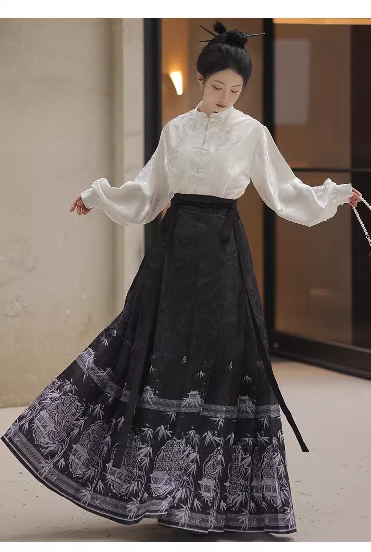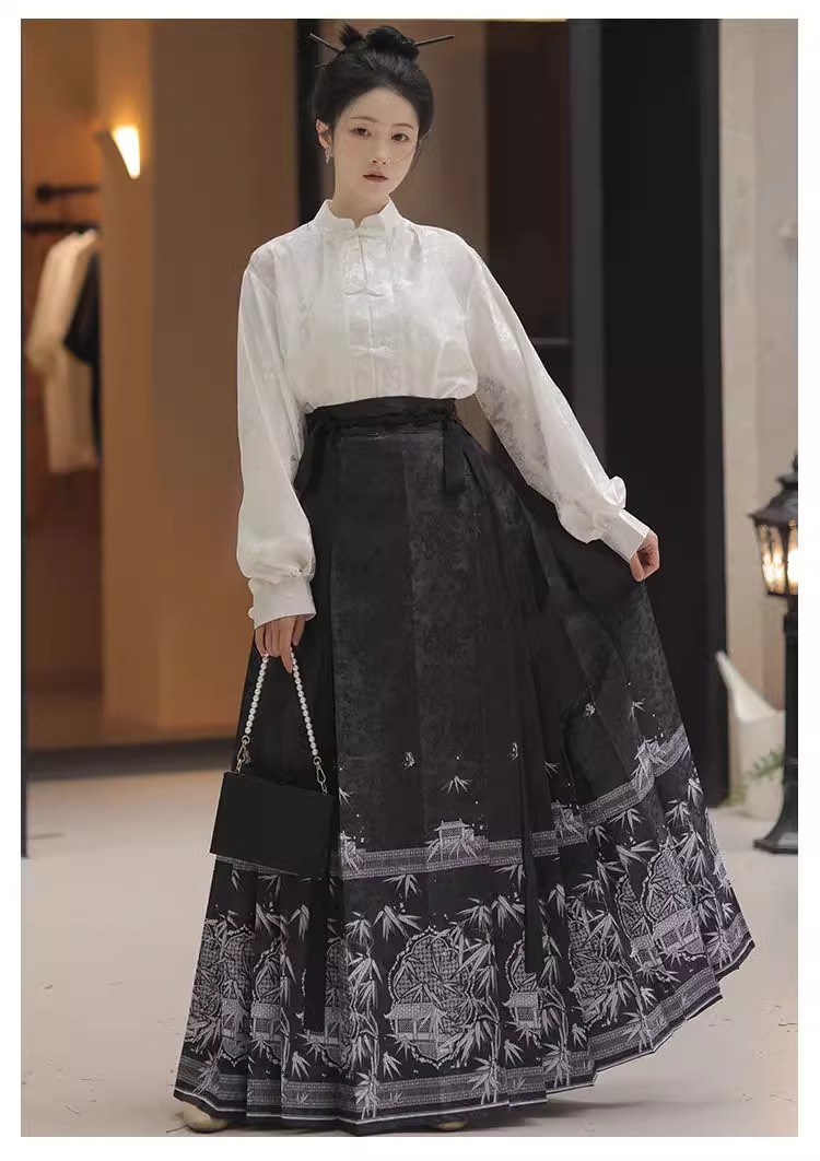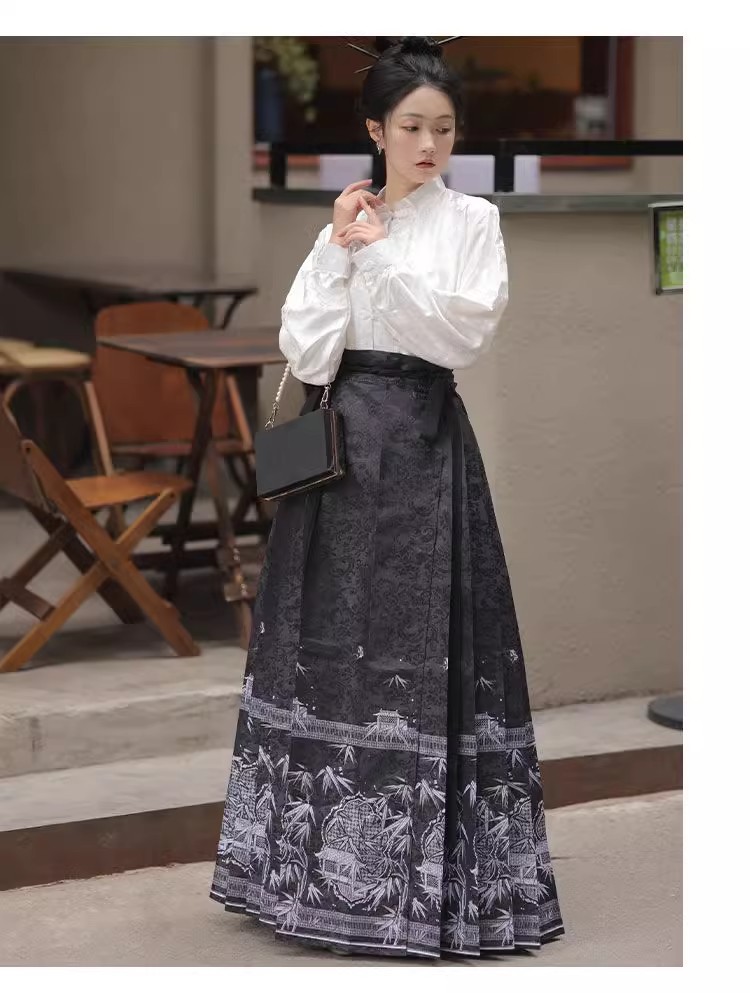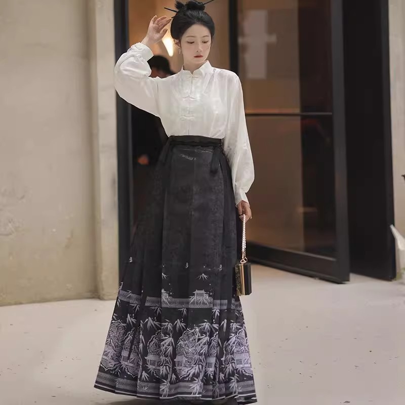 【西窗竹】原创汉服女明制国风马面裙日常改良通勤新中式春秋套装