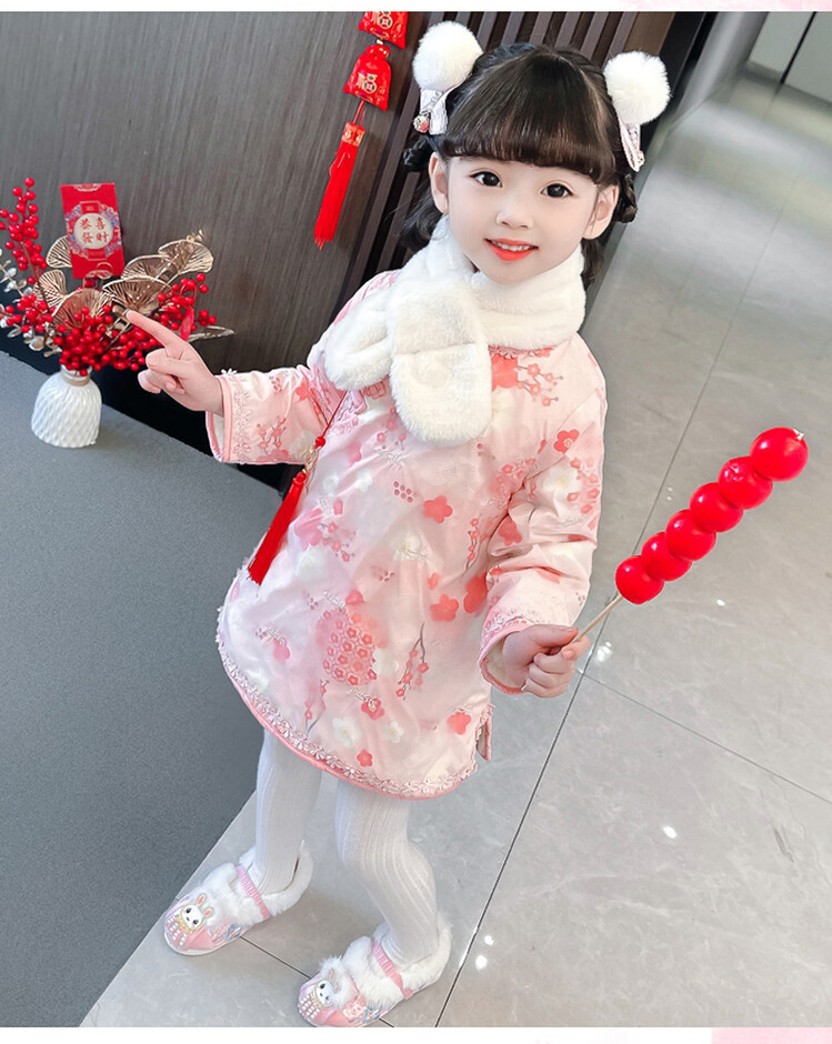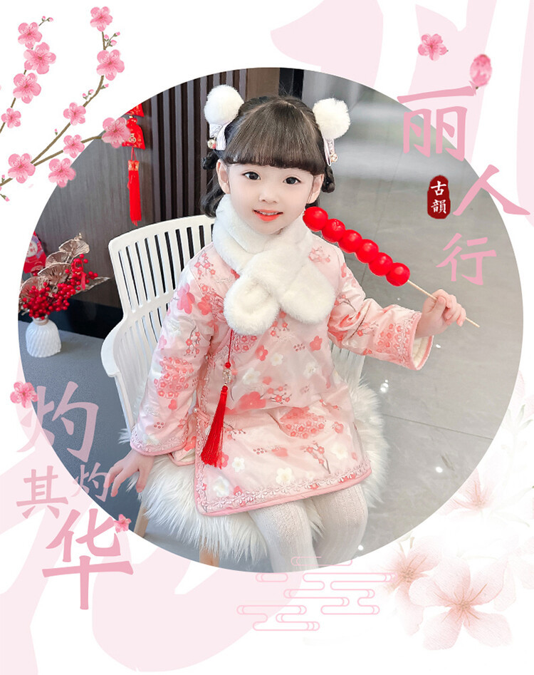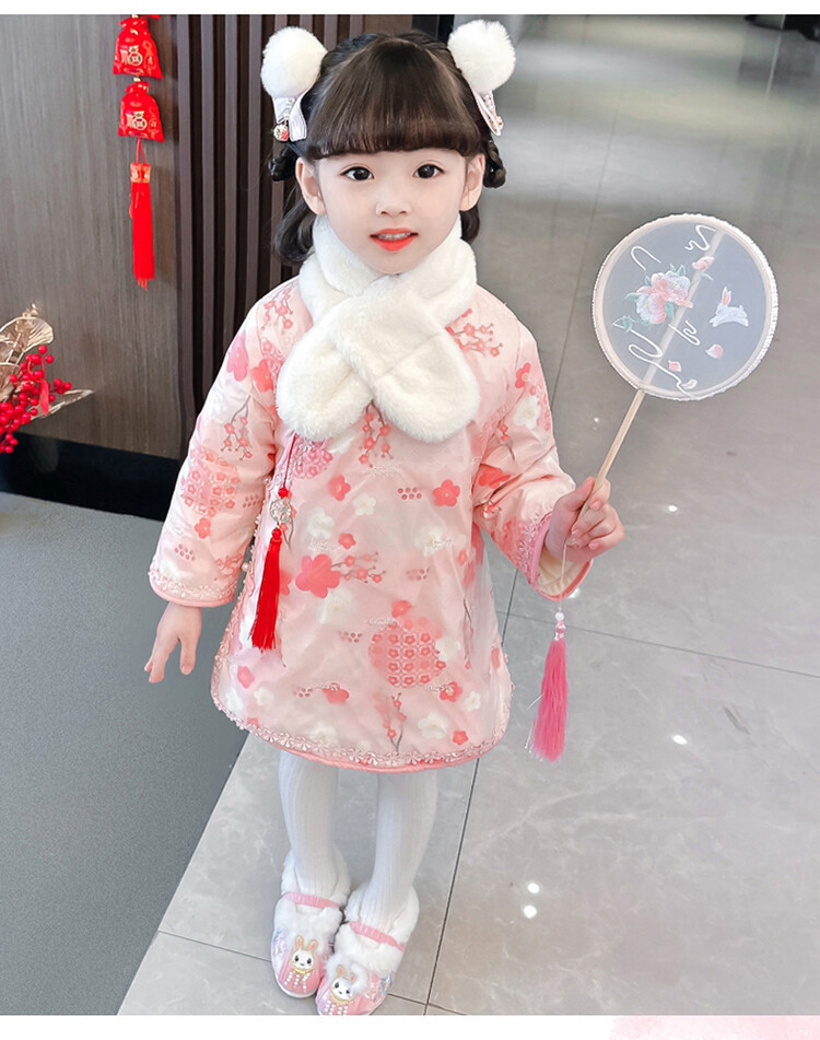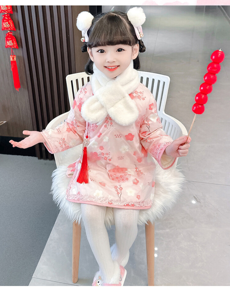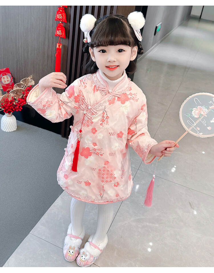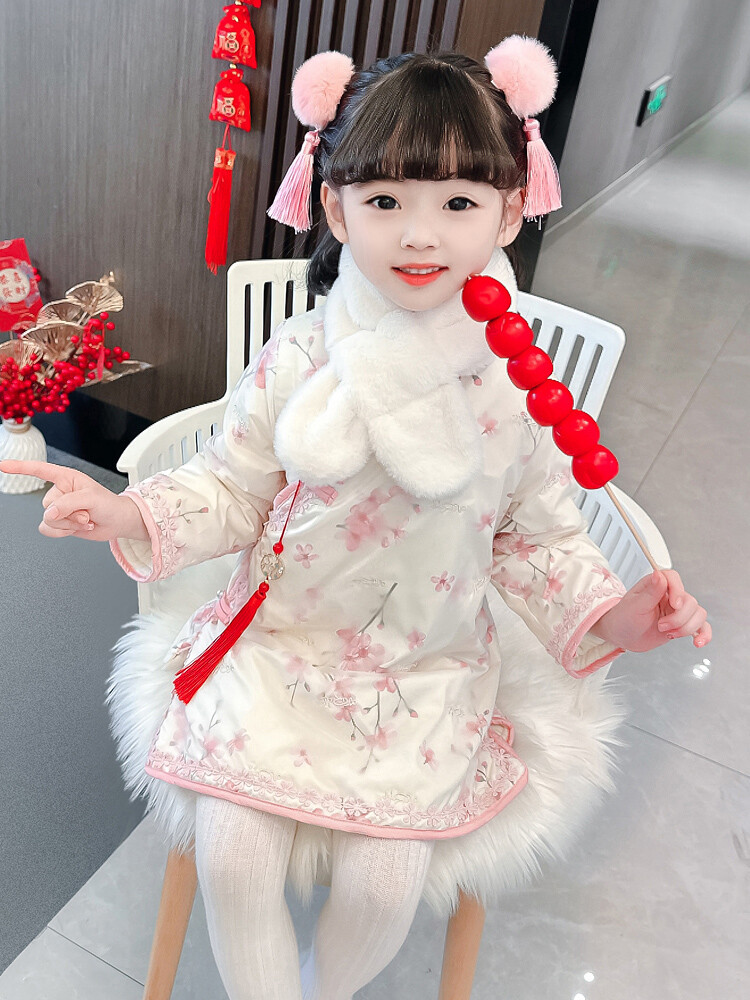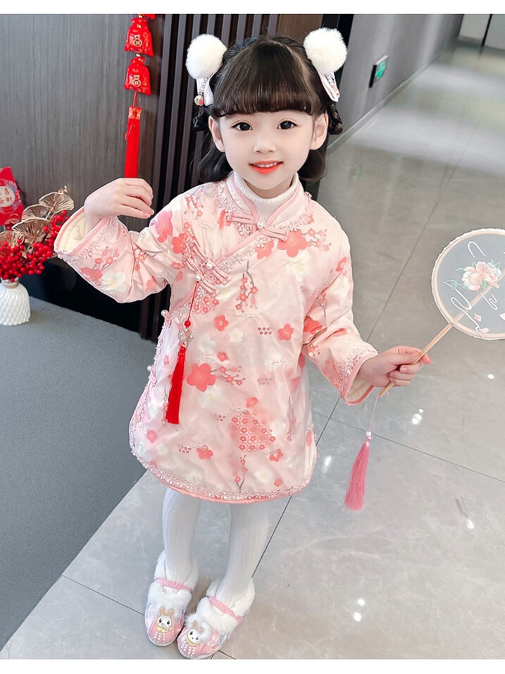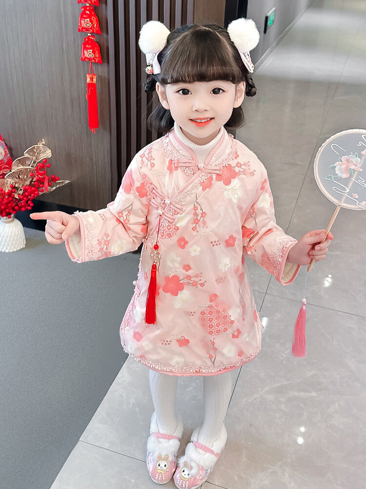 女童汉服连衣裙冬款儿童唐装加绒拜年服过年新年衣服冬季旗袍裙子
