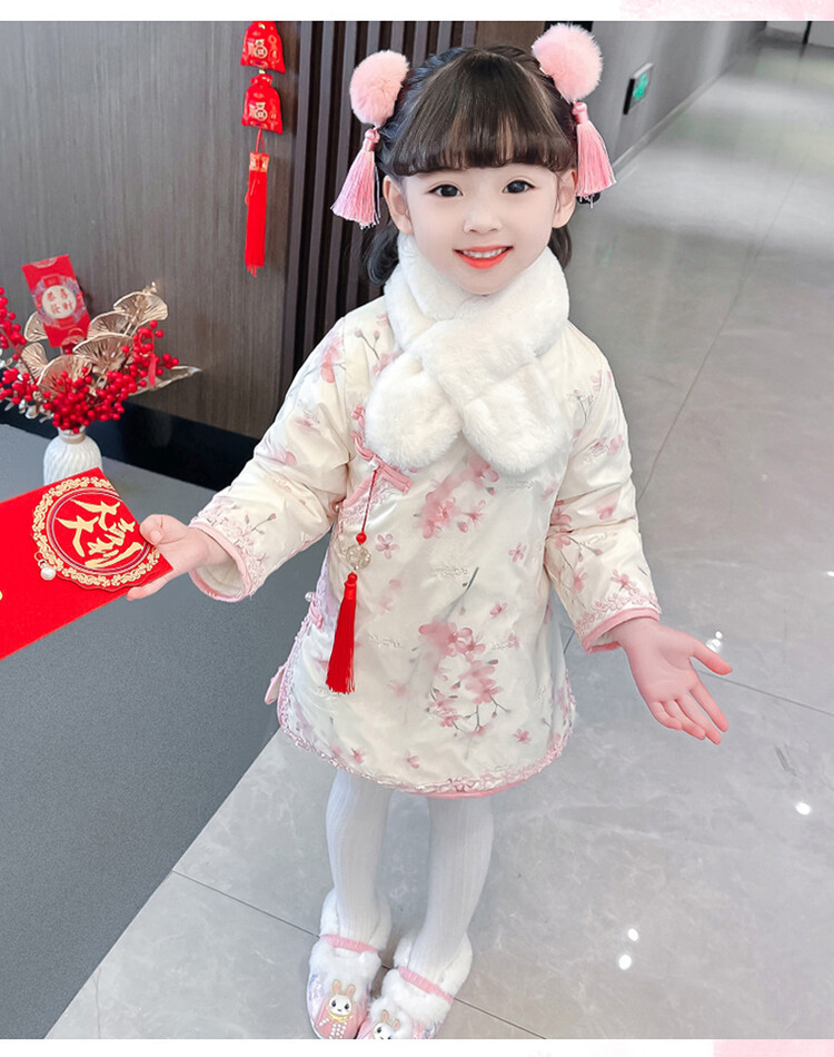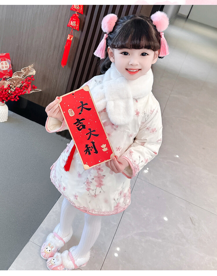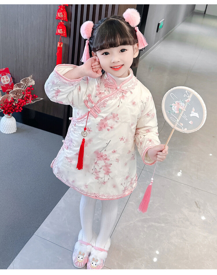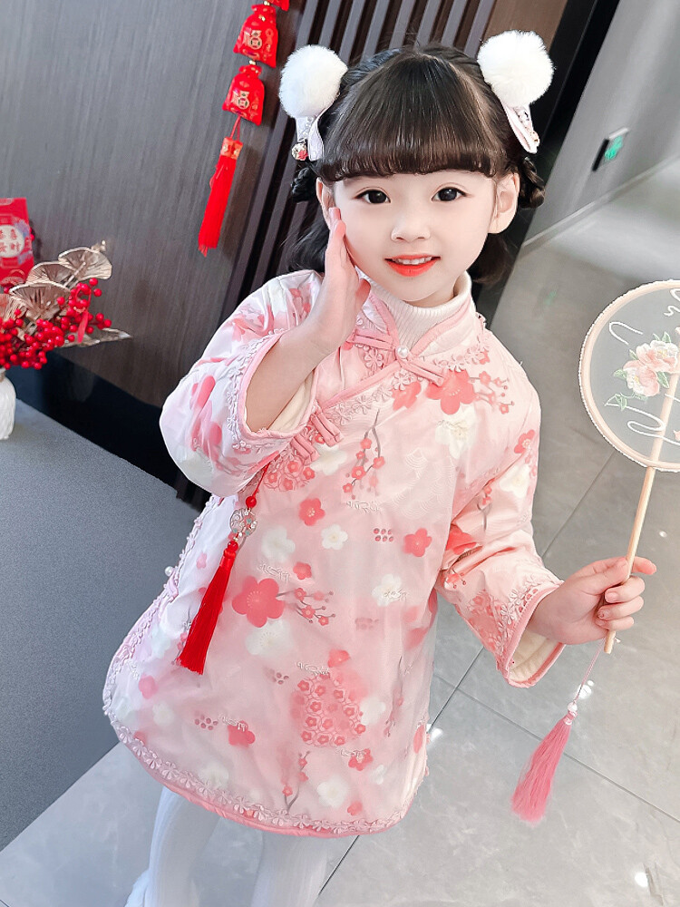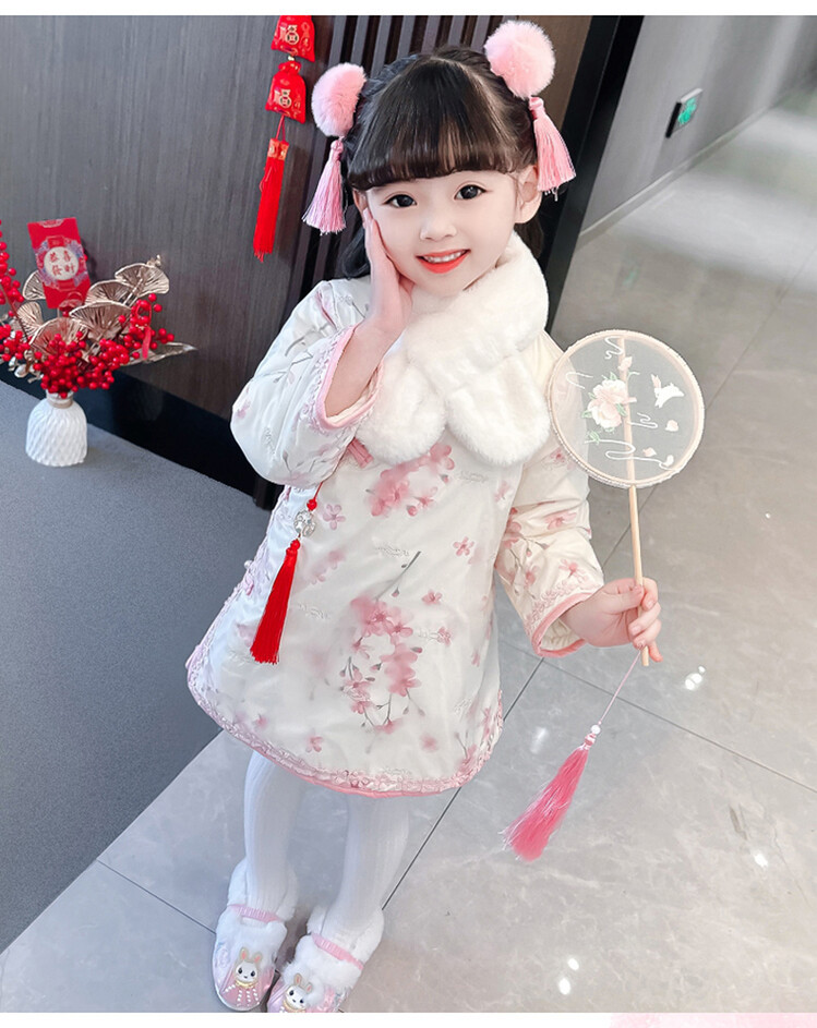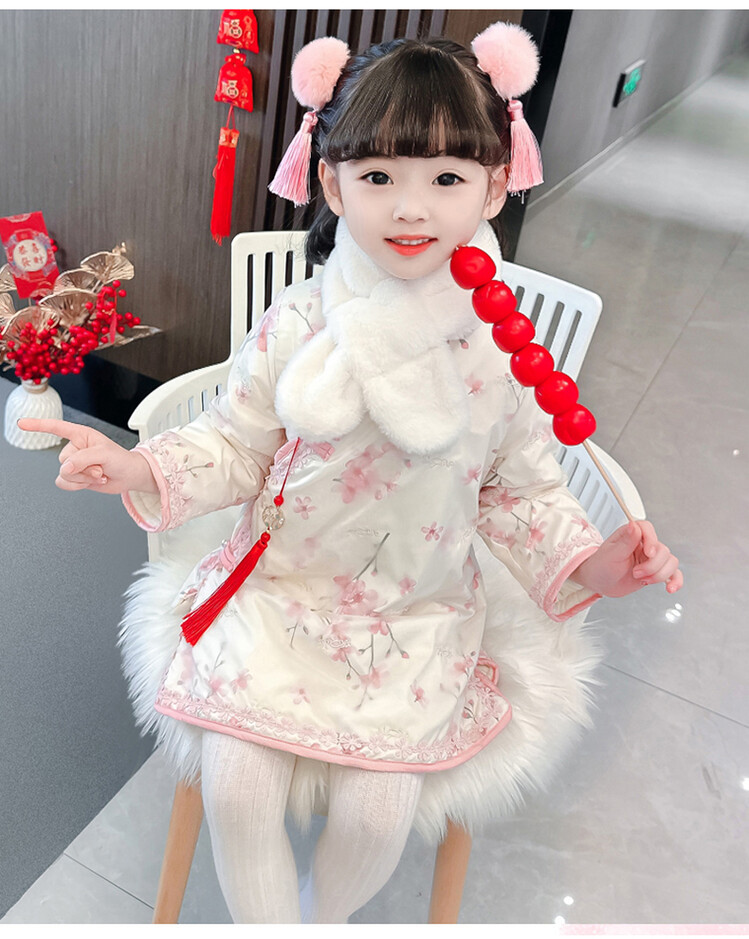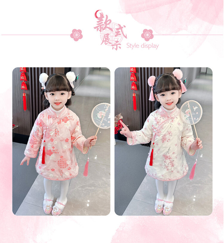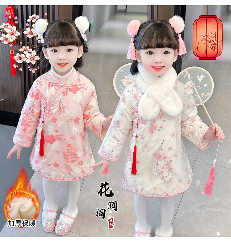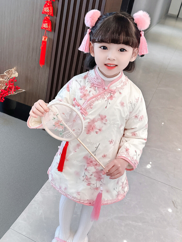 女童汉服连衣裙冬款儿童唐装加绒拜年服过年新年衣服冬季旗袍裙子